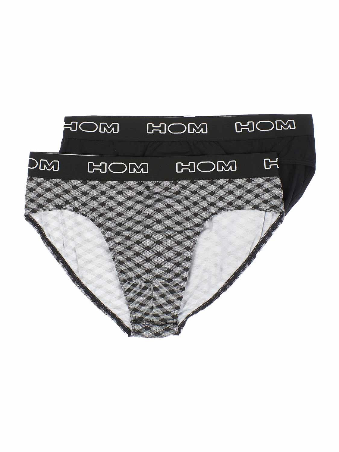 De Texture - mini briefs komen in een voordelige 2-pack, één slip is effen zwart, terwijl de andere een leuk kruisend grafisch patroon heeft. Het HOM-logo is rondom de tailleband zichtbaar.