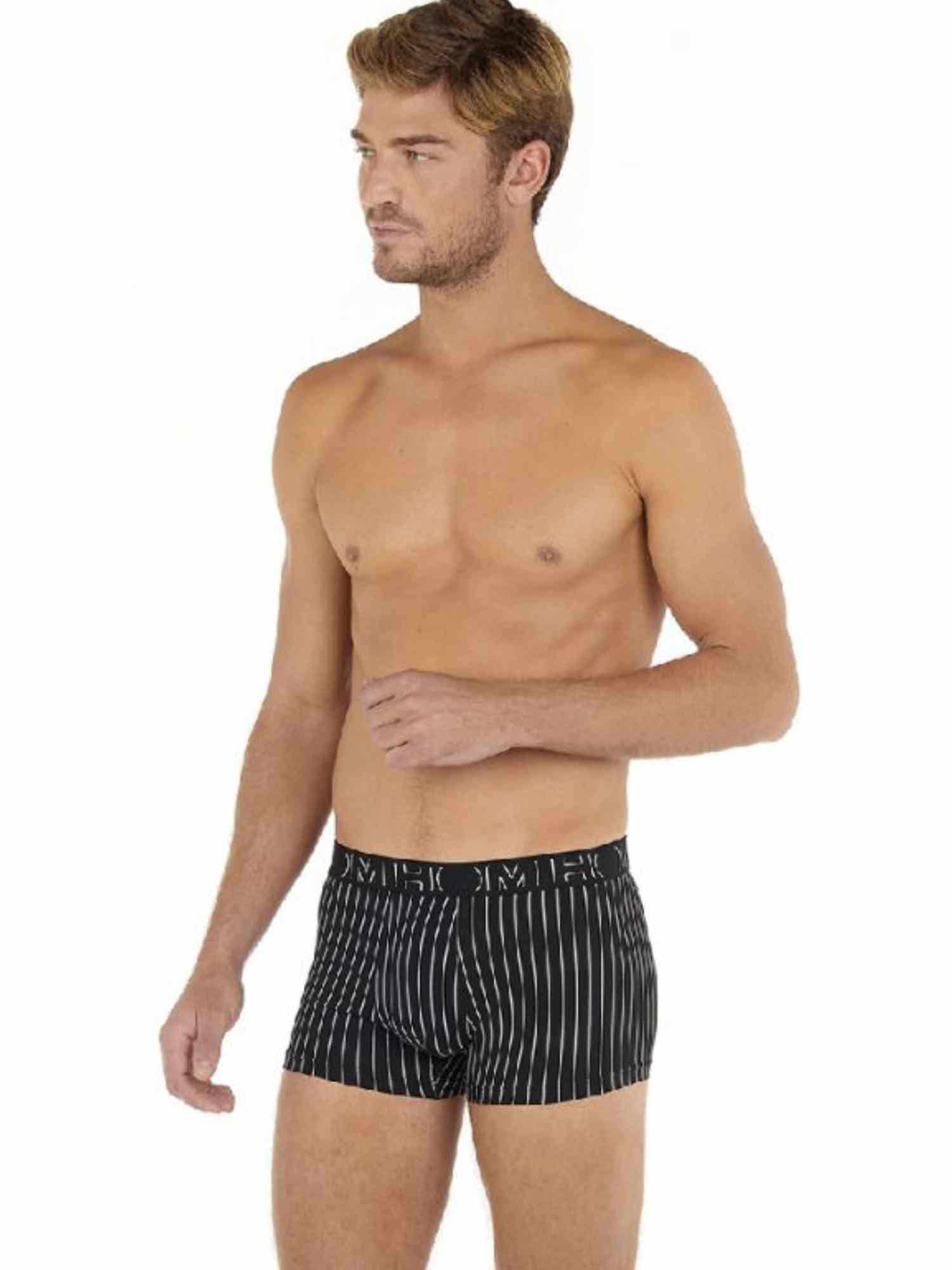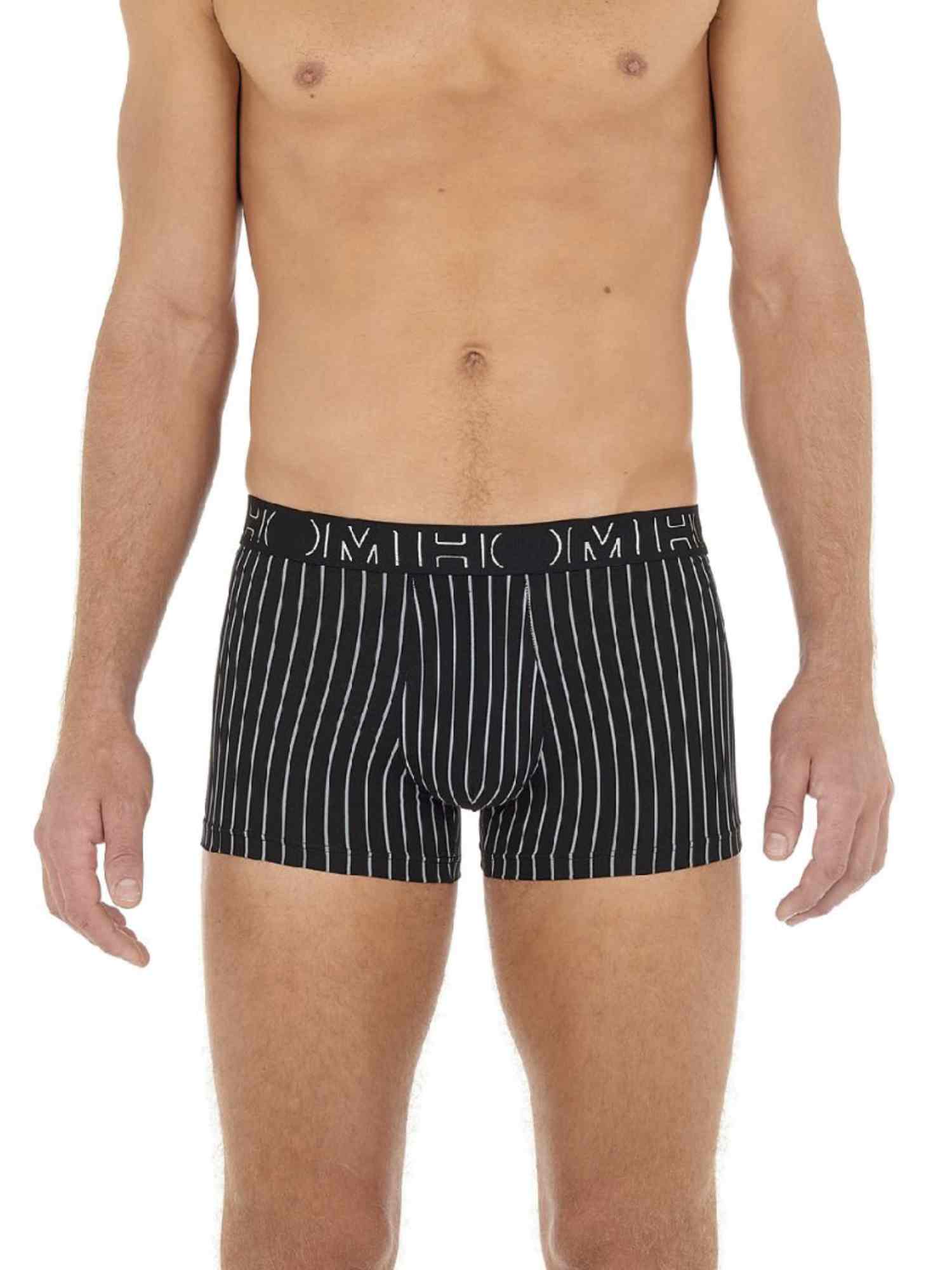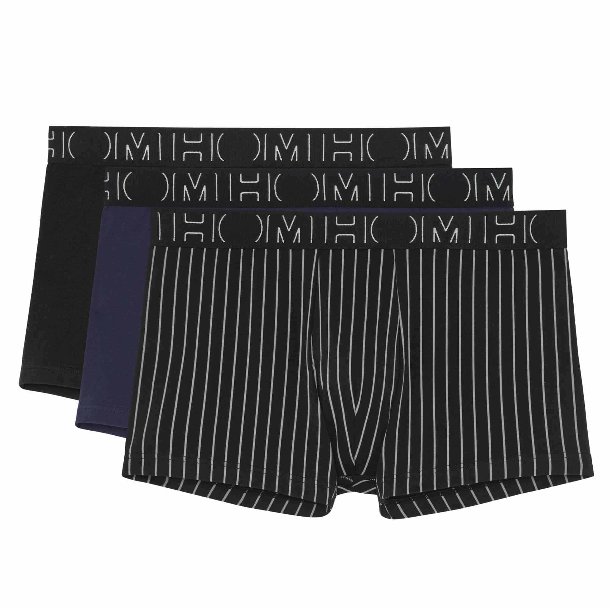 Boxer Briefs van HOM in een voordelige 3-pack, gemaakt van 93/7 gemamd stretch katoen voor een goede pasvorm. De boxer set is onderdeel van de BOXERLINES serie. De multi-pack beschikt over 3 boxers, waarvan 2 in de uni kleuren zwart en marine blauw en 1 met verticale witte lijnen op een zwarte achtergrond. Deze heren boxers zijn geschikt voor dagelijks gebruik en uitgevoerd met een pouch aan de voorzijde voor extra ondersteuning en comfort. De boxers zijn gemaakt van lichter katoen dan de single-packs.