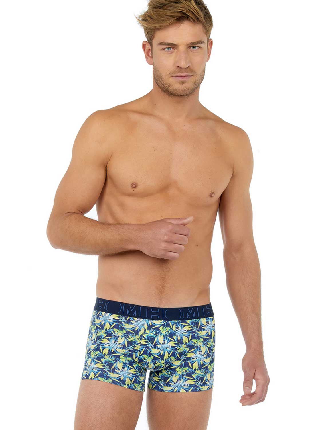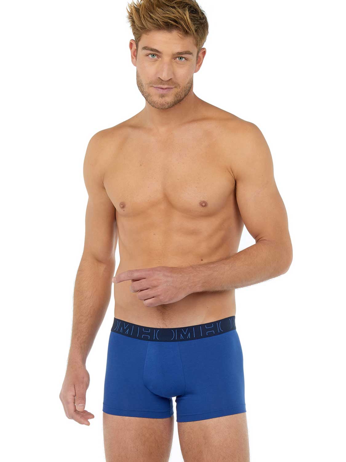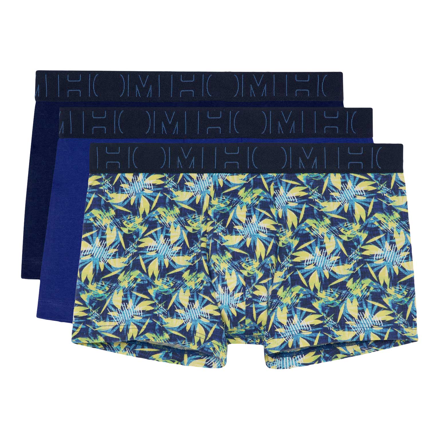 Boxer Briefs in een voordelige multi-pack gemaakt van 95/5 stretch katoen voor een goede pasvorm. De boxer set is onderdeel van de boxerlines serie en gemaakt van gekamd katoen. Deze multi-pack beschikt over drie boxers met een marine kleurige heupband met het HOM logo, waarvan één boxer met een fleurige tropische print op een blauwe achtergrond en de andere twee boxers in blauw en marine. Deze heren boxers zijn geschikt voor dagelijks gebruik en uitgevoerd met een pouch aan de voorzijde voor extra ondersteuning en comfort. De boxerlines serie is gemaakt van lichter katoen dan de single-packs, waardoor deze minder lang mee gaan.
