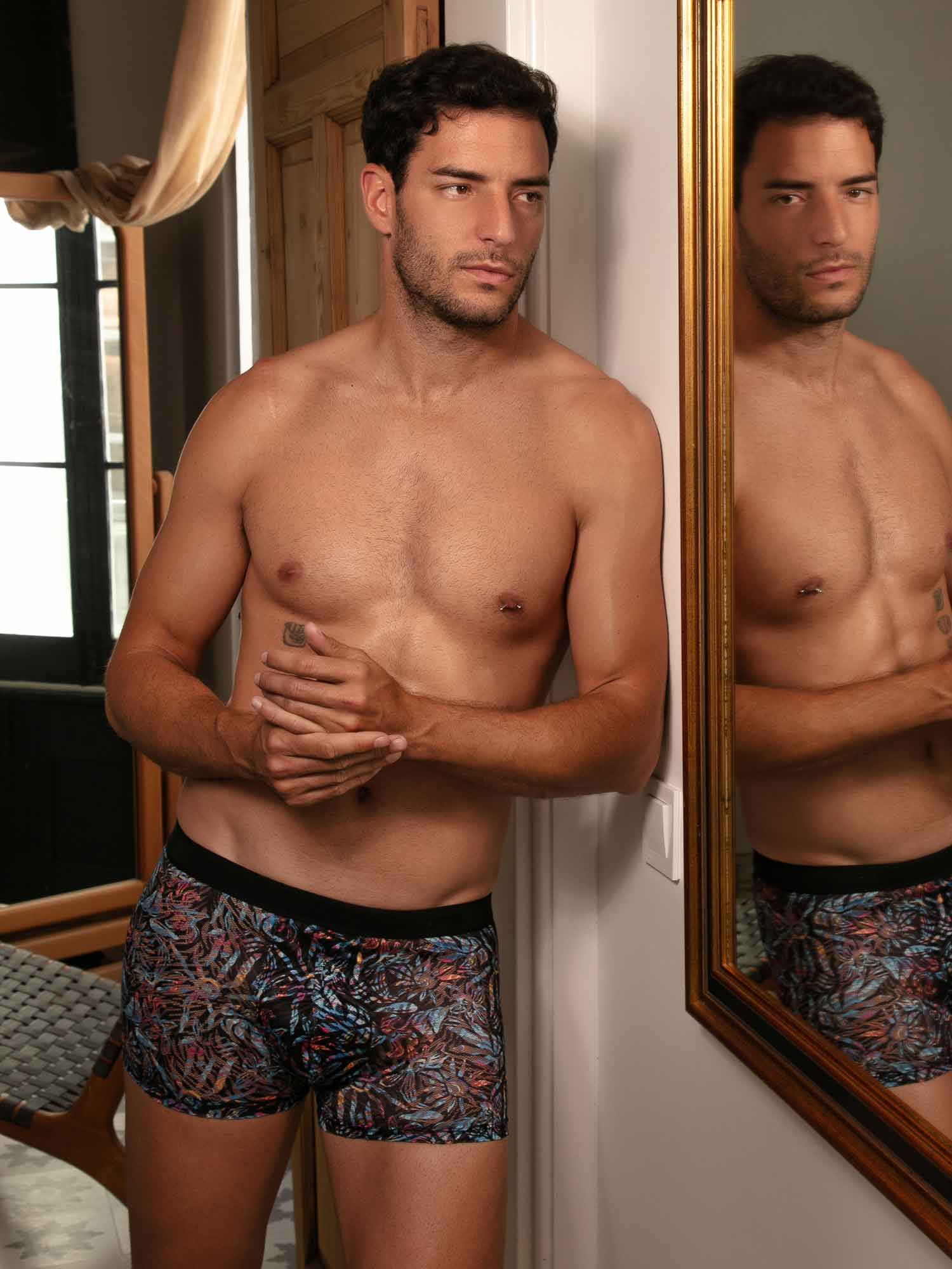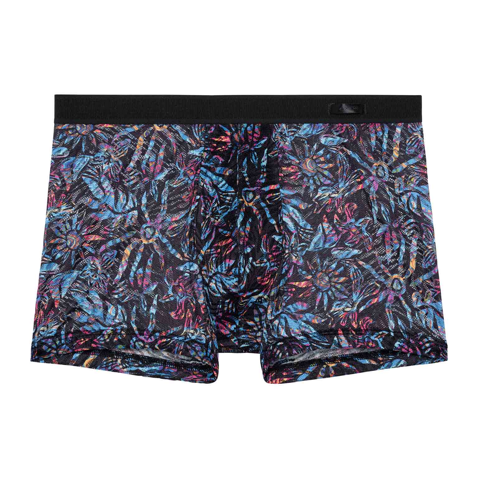 The HOM Biscayne boxer briefs bring tropical heat to the Temptation collection, crafted in refined lace that feels light, soft and irresistibly sensual on the skin. The black base comes alive with vivid, exotic florals and sun-inspired motifs, creating a striking contrast that radiates colour while remaining undeniably classy. Thoughtful details make all the difference, an inside front elastic shapes the fit and keeps everything perfectly in place, while an elasticated insert at the leg hem helps prevent riding up for confident comfort all day or night. This is more than underwear, it’s a statement of bold style with an elegant finish.