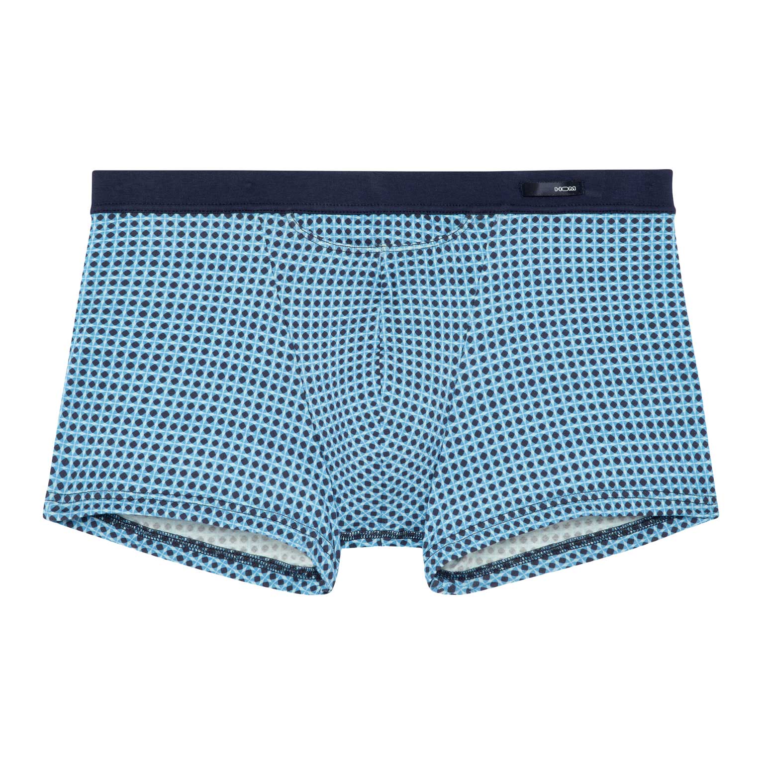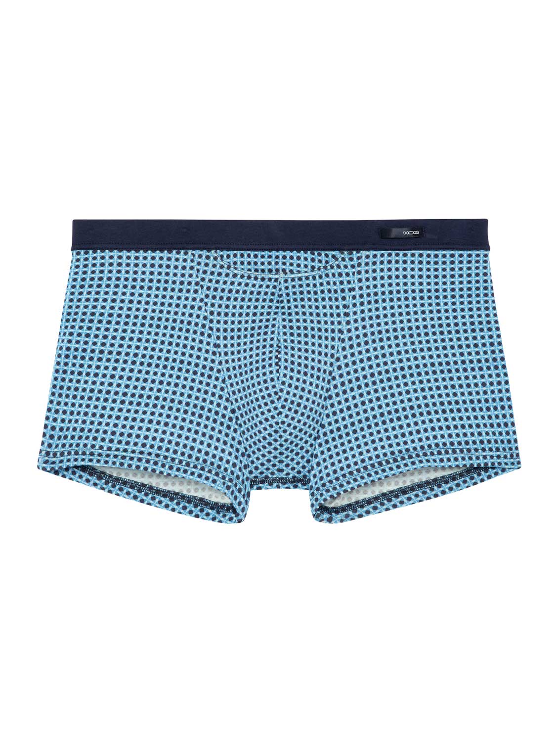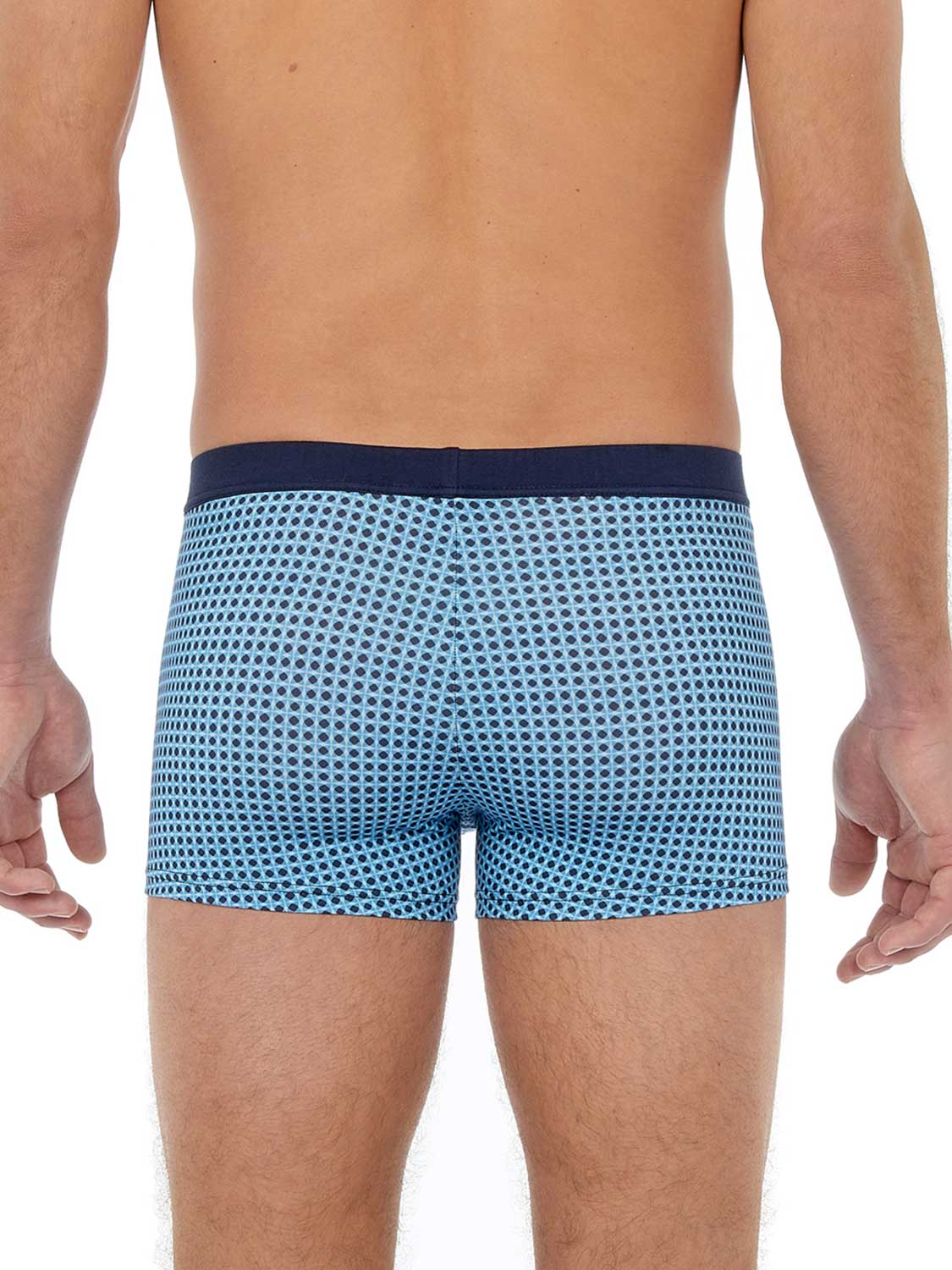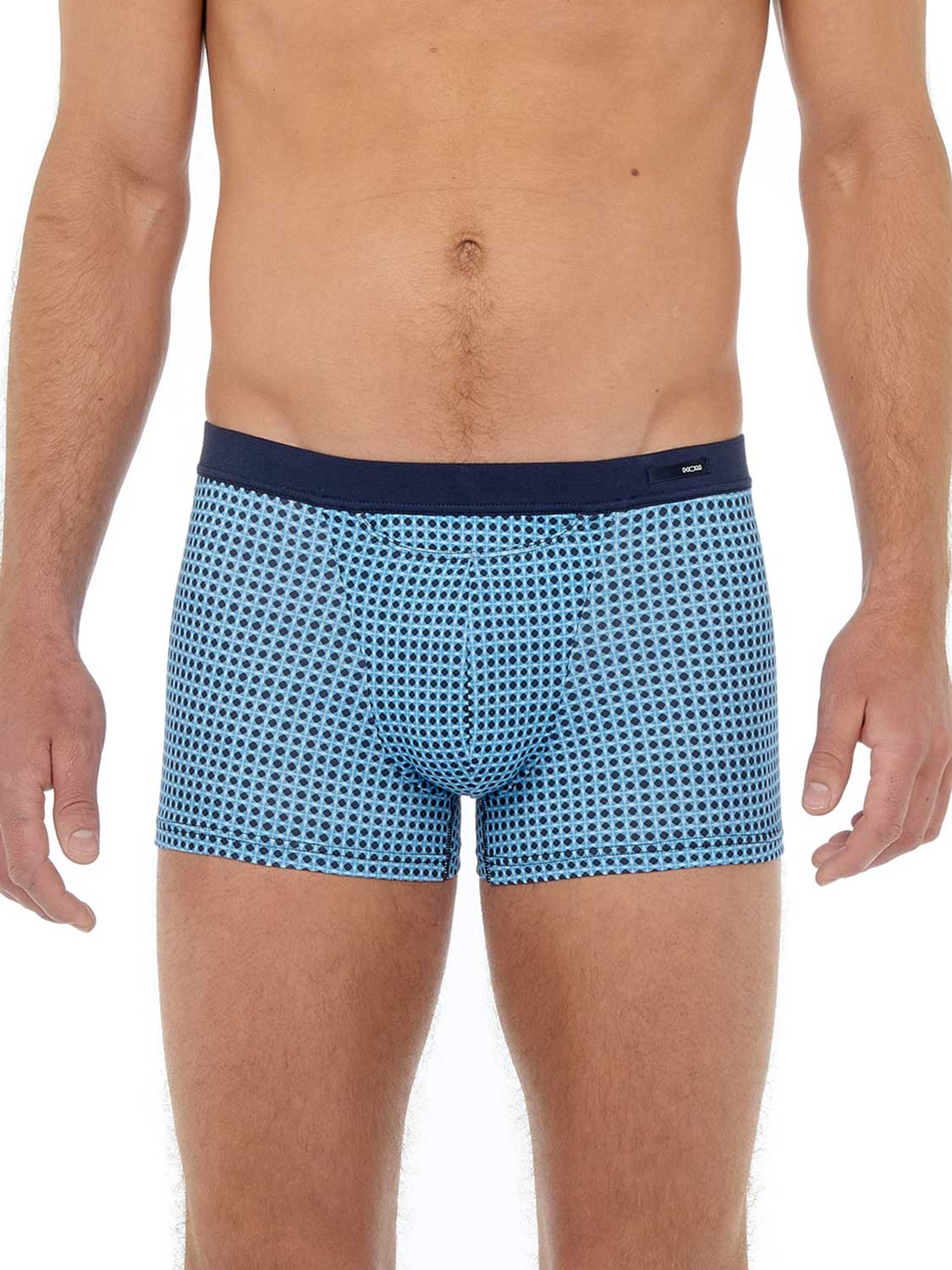 De Mayron - HO1 Boxer Brief is gemaakt van katoenmodal en uitgevoerd met de 'horizontale opening', de gulp waar HOM bekend om staat. De boxer heeft een verweven print met een speels optisch effect in blauwtinten. Katoenmodal heeft een natuurlijke oorsprong, voelt zacht aan en zorgt voor een pasvorm die goed aansluit op het lichaam. De Mayron boxer is daardoor geschikt voor iedere man die graag natuurlijke stoffen draagt. Daarnaast heeft katoenmodal goede absorberende en ademende eigenschappen, waardoor je veel minder snel warme klamme plekken krijgt in je ondergoed. Bij normaal gebruik is de stof goed bestand tegen krimpen en slijtage door wrijving. De Mayron is uitgevoerd met een comfort band, waarbij de stof over de elastische heupband naar binnen is geslagen voor extra comfort. Op de heupband is linksvoor een labeltje bevestigt met het HOM-logo.