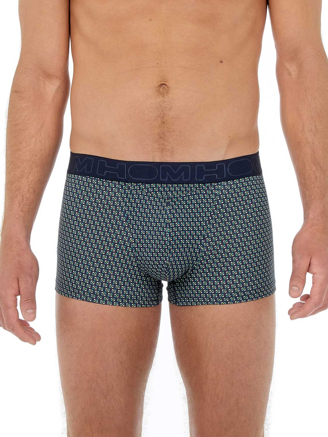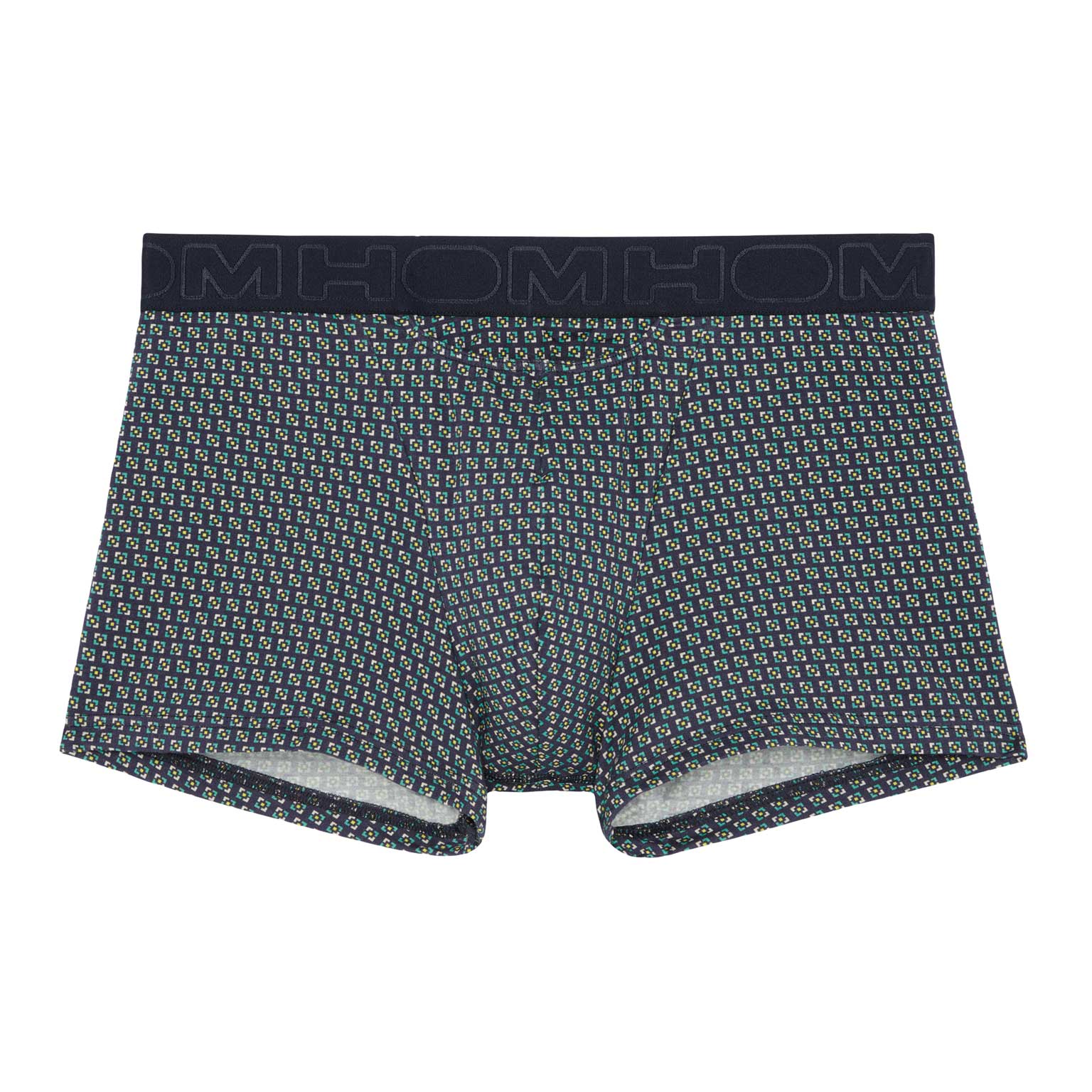 De Valere - HO1 Boxer Briefs, gemaakt van katoenmodal en uitgevoerd met de 'horizontale opening', de gulp waar HOM bekend om staat. De boxer is uitgevoerd met een eigentijdse geometrische print met groen gele tinten op een marine blauwe achtergrond. Katoenmodal heeft een natuurlijke oorsprong, voelt zacht aan en zorgt voor een pasvorm die goed aansluit op het lichaam. De Mayron boxer is daardoor geschikt voor iedere man die graag natuurlijke stoffen draagt. Daarnaast heeft katoenmodal goede absorberende en ademende eigenschappen, waardoor je veel minder snel warme klamme plekken krijgt in je ondergoed. Bij normaal gebruik is de stof goed bestand tegen krimpen en slijtage door wrijving. De Valere heeft een elastische heupband met daarop het HOM Logo.