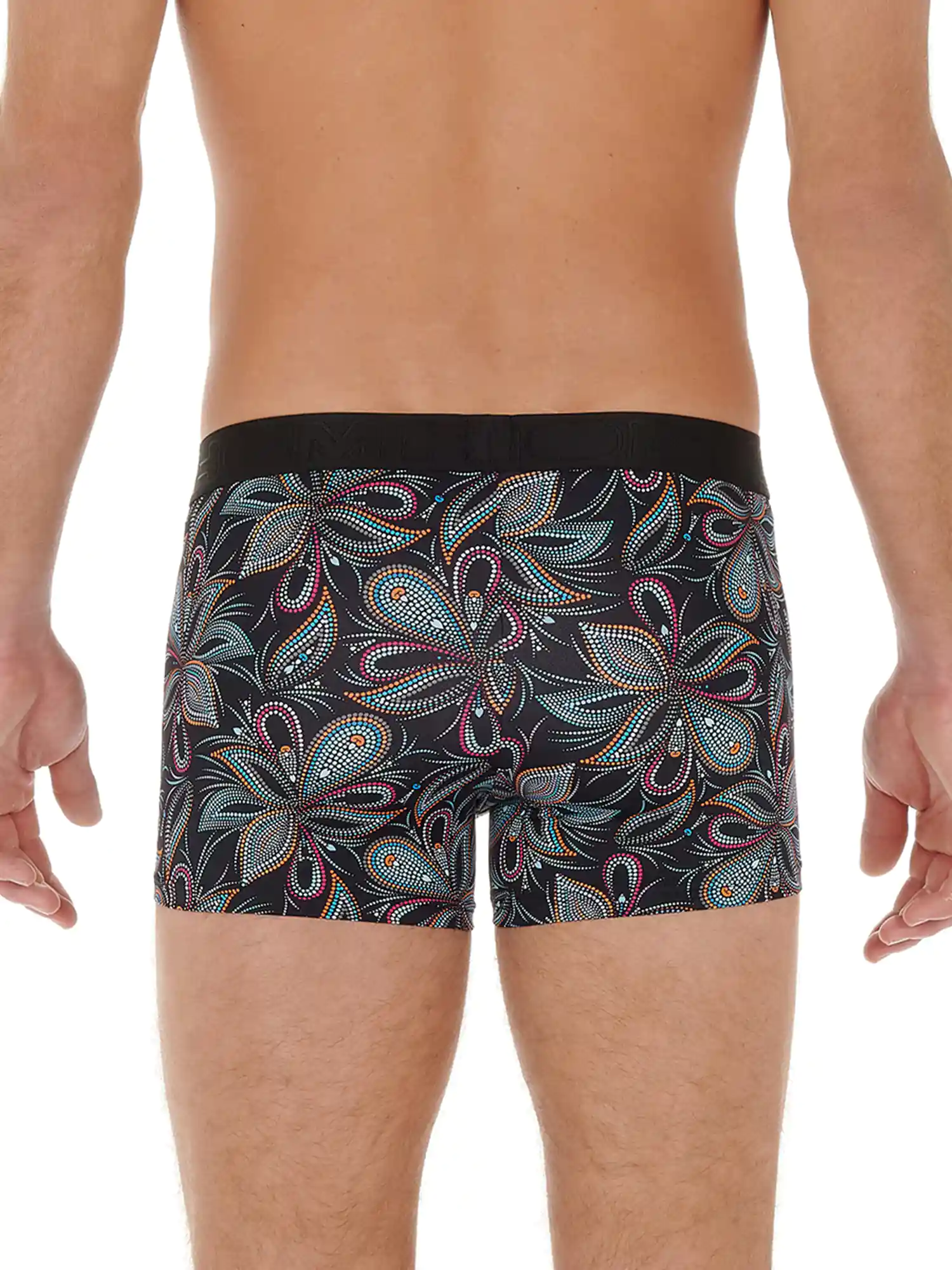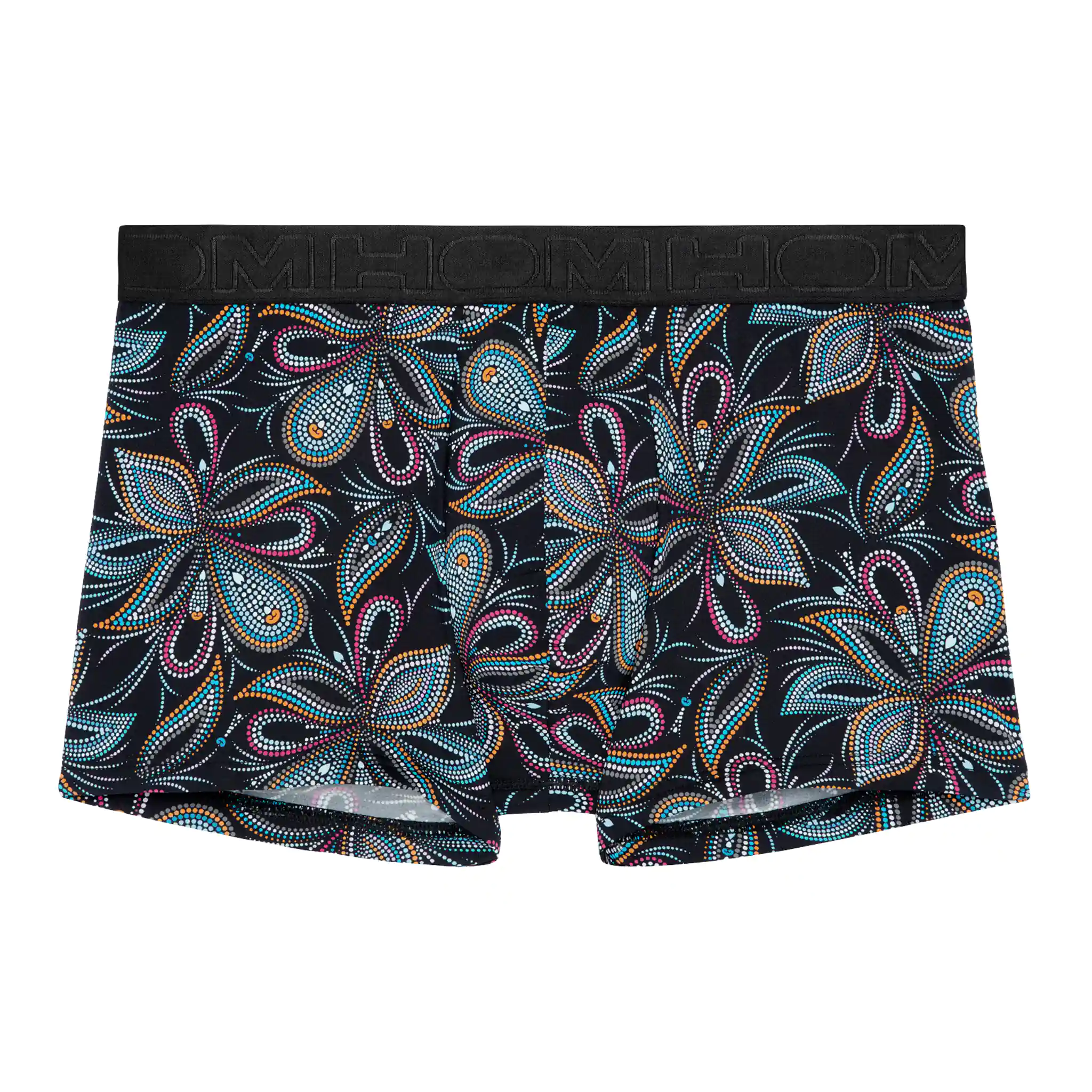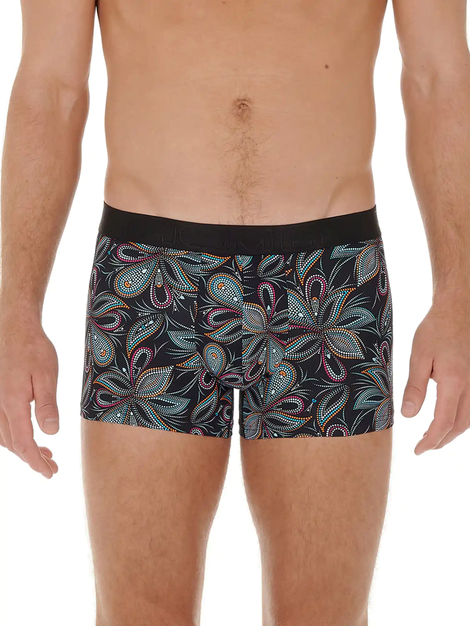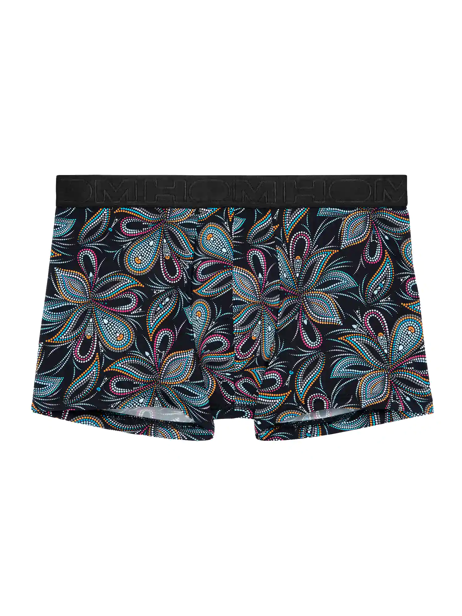 De Mario Boxer Brief is gemaakt van microfiber voor een pasvorm die nauw aansluit op de huid. Doordat microfiber erg elastisch en flexibel is, rekt de stof mee met elke beweging van je lichaam. Daardoor kun je deze boxer ook prima dragen tijdens het sporten. Daarnaast is microfiber zeer bestendig tegen krimpen en slijtage door wrijving. De boxershort heeft een kleurrijke floral print met een psychadelische look op een zwarte achtergrond die zeker de aandacht trekt. De brede heupband met daarop het HOM logo in ton sur ton zorgt voor een comfortabele en stevige fit.
