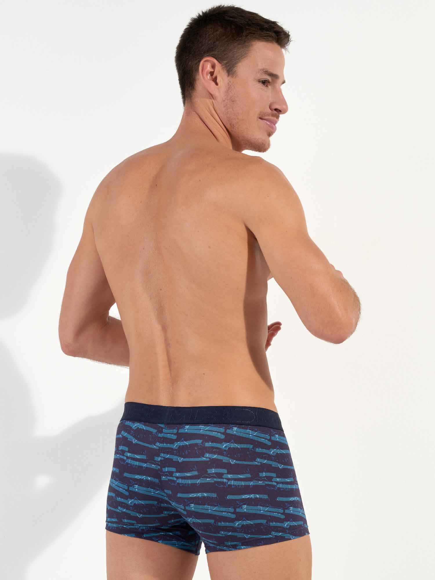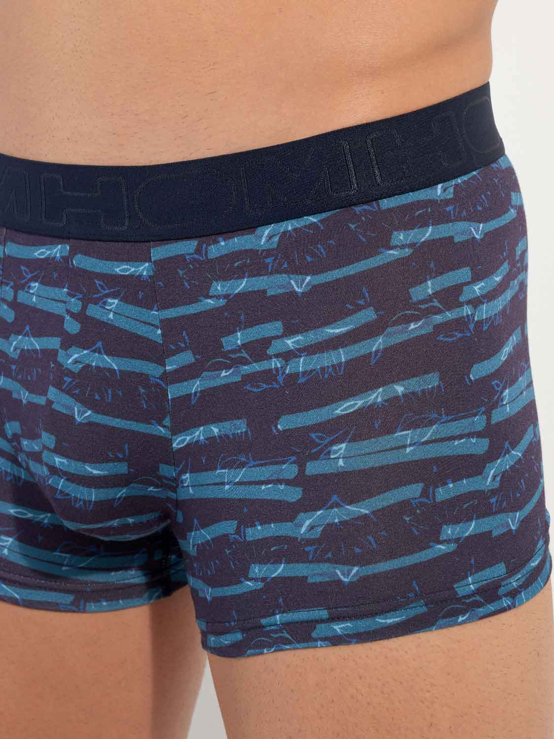 De Tenerife - Boxer Briefs is gemaakt van hoogwaardig katoenmodal, een natuurlijke stof wat heerlijk zacht aanvoelt. Deze heren boxer heeft abstracte botanische print in diverse tinten blauw. De boxer heeft een elastische heupband, uitgevoerd in het zwart met het HOM logo rondom in ton sur ton.