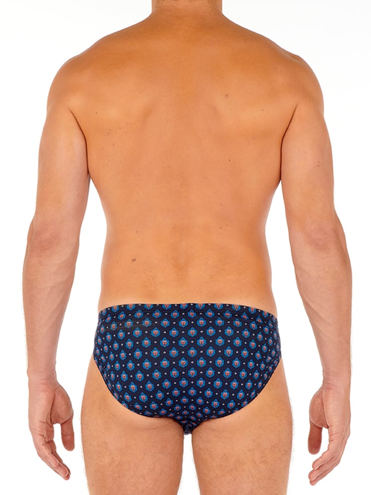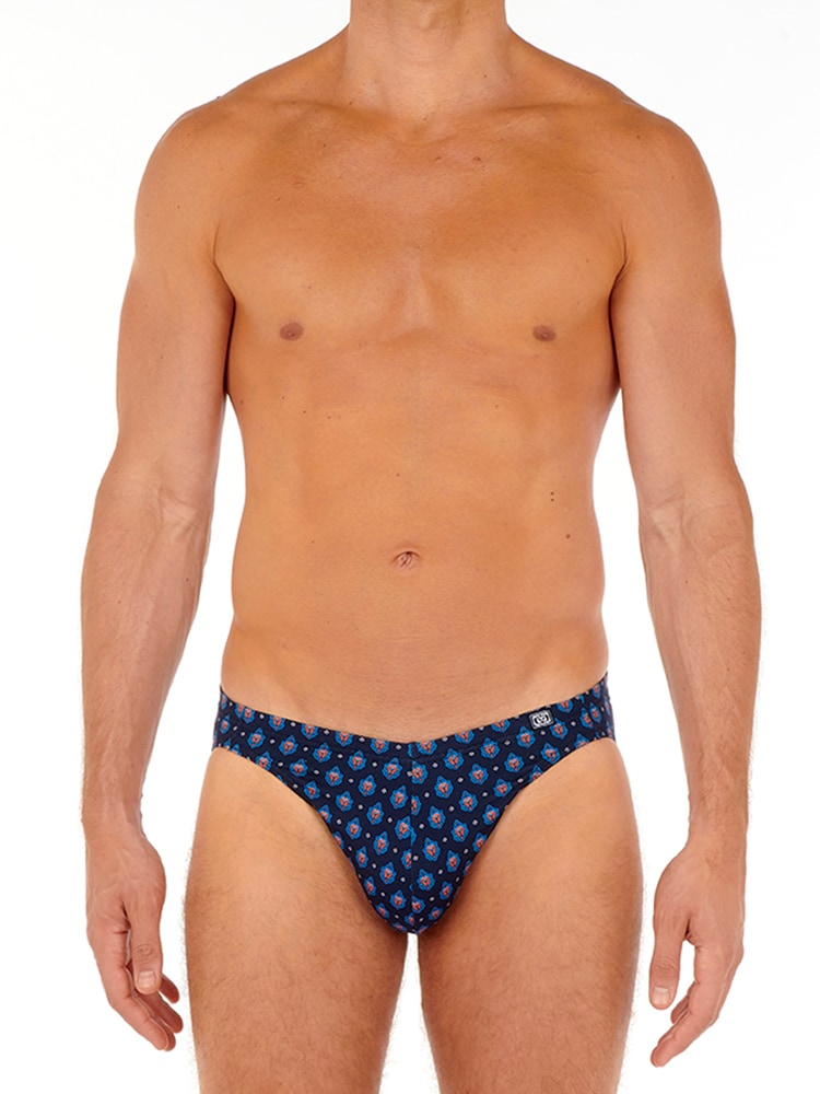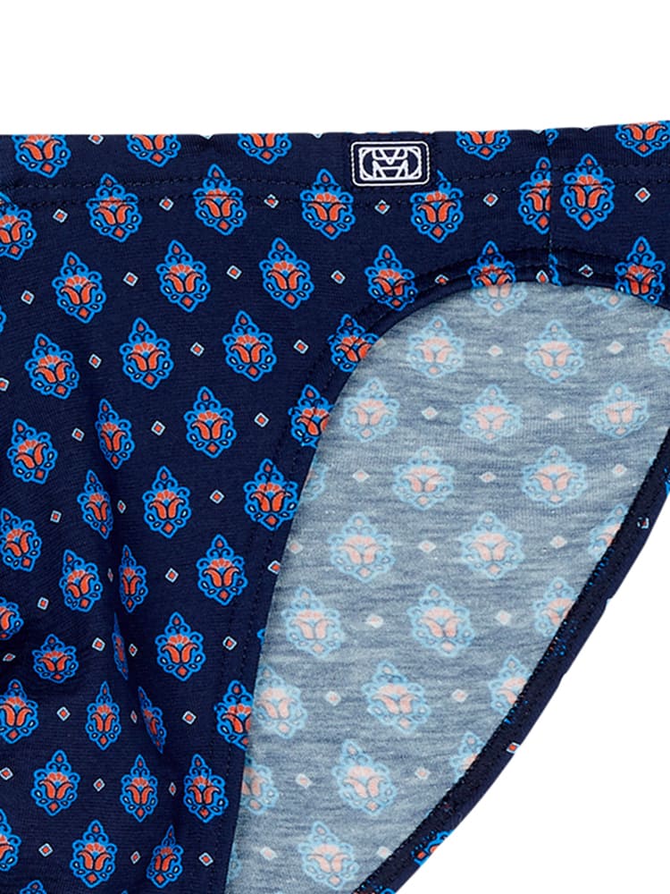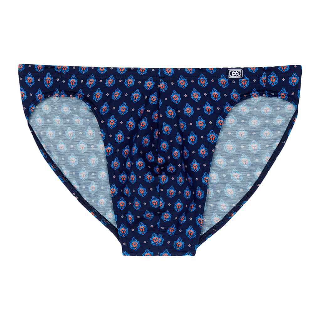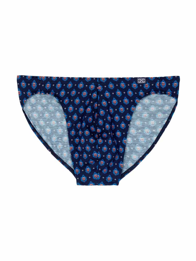 gemaakt van een comfortabele stretch katoen, gemaakt van lange vezels en een zwaardere kwaliteit dan regulier katoen waardoor deze langer mee gaat en beter de pasvorm behoudt. De slip draag je laag op de heupen en is uit gevoerd in de kleur marineblauw met een sierlijke print. Katoen ademt goed en is makkelijk te reinigen en perfect voor de man die graag natuurlijke materialen stoffen draagt. De micro brief behoort tot de comfort lijn en heeft de stof over de heupband heen getrokken zodat deze comfortabel op de huid rust en de print mooi doorloopt.