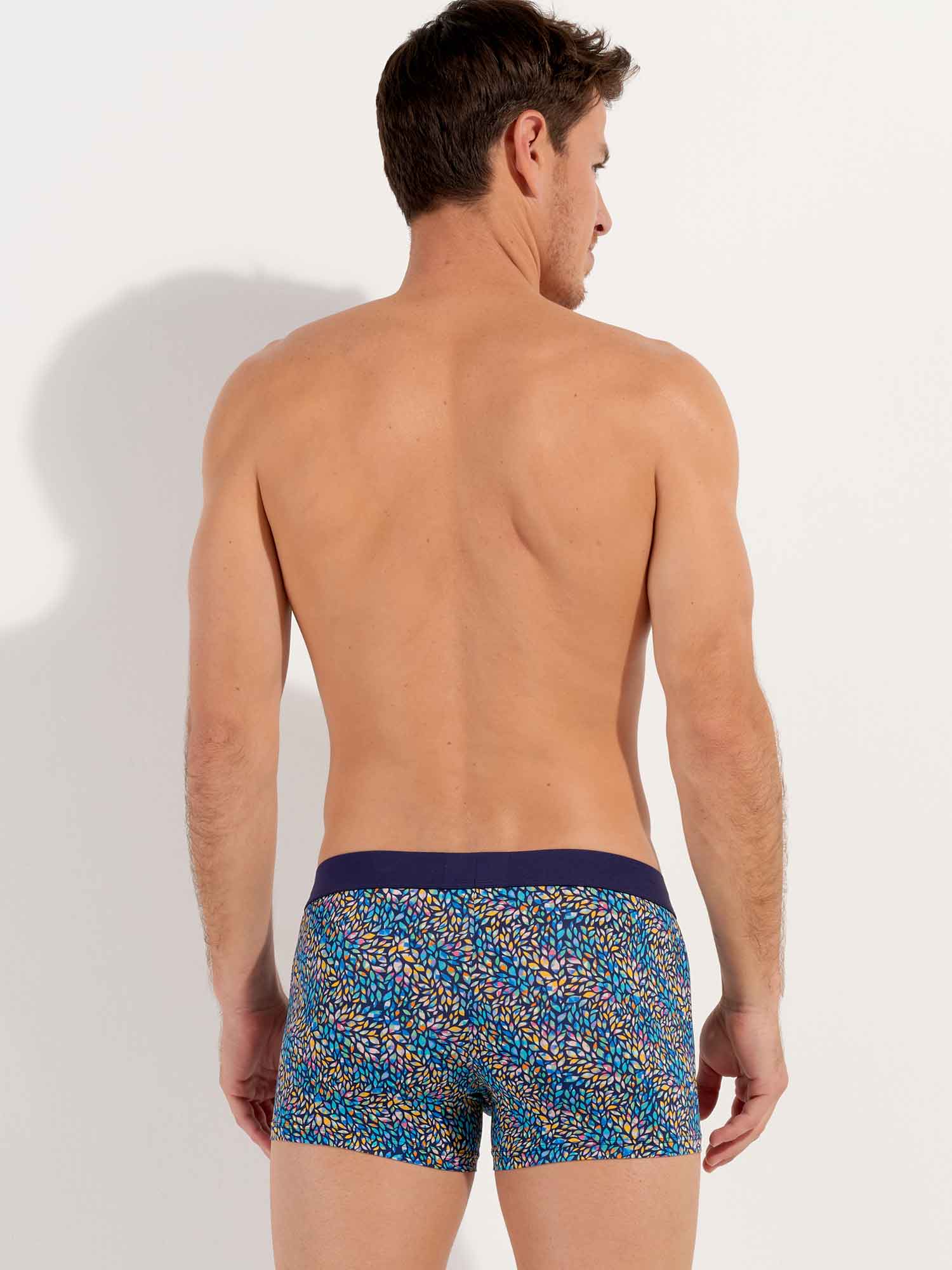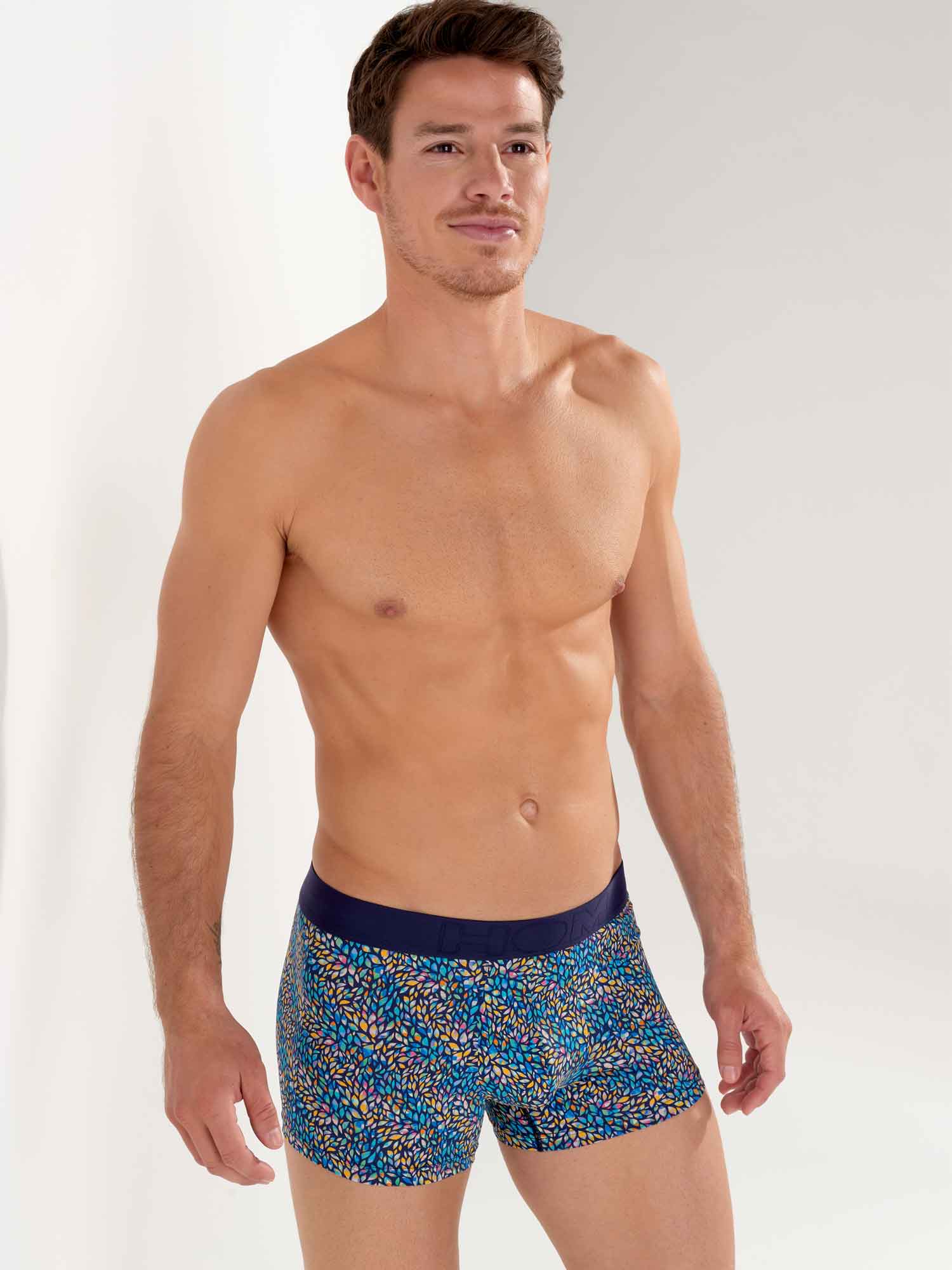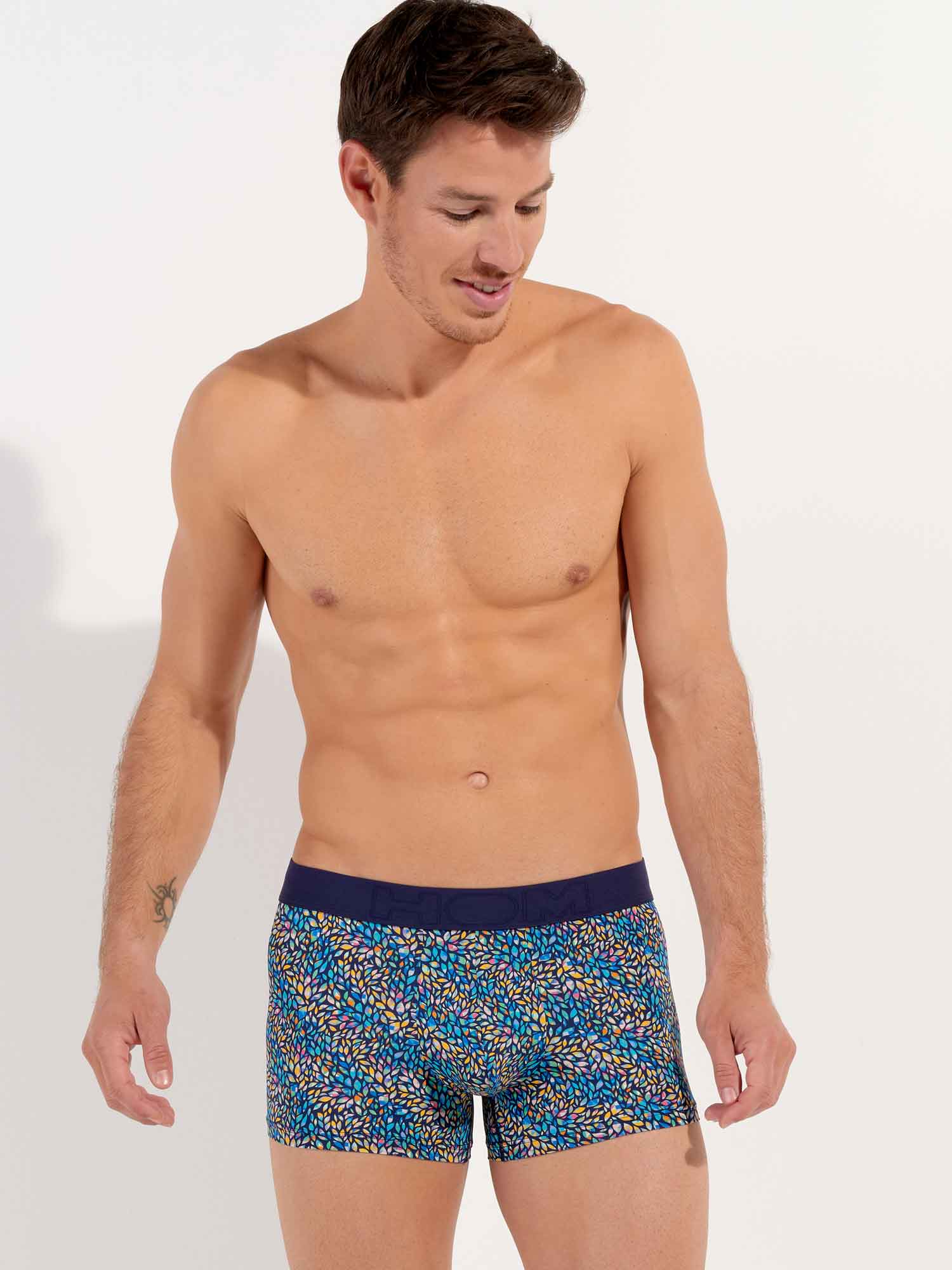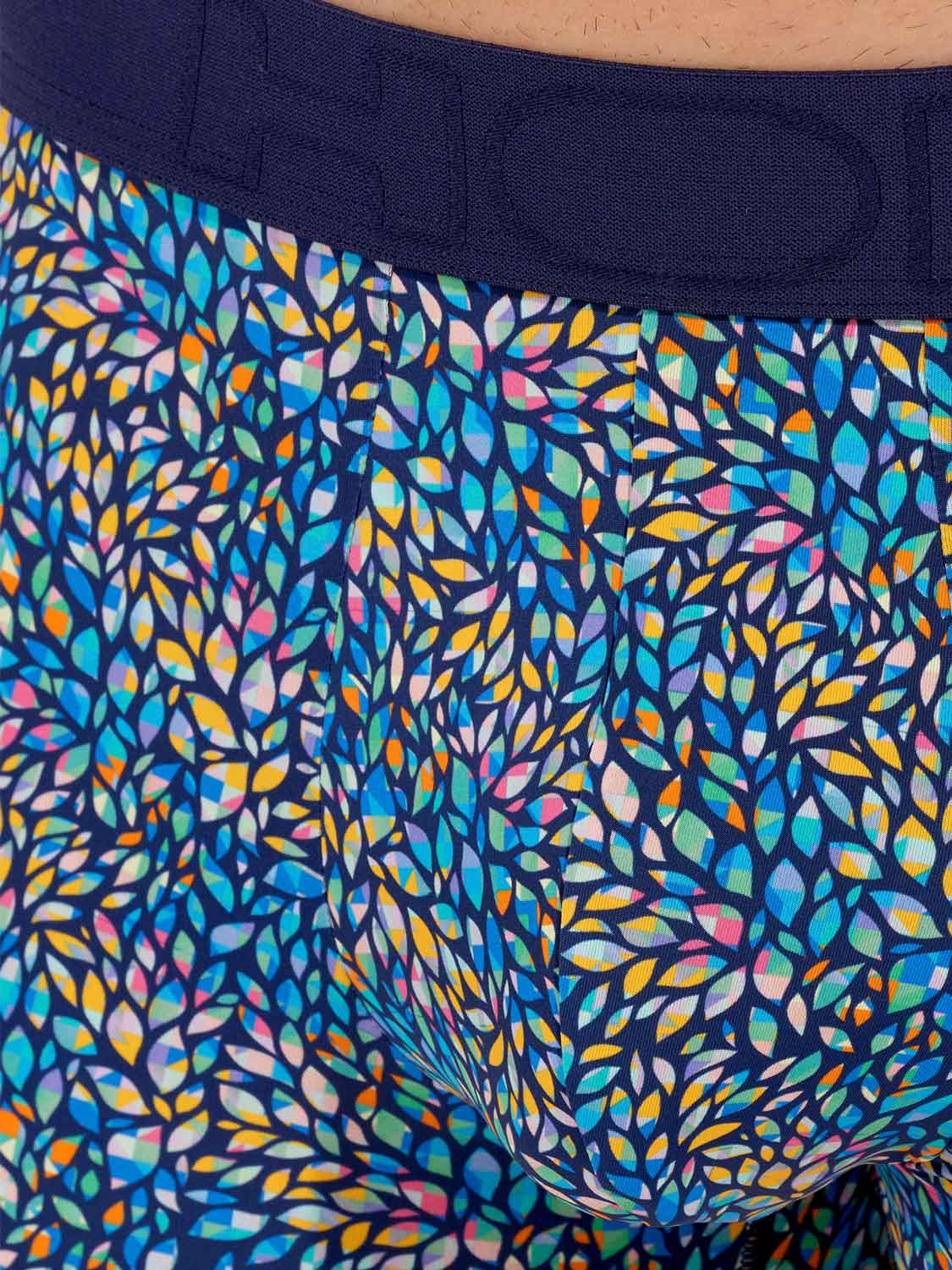 Buddy - Boxer Briefs er lavet af et behageligt mikrofiberstof. Disse herreboksershorts har et print med små, flerfarvede blade indlejret med geometriske mønstre på en marineblå baggrund. Buddy har en elastisk talje lavet af bomuld med HOM-logoet i tone-i-tone.