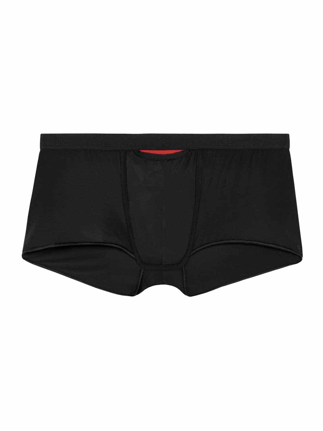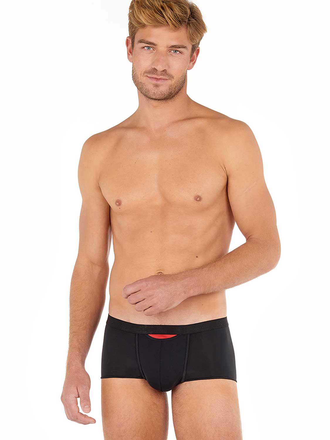 The Trunk HO1 - Plume Up er en plumes trunk med en horisontal åbning! Plumes er lavet af blød og let mikrofiber for ultimativ bærekomfort. Denne unikke version fås midlertidigt i ensfarvet blå, rød, sort og orange. Shortsene har smalle linjer i en kontrastfarve, hvilket giver dem et moderne retro-look. Ud over den horisontale åbning har disse trunks også en "push-up" pung foran, som forbedrer støtten for ekstra komfort og subtilt fremhæver den mandlige anatomi. Den elastiske linning er bredere end de almindelige plumes og har HOM-logoet på linningen.