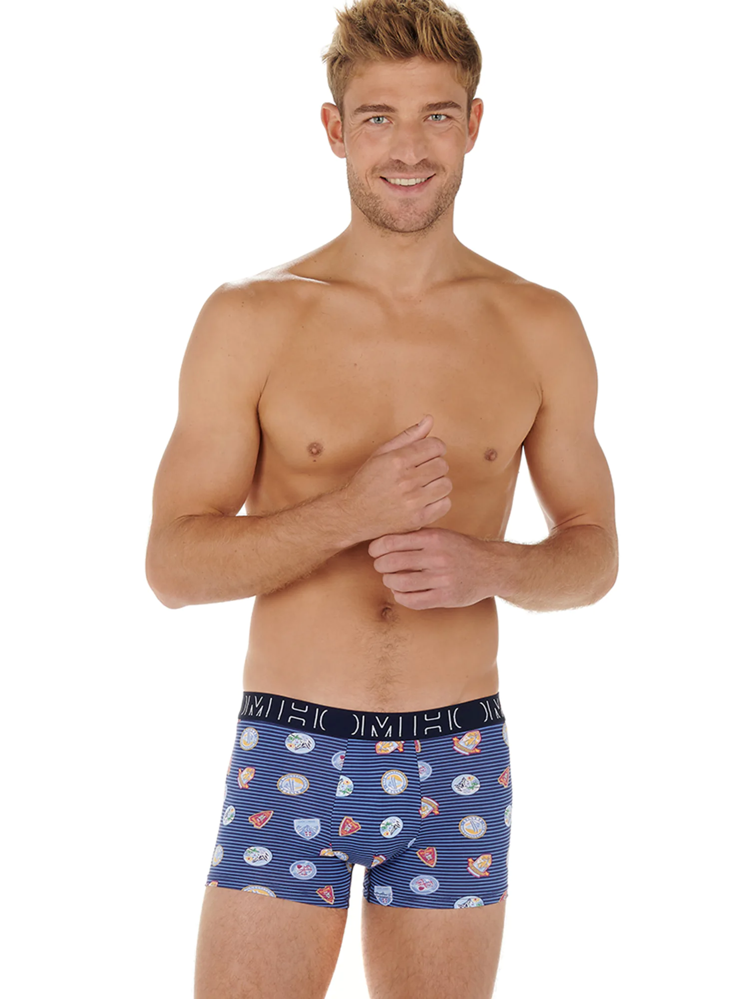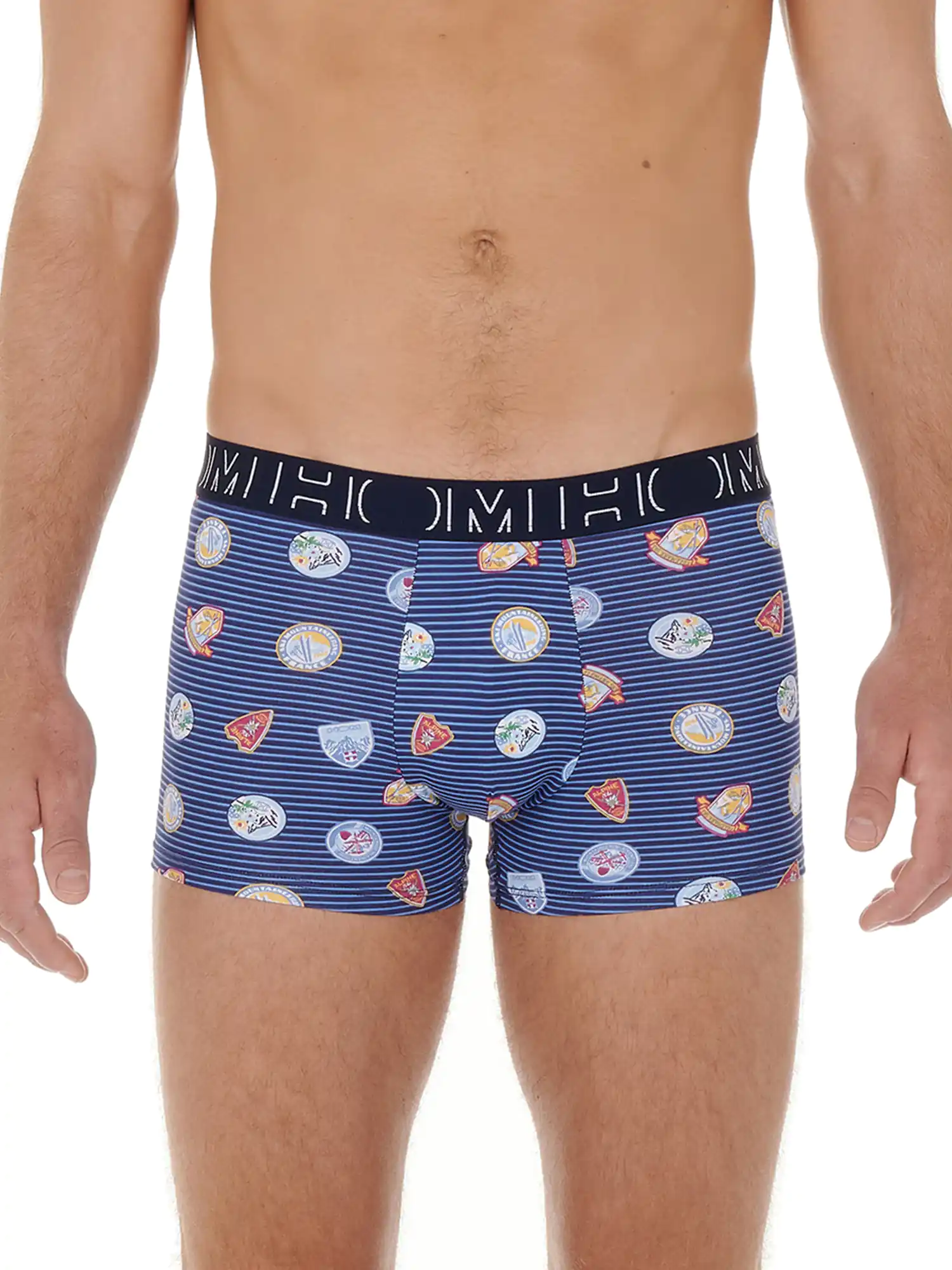 Die 2p Boxershorts - Alf ist ein preiswertes 2er-Pack. Die Boxershorts sind Teil der HOM BOXERLINES Serie und bestehen aus gekämmter Stretch-Baumwolle. Diese alltagstauglichen Herren-Boxershorts verfügen über einen Beutel auf der Vorderseite für zusätzlichen Halt und Komfort. Die BOXERLINES-Serie besteht aus einer leichteren Baumwollqualität als die Singlepacks. Alf bietet eine Boxershorts in schlichtem Marineblau und eine Boxershorts mit einem Aufdruck mit Wintersport-Emblemen.