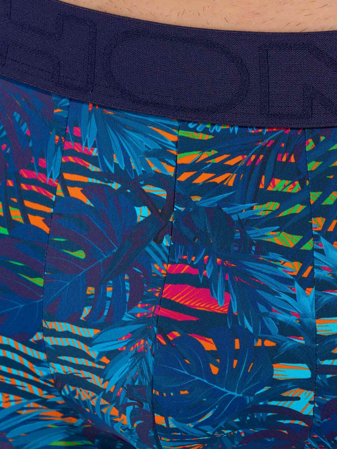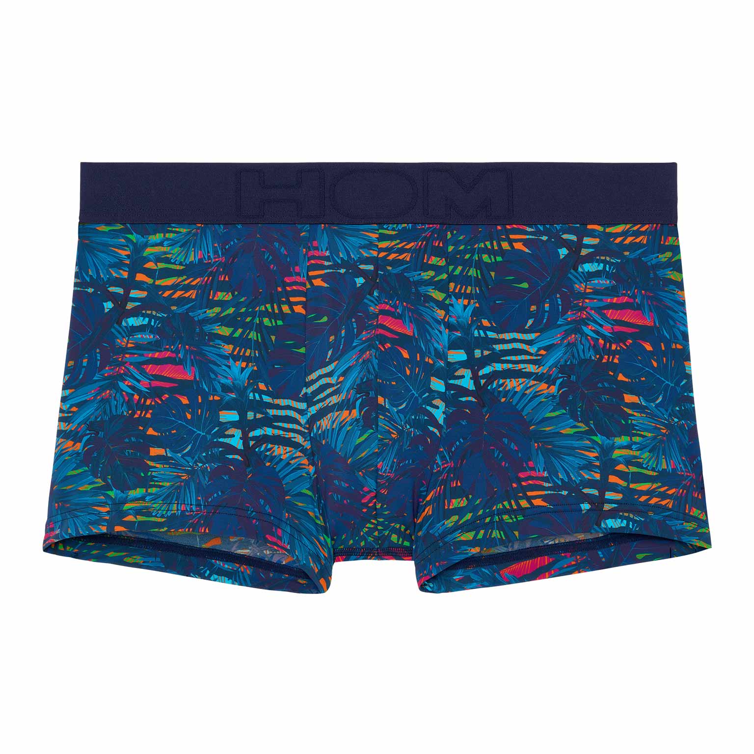 Die Dreamland - Trunk besteht aus einem bequemen Mikrofaserstoff. Das Dreamland-Design zeigt ein dunkelblaues tropisches Muster auf einem farbenfrohen, camouflageartigen Blumenhintergrund. Der elastische Bund in Marineblau ist aus Baumwolle mit dem HOM-Logo in Ton-in-Ton gefertigt.