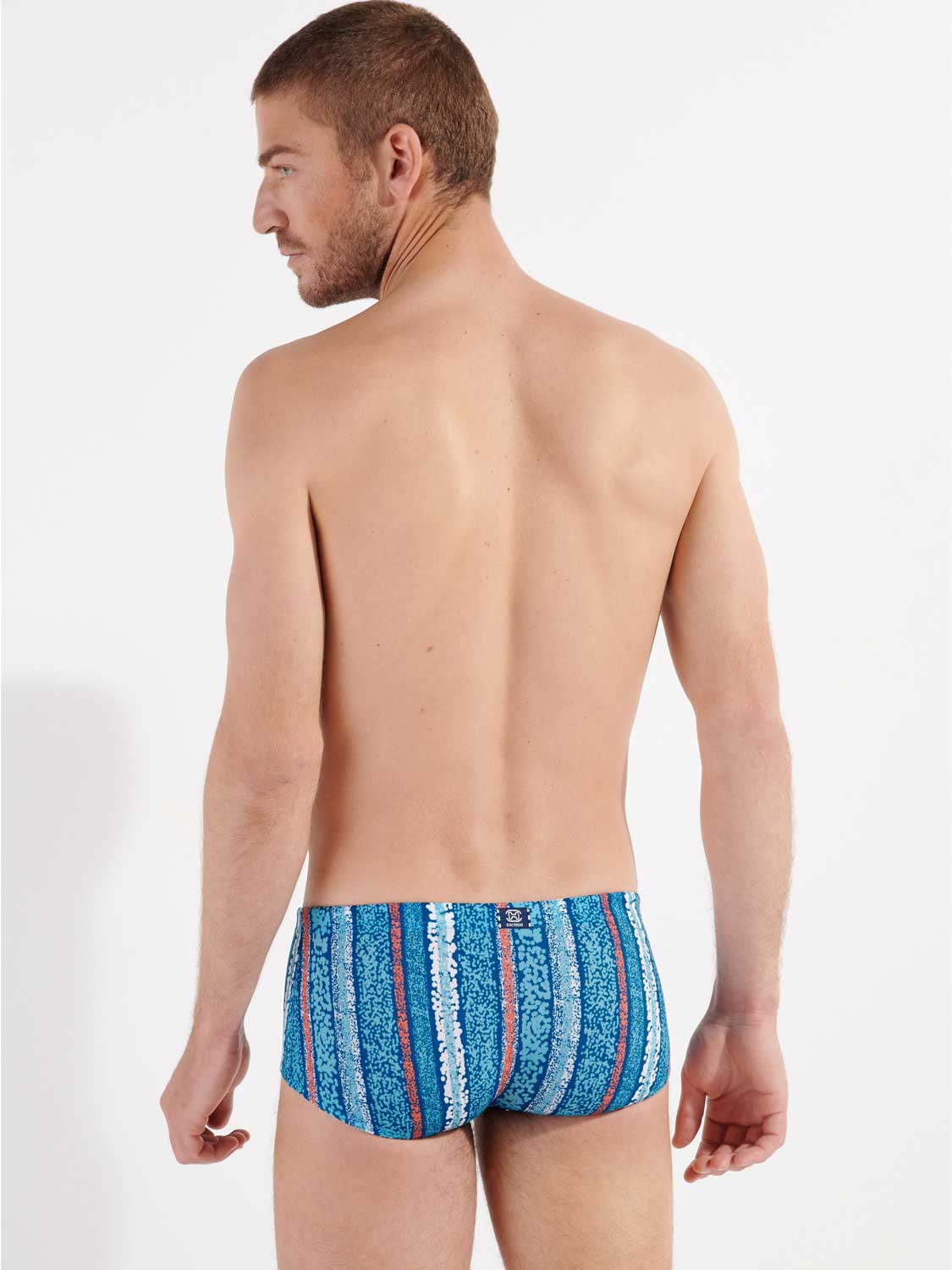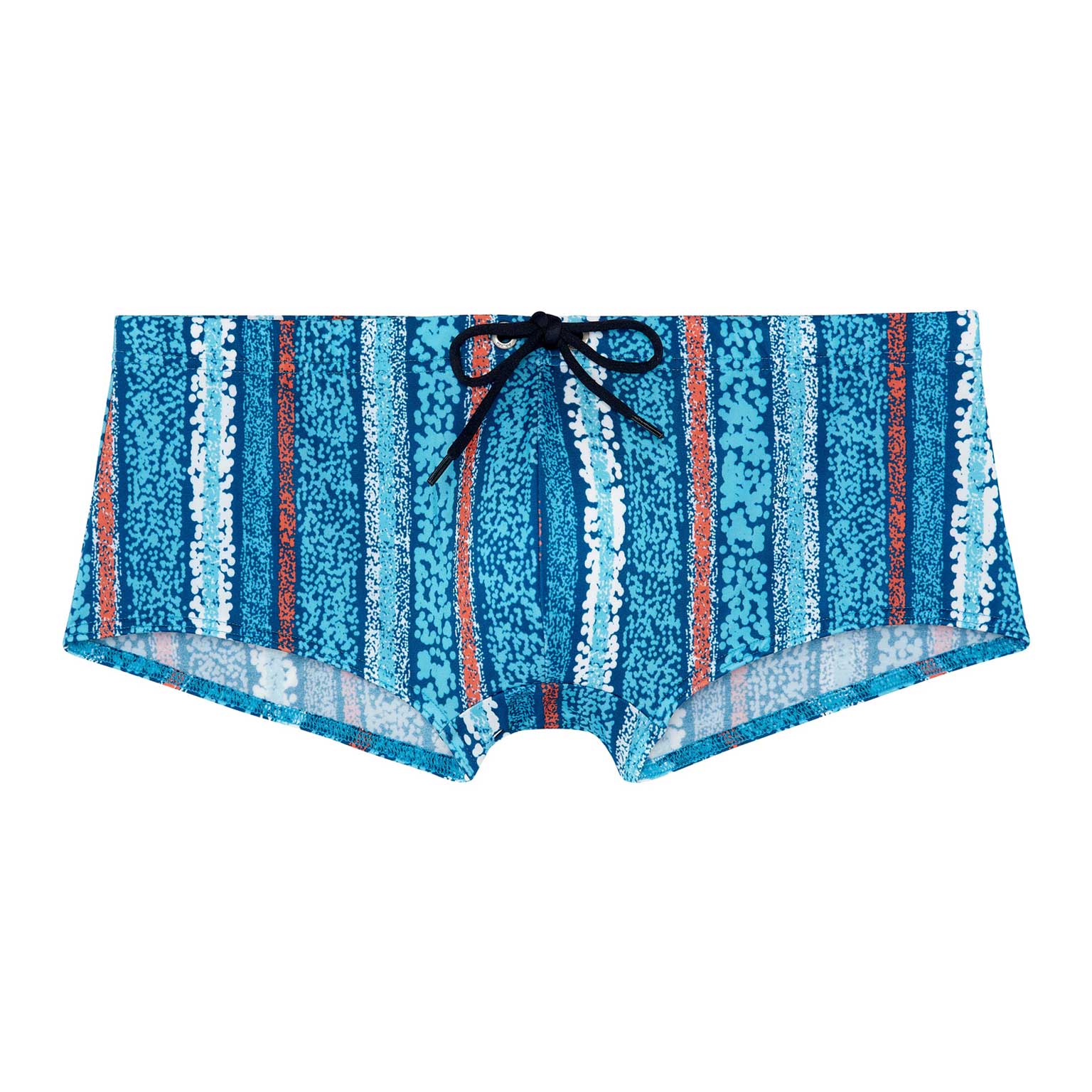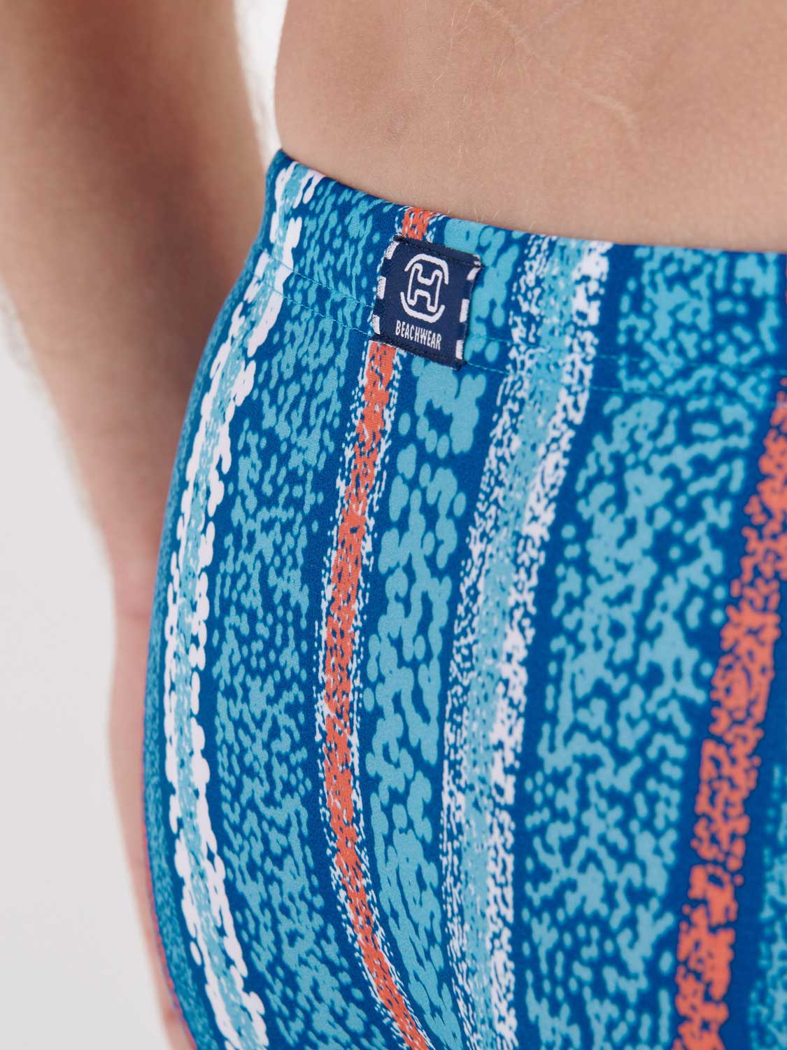 Der Harrisson - Swim Trunk Boxer hat einen modernen Druck mit vertikalen Linien in Blau, Weiß und Orange. Der Stoff ist elastisch, damit er gut auf der Haut liegt und nicht durchscheint. Da es sich um eine Badehose handelt, sind die Beine kürzer als bei normalen Badeshorts und fallen tiefer auf die Hüften. Mit dem Kordelzug im Bund können Sie diese Badehose auf die richtige Größe einstellen. Ein toller Modeartikel mit klassischem Look für den Strand oder das Schwimmbad.