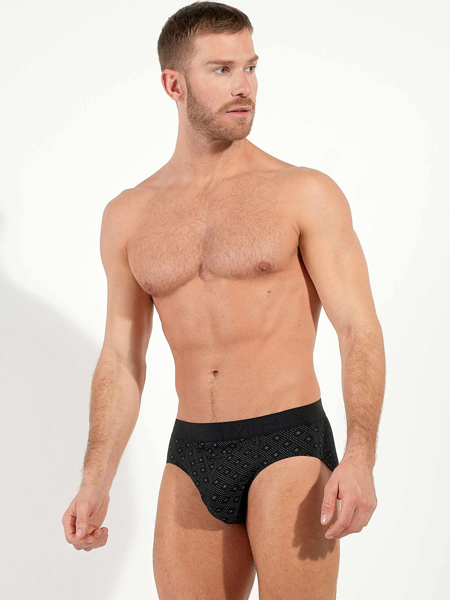 Das Set enthält einen unifarben schwarzen Slip und einen mit einem raffinierten Microprint im Krawattenstil. Die vordere Tasche ist für zusätzlichen Halt gefüttert, und der elastische Bund ist rundum mit einem dezenten HOM-Logo versehen. Eine ideale Wahl für Männer, die Komfort mit Stil kombinieren möchten.