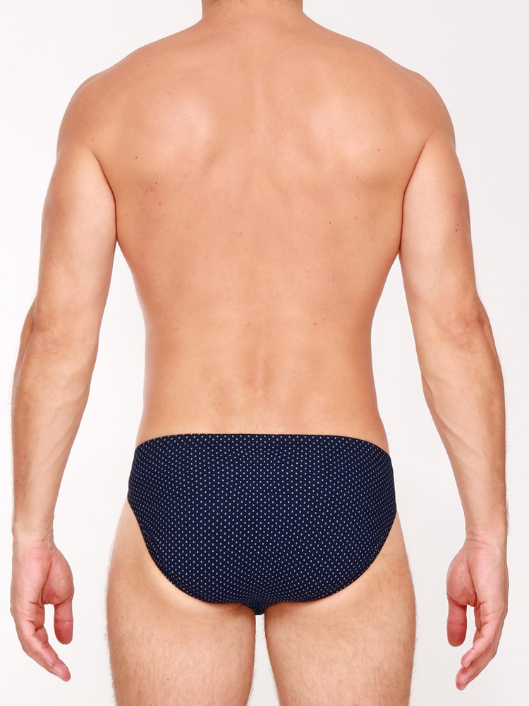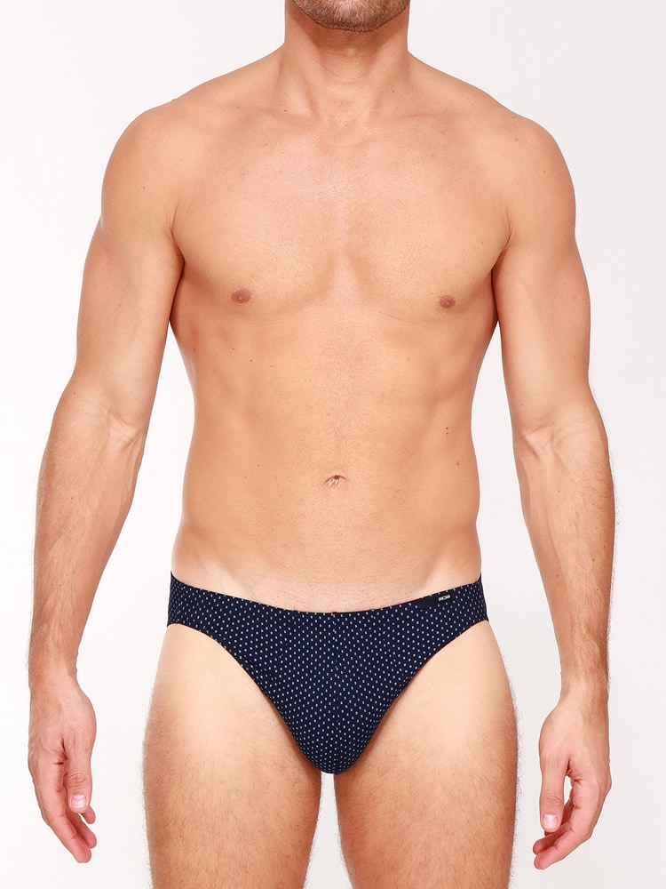The MAX HOM microbrief is made from a comfortable microfiber with an elegant look and a tie pattern in navy blue with white tones. The slip sits lower on the hips than a mini slip, leaving the legs completely free for more freedom of movement. Because the slip is made from microfiber, it dries quickly and feels soft. The slip is a comfort model and has fabric extended over the elastic band for the best wearing comfort.