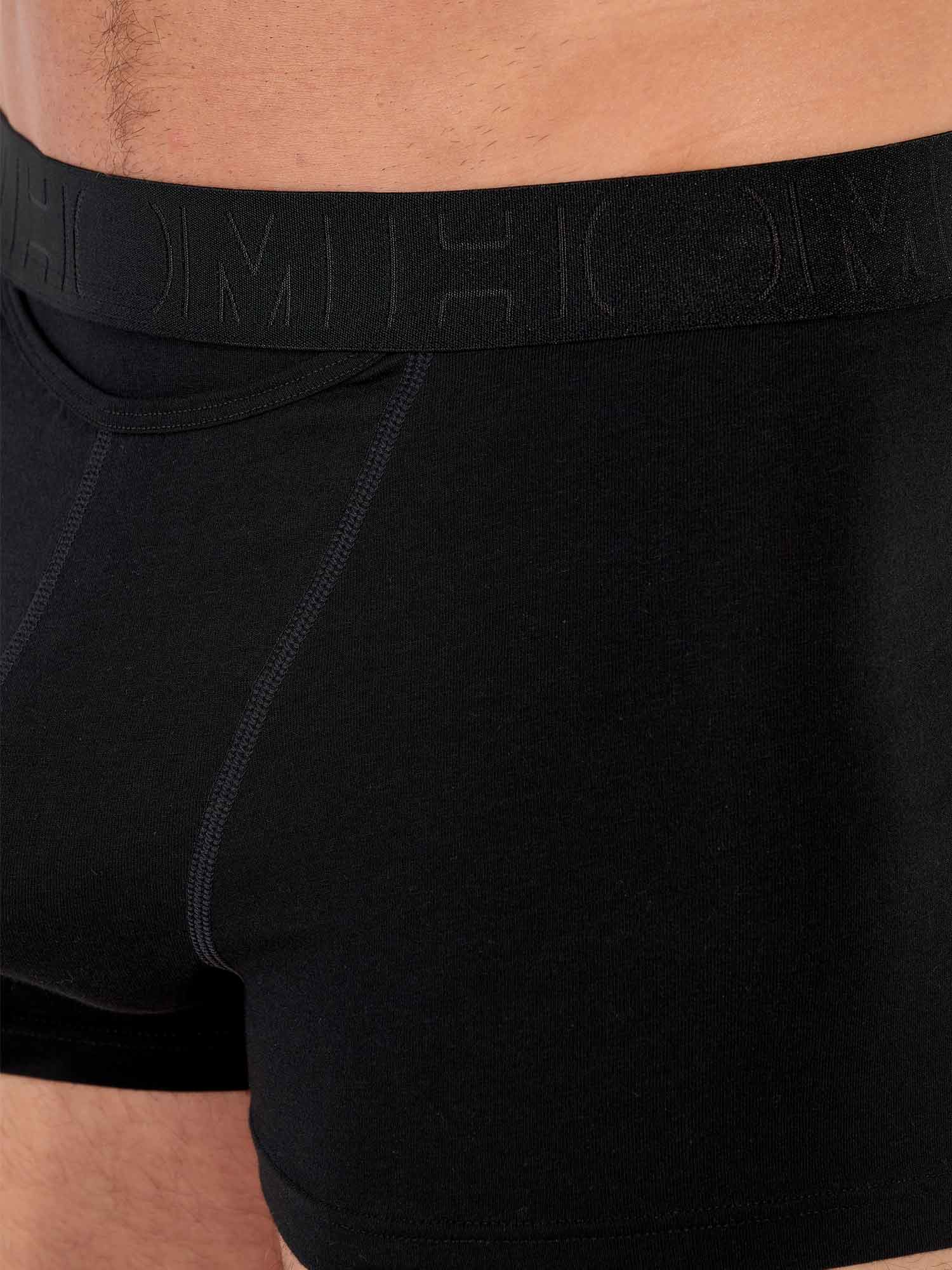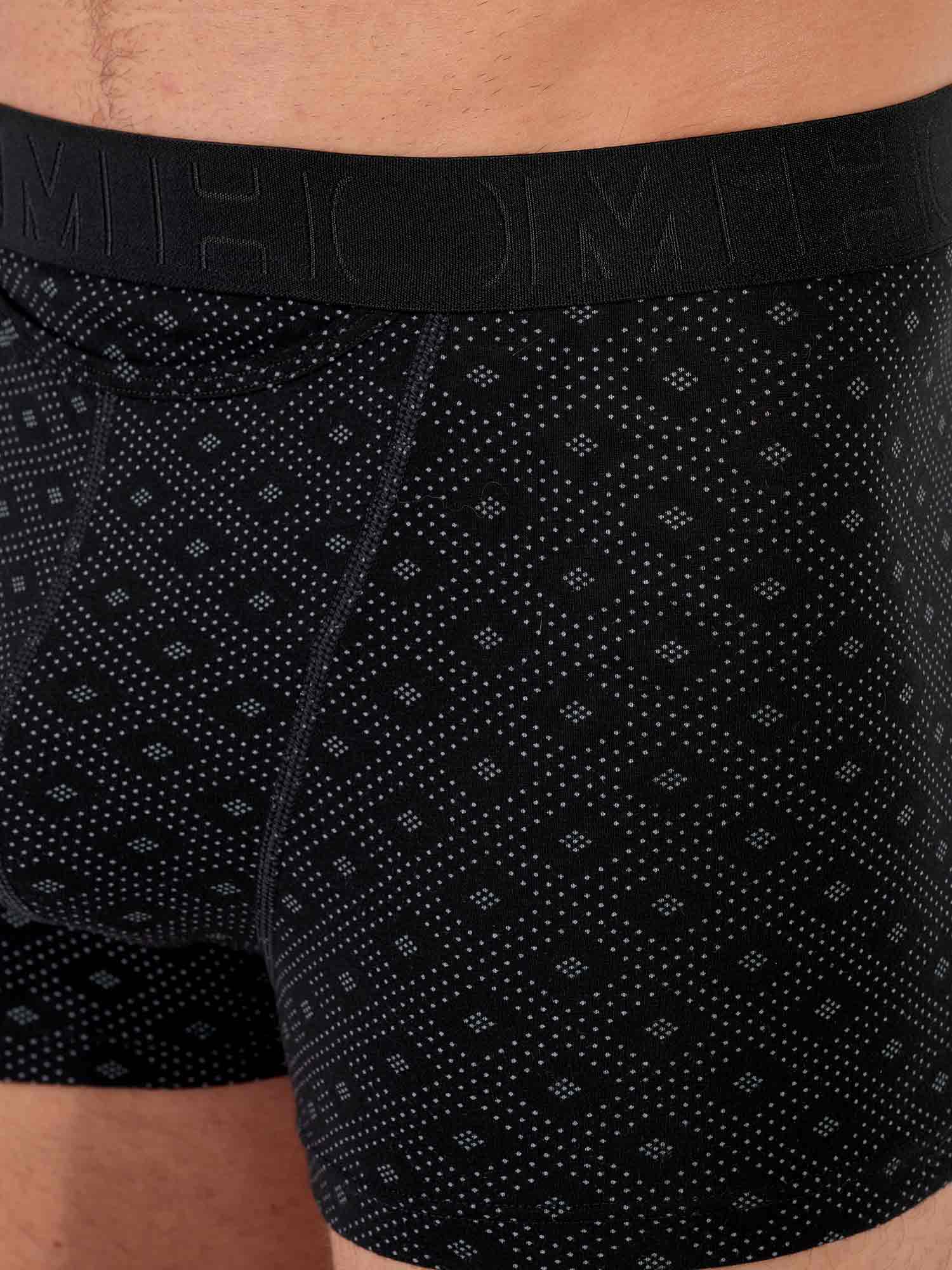 The pack includes one plain black boxer and one with a refined tie-style microprint. The front pouch is lined for extra support, and the elastic waistband features the subtle HOM logo all around. An ideal choice for combining comfort and style.