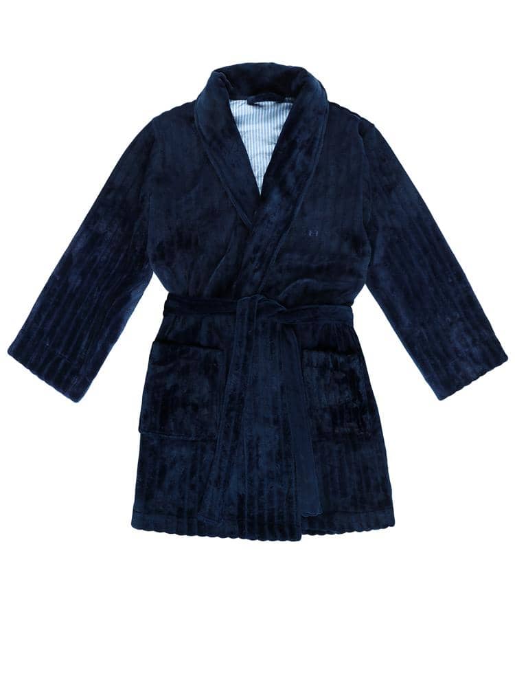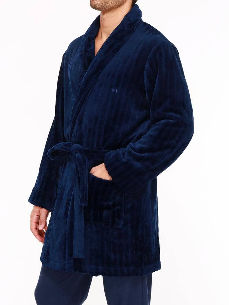 This bathrobe is short and made from thick, soft fleece polyester material, which excellently regulates temperature and keeps you nice and warm. The bathrobe has a chic appearance due to the shaved vertical lines creating a beautiful relief. You can close the bathrobe with the matching belt. The inside of the bathrobe at the neckline is lined with cotton, so it rests comfortably and loosely on the neck and upper back.