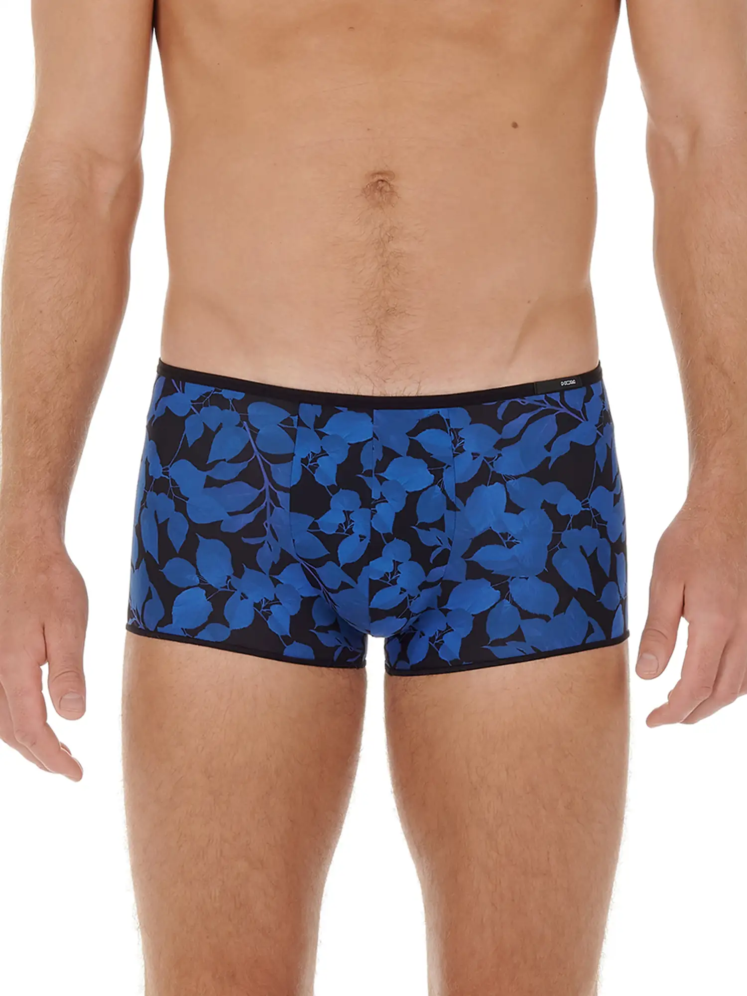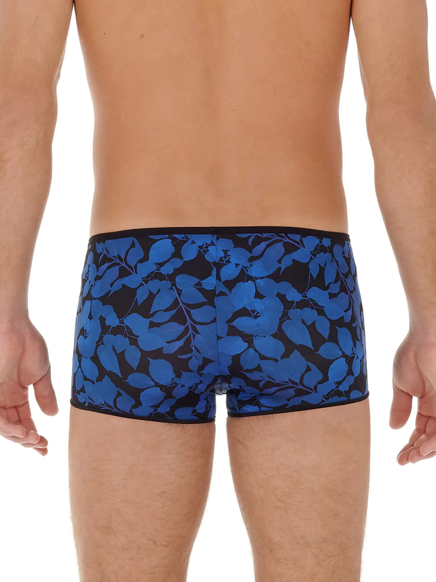 The Quentin Trunk is part of the HOM Temptation series. With its blue leaf print on a dark background, this trunk entices you for the ultimate sensual look. The Quentin is made from a comfortable and soft microfiber that fits perfectly against the skin. The fit of the Quentin is the same as the Plumes Trunk. A small HOM label is embroidered on the narrow waistband.