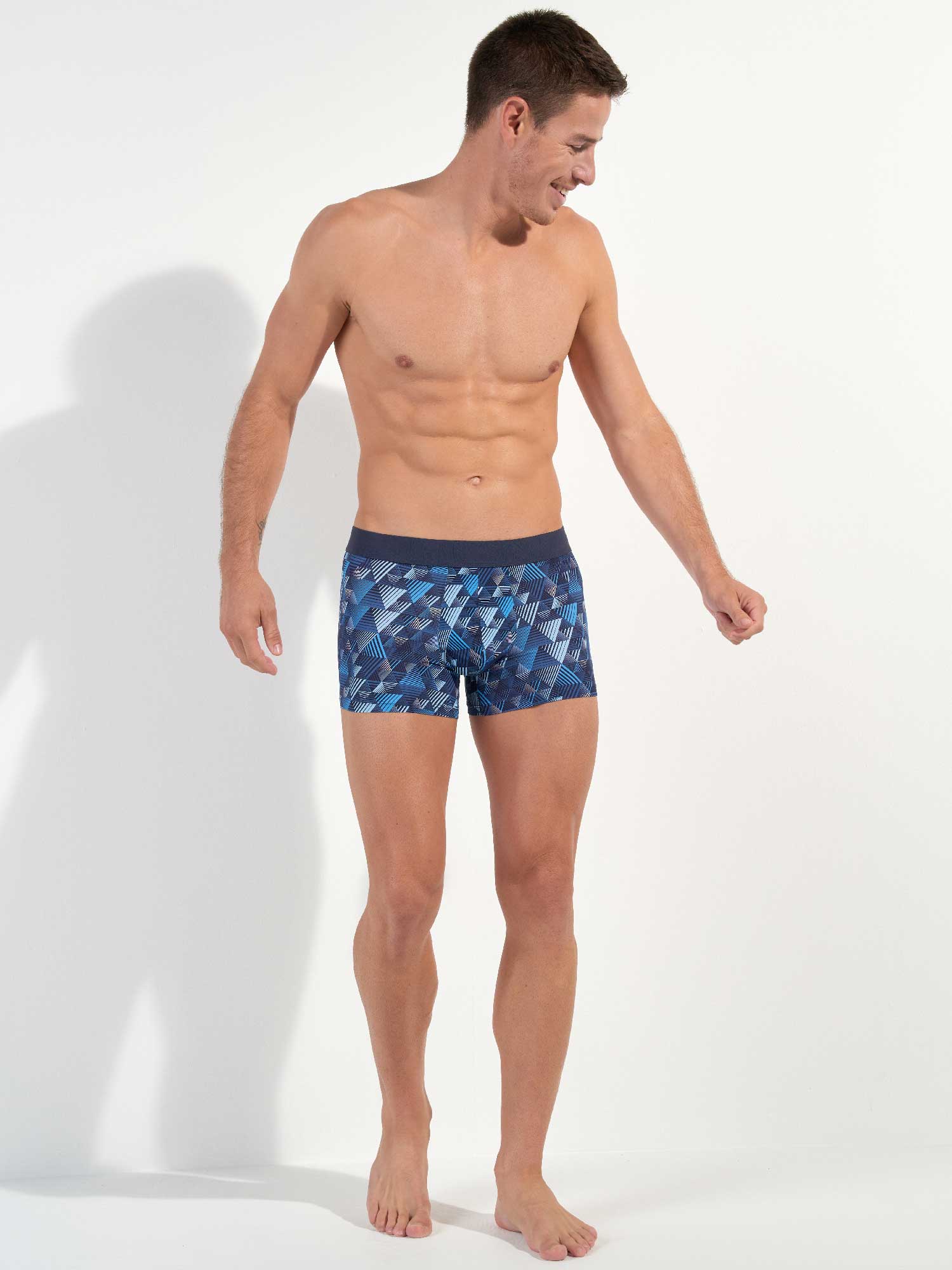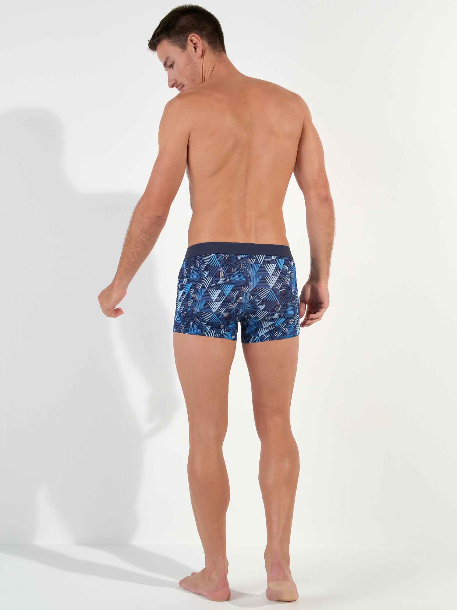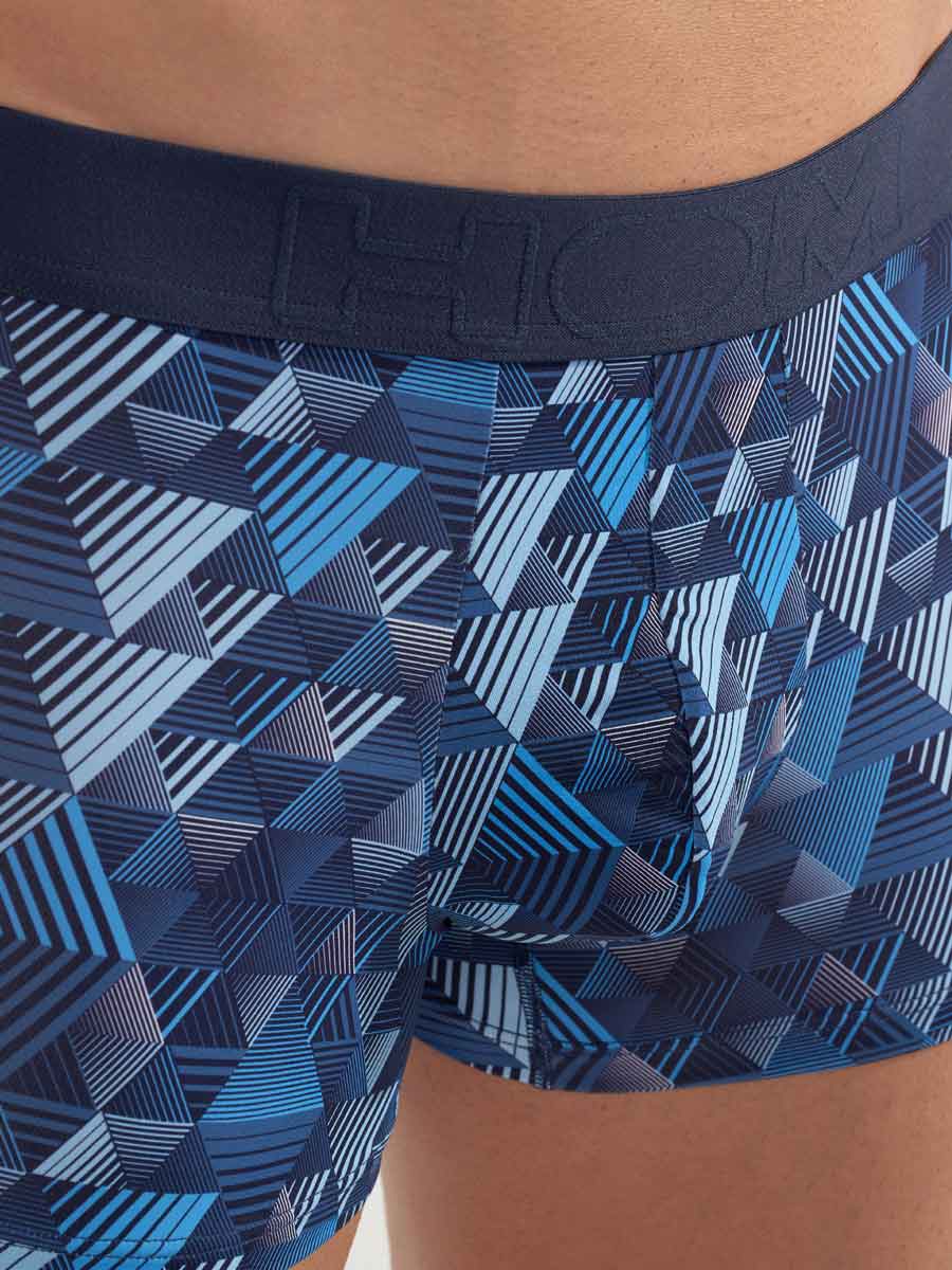 The Mekong - Boxer Briefs are made from a comfortable microfiber. These men's boxer briefs feature a contemporary print with geometric triangles in shades of blue. The Mekong has an elastic waistband made of cotton with the HOM logo in tone-on-tone.