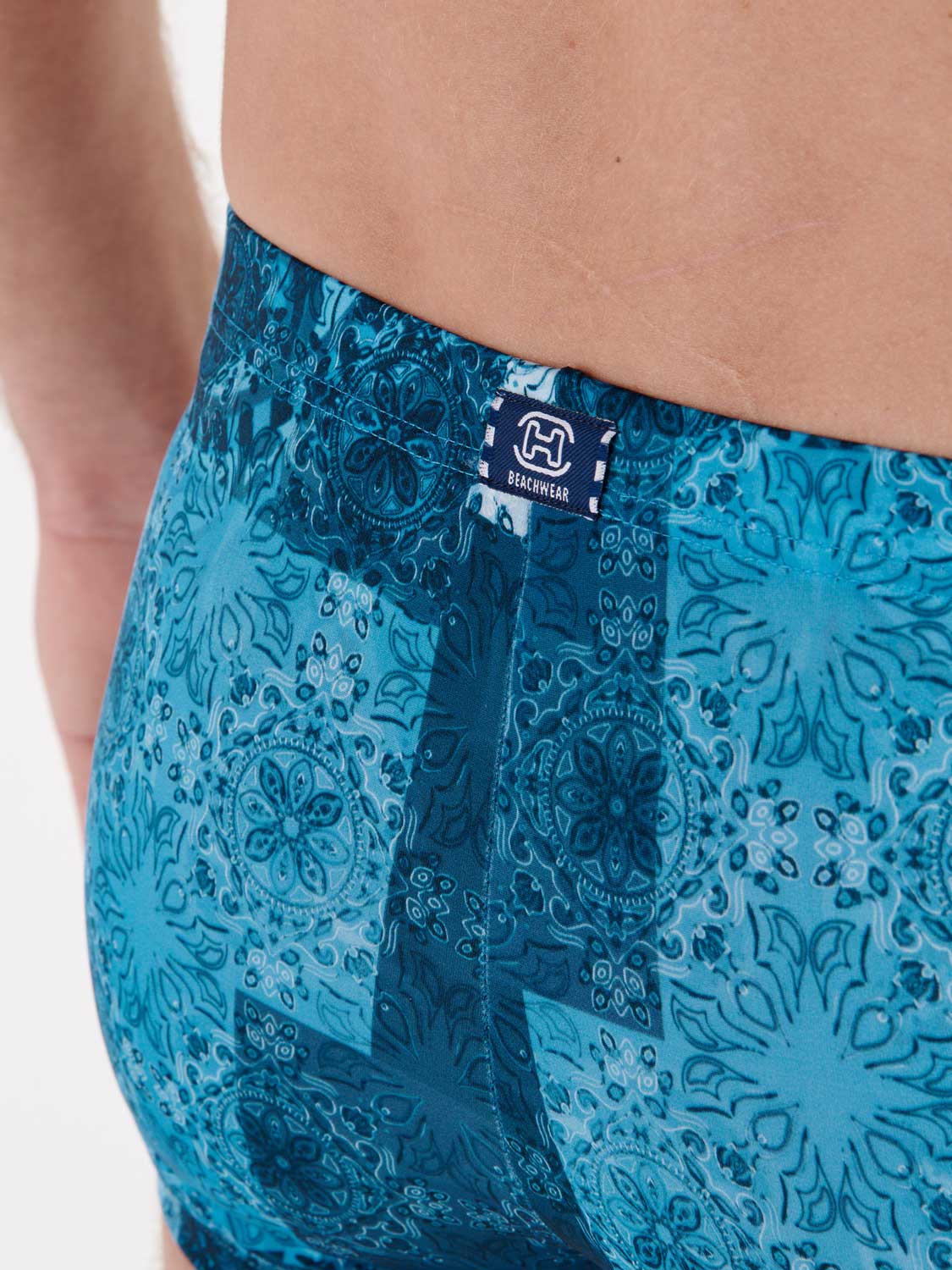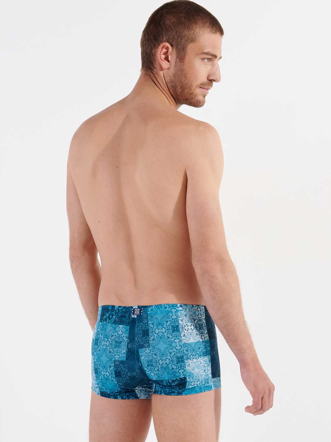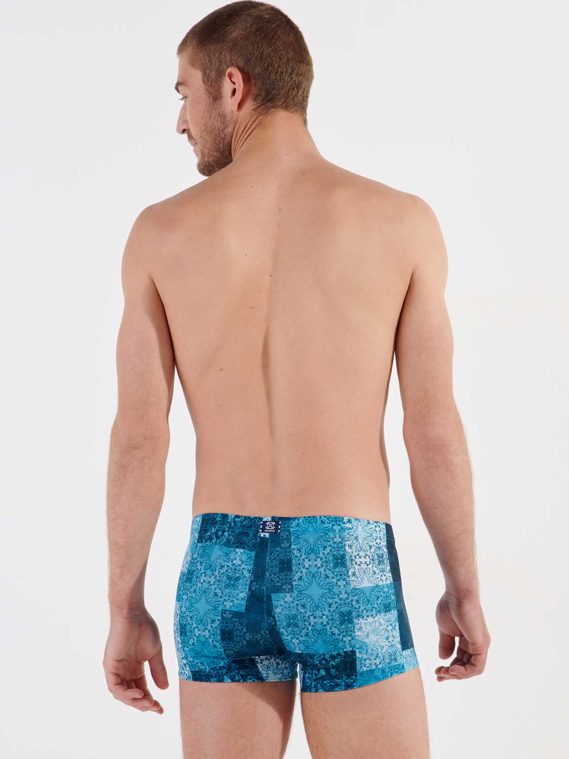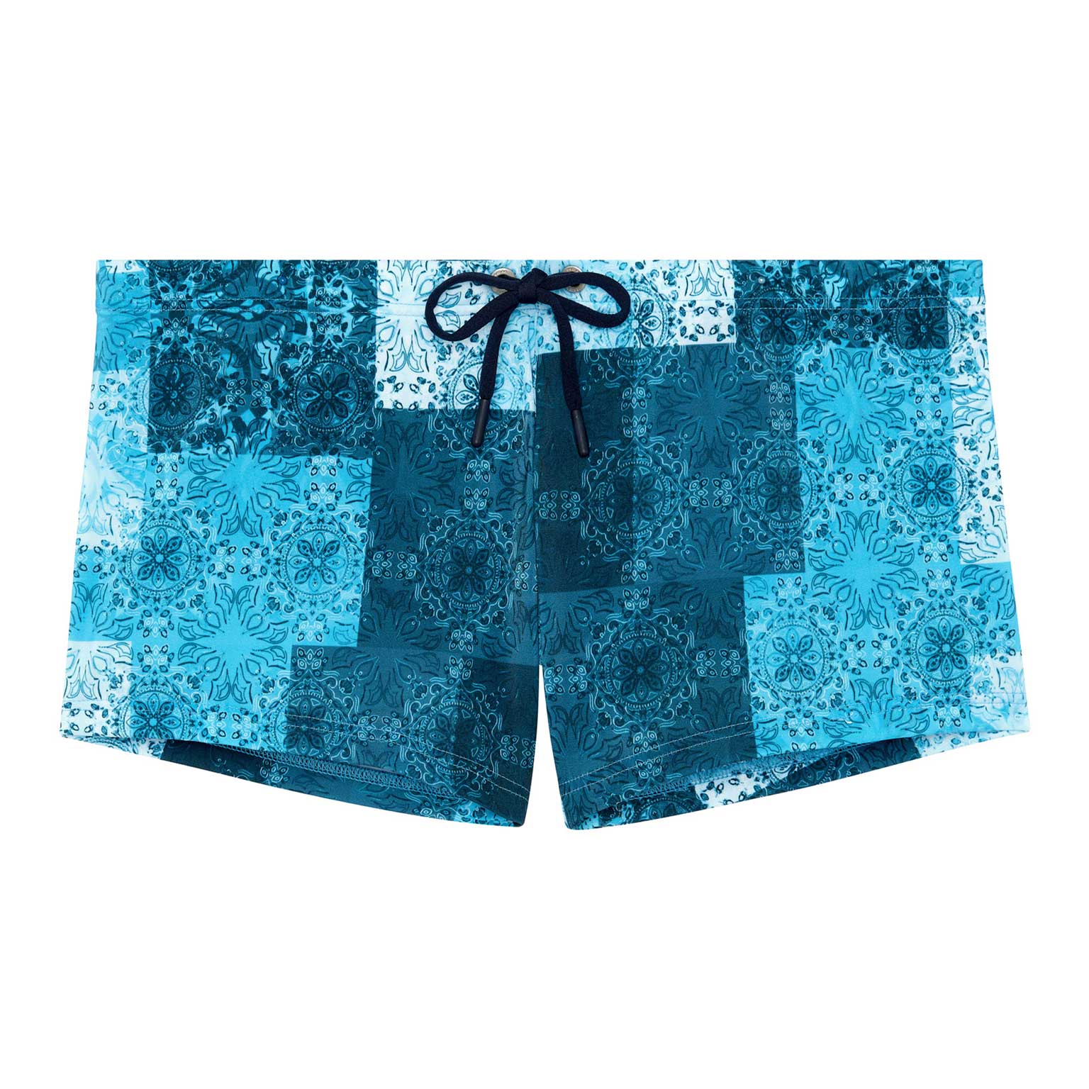 The Pierce - Swim Shorts tienen un hermoso diseño de patchwork con un sutil patrón de caleidoscopio en varios tonos de azul. La tela es elástica, se ajusta bien a la piel y tiene un forro interior blanco para evitar la transparencia en los parches más claros. Con el cordón en la cintura, puedes ajustar los mini briefs perfectamente a tu talla. Un hermoso artículo de moda con un diseño clásico para la playa o la piscina.