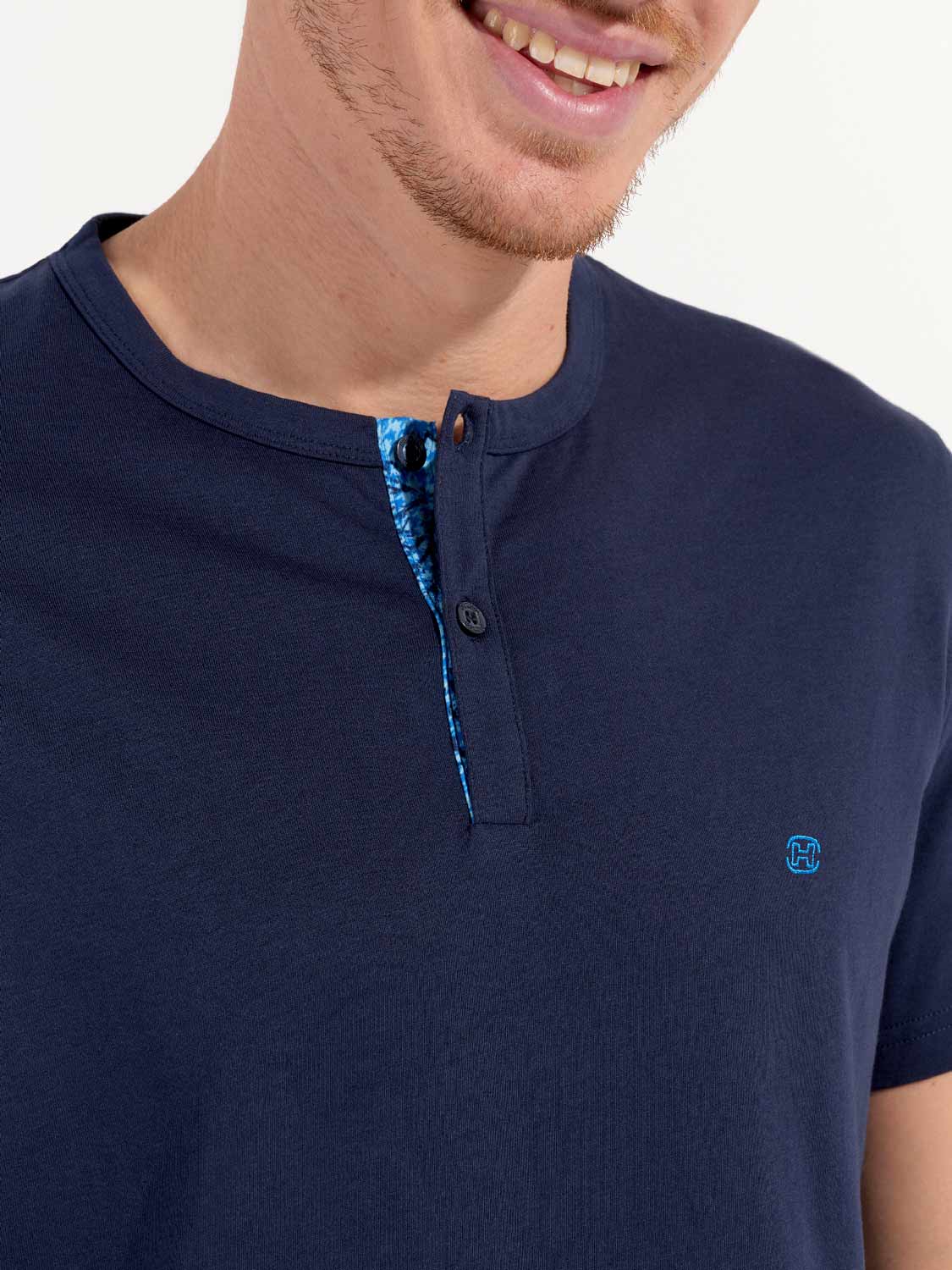 - Lyhythihainen T-paita pyöreällä kauluksella ja napeilla