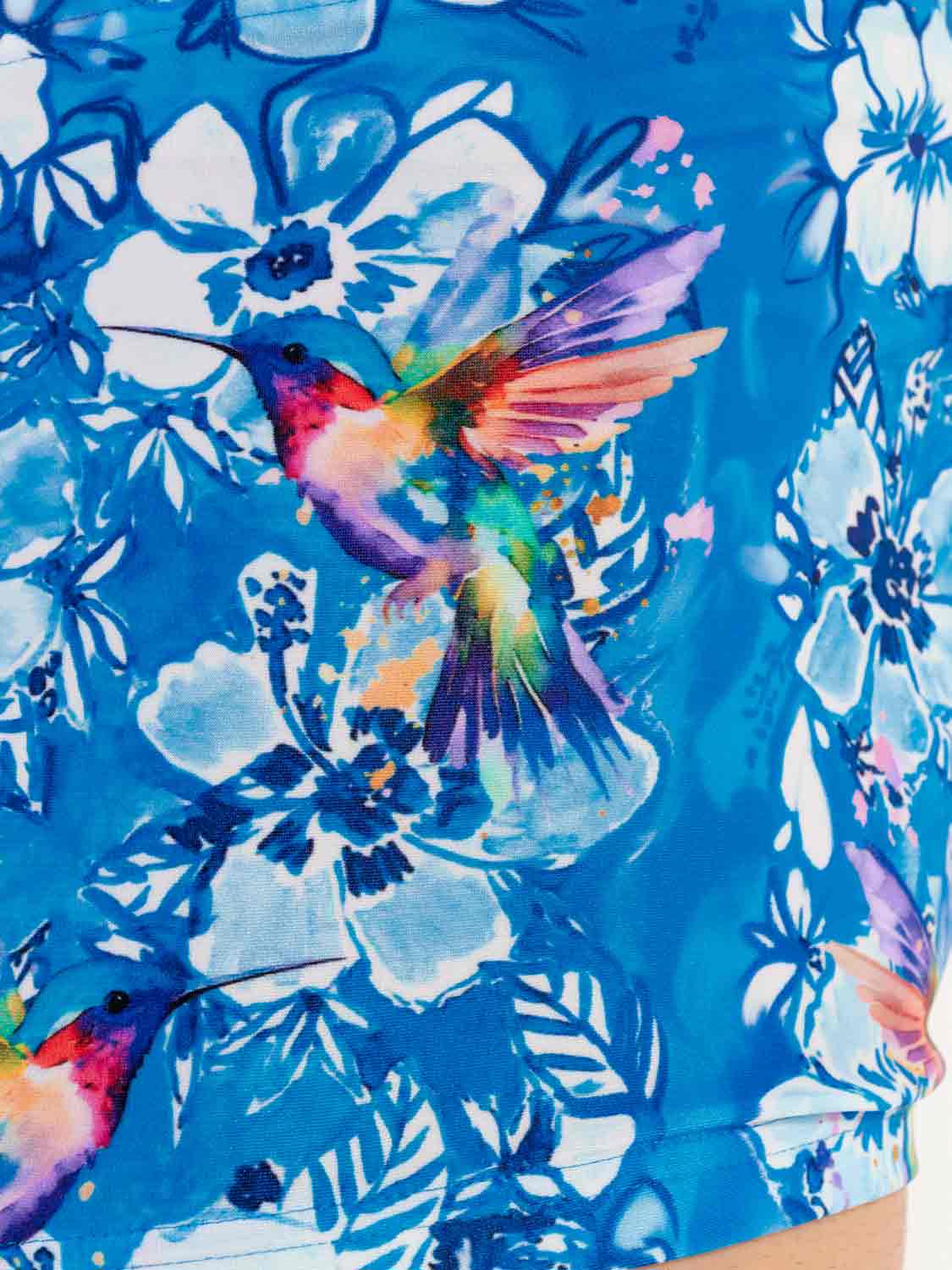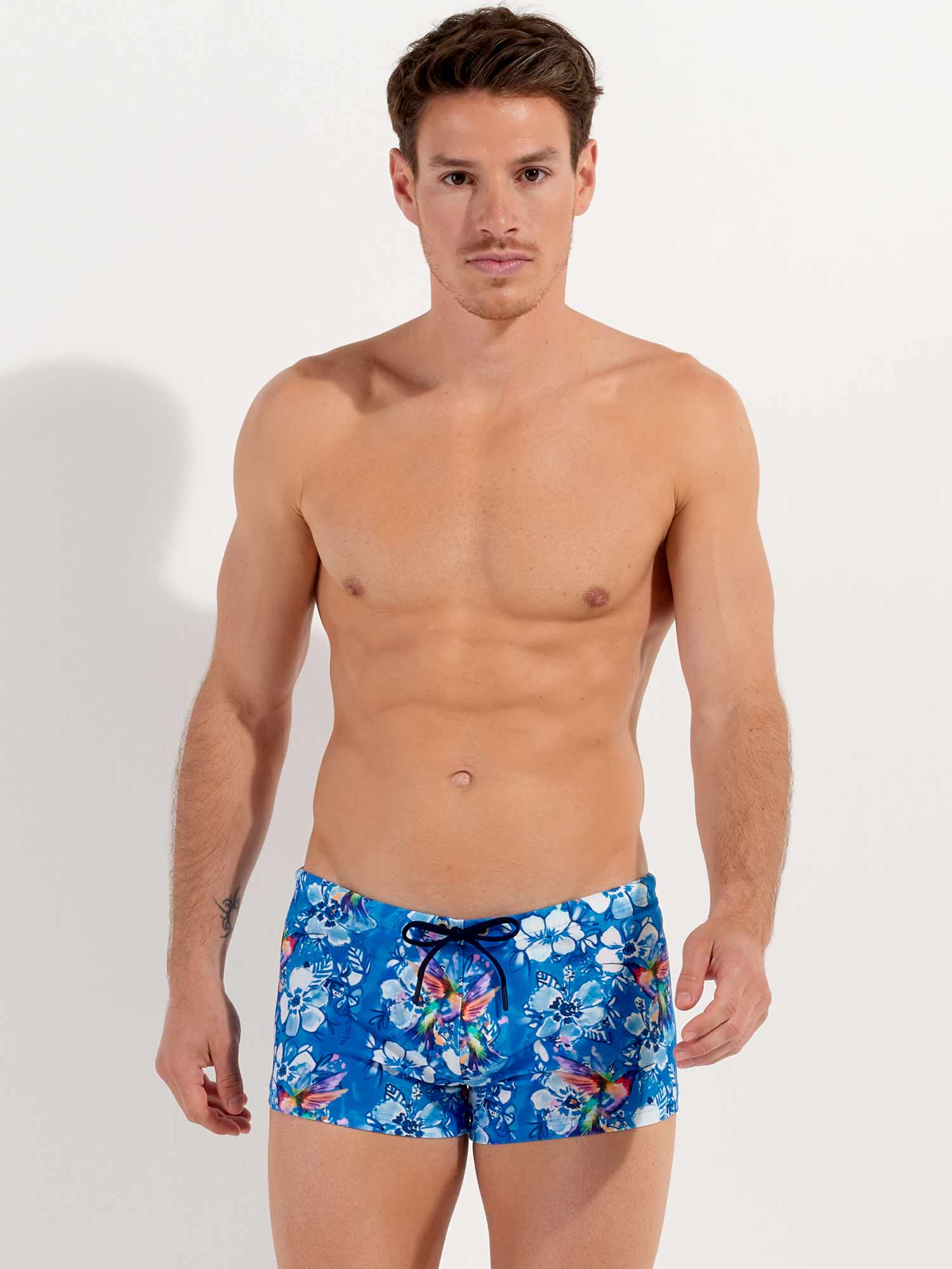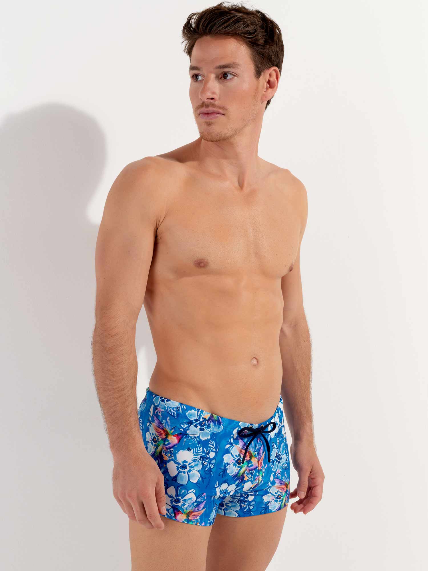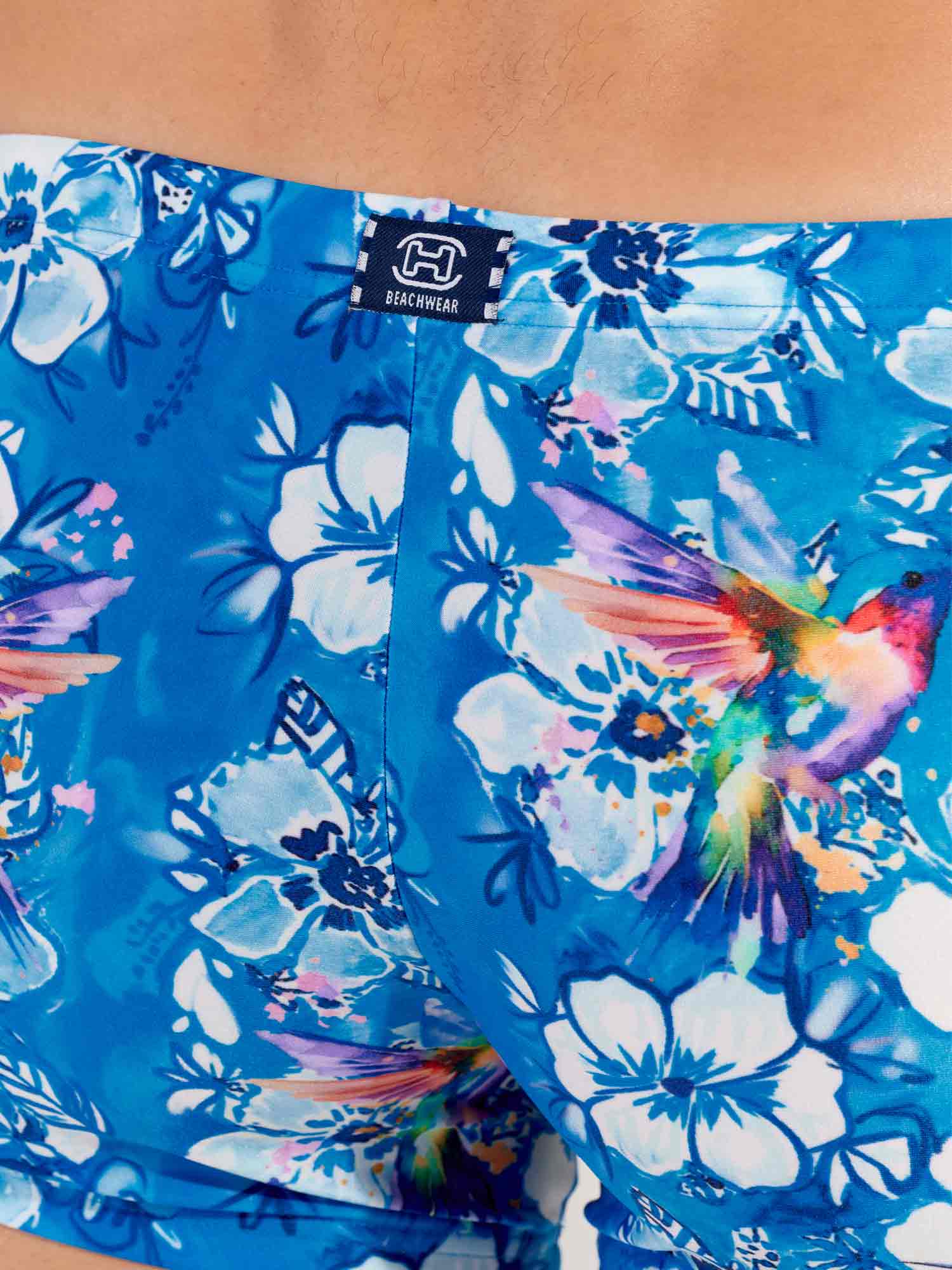 Colibris - Swim Shorts -uimahousuissa on värikäs kukkakuosi ja kolibreja. Kirkkaanväriset kolibrit sinisävyisellä eksoottisella kukkakuosilla tuovat mieleen Karibian trooppisen luonnon. Kangas on joustava, istuu hyvin ihoa vasten eikä ole läpinäkyvä. Vyötärön kiristysnyöri mahdollistaa täydellisen säädön kokosi mukaan. Tämän muodikkaan uimahousun avulla tuot iloa rannalle tai uima-altaalle.
