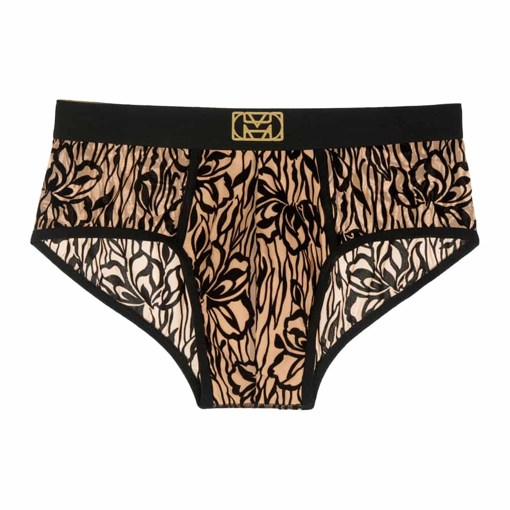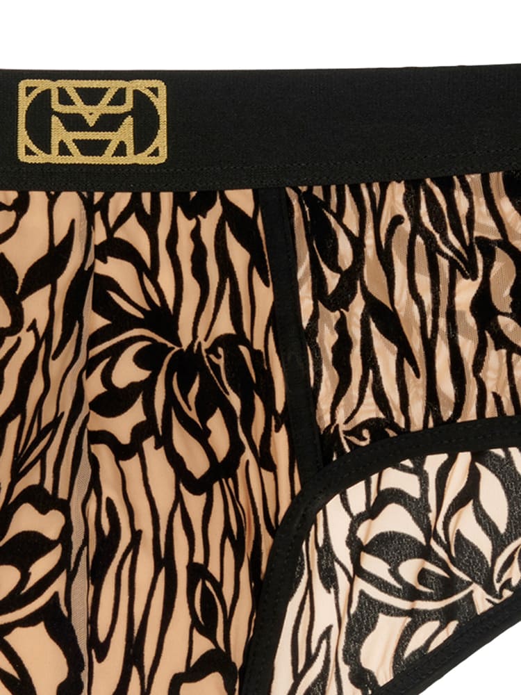Le Adonis est un midi brief élégant qui fai partie de la collection 'Temptation' d'HOM. Il est réalisé en polyamide avec un peu d'élasthanne. Voilà pourquoi il est très doux, plus résistant aux frottements et il sèche rapidement. Le slip midi, avec sa taille un peu plus haute, est disponible en couleur de peau avec un imprimé noir en mesh. Le logo de la marque se trouve à la ceinture élastique.