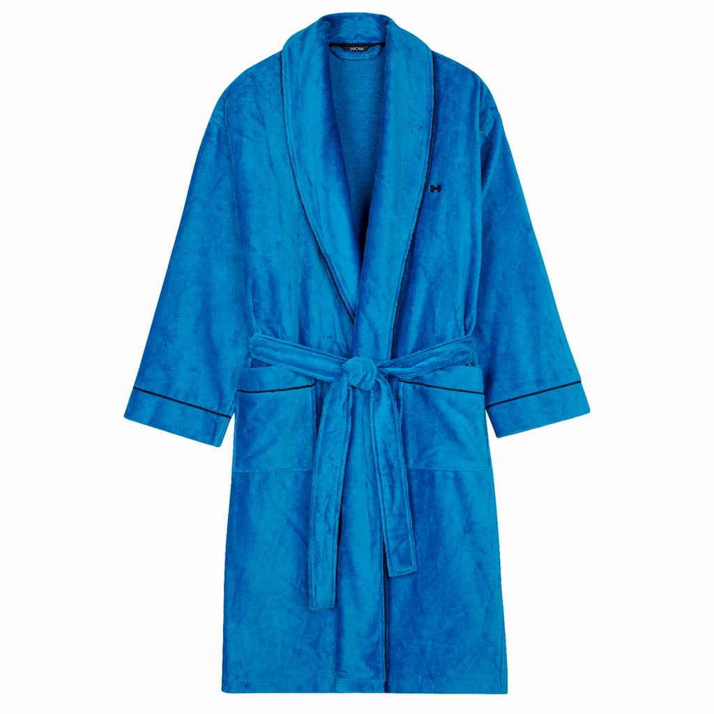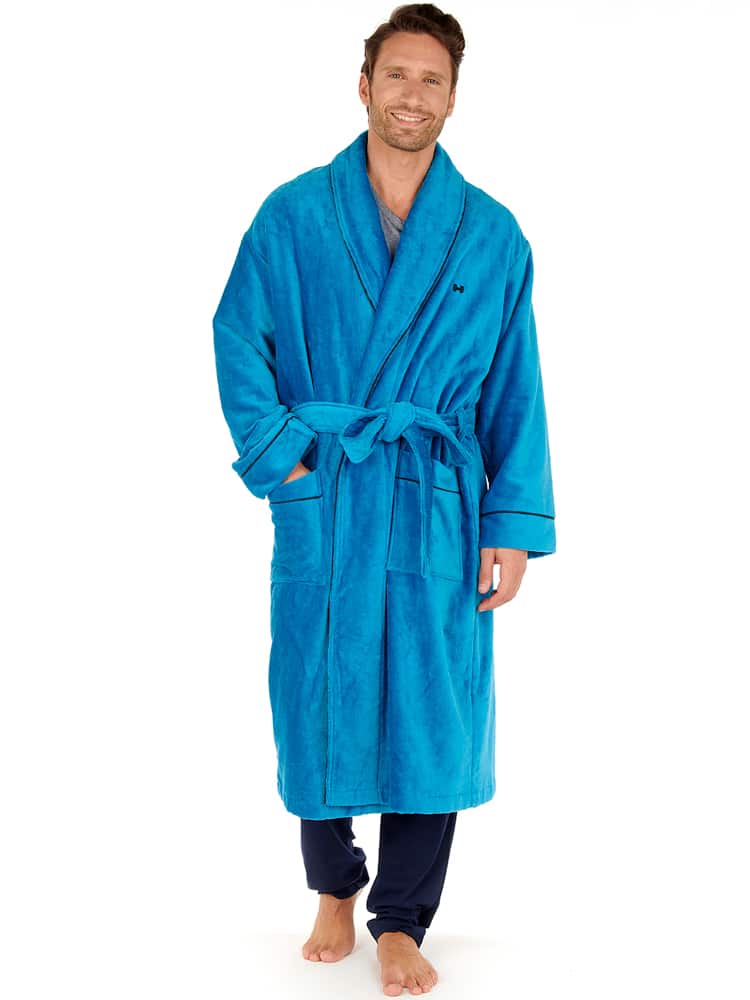 Il Charlie è una vestaglia in un bellissimo colore blu. La vestaglia è realizzata in 90% cotone, che assorbe bene l'umidità, e 10% poliestere, che la rende più morbida rispetto a una vestaglia in cotone al 100%. Ideale da indossare in sauna o per mantenerti comodamente al caldo.