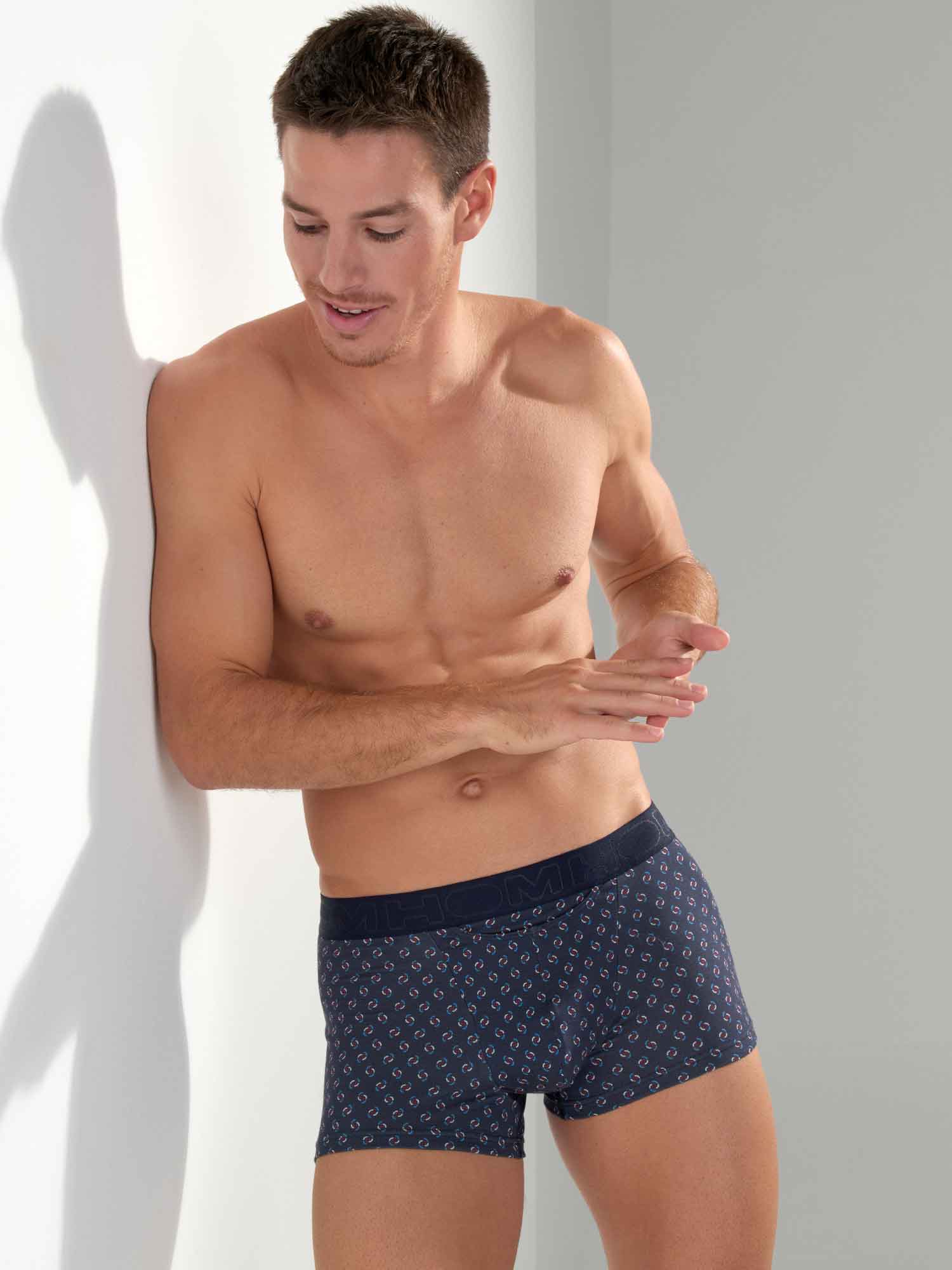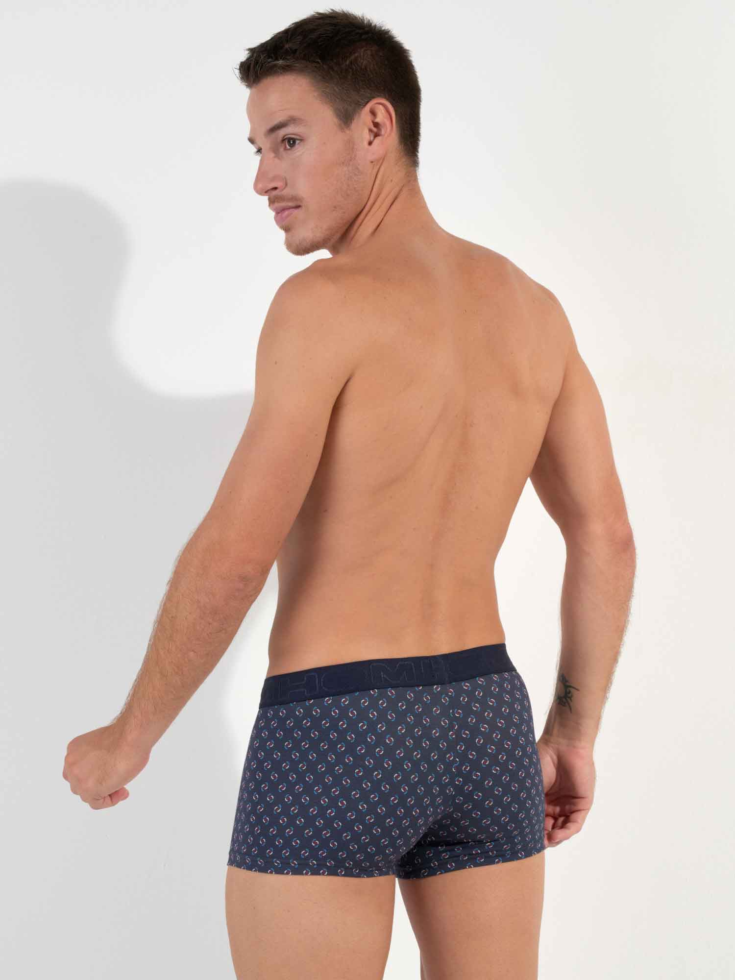 Il Cyrus - HO1 Boxer Briefs è realizzato in cotone modal e presenta l'apertura orizzontale, la patta speciale per un comfort extra, per cui HOM è famoso. Questo boxer da uomo ha un motivo a tre colori su uno sfondo blu navy. Il Cyrus è progettato con una cintura elastica in cotone che si adatta comodamente alla pelle. La cintura presenta il logo HOM tutto intorno.