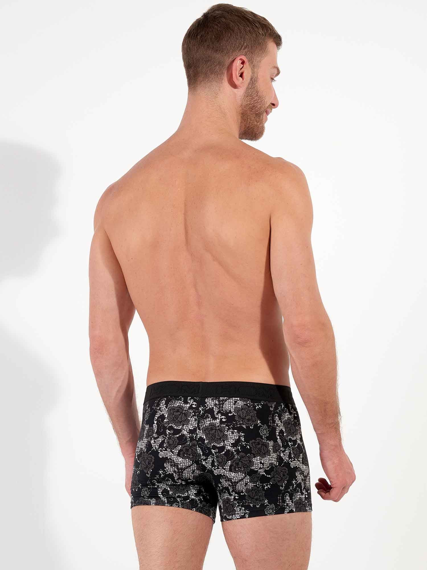 Fairmont – boxer aderenti HO1 uniscono raffinatezza ed eccellente comfort. Il mix premium di modal e cotone è morbido, traspirante e aderisce perfettamente. Il tessuto mostra un elegante motivo floreale sopra un pattern pied-de-poule nero e grigio. L’elastico attorno alle gambe garantisce una vestibilità perfetta, mentre la fodera con elastico nella parte anteriore dona sostegno e valorizza la silhouette. Per l’uomo che ama curare ogni dettaglio.