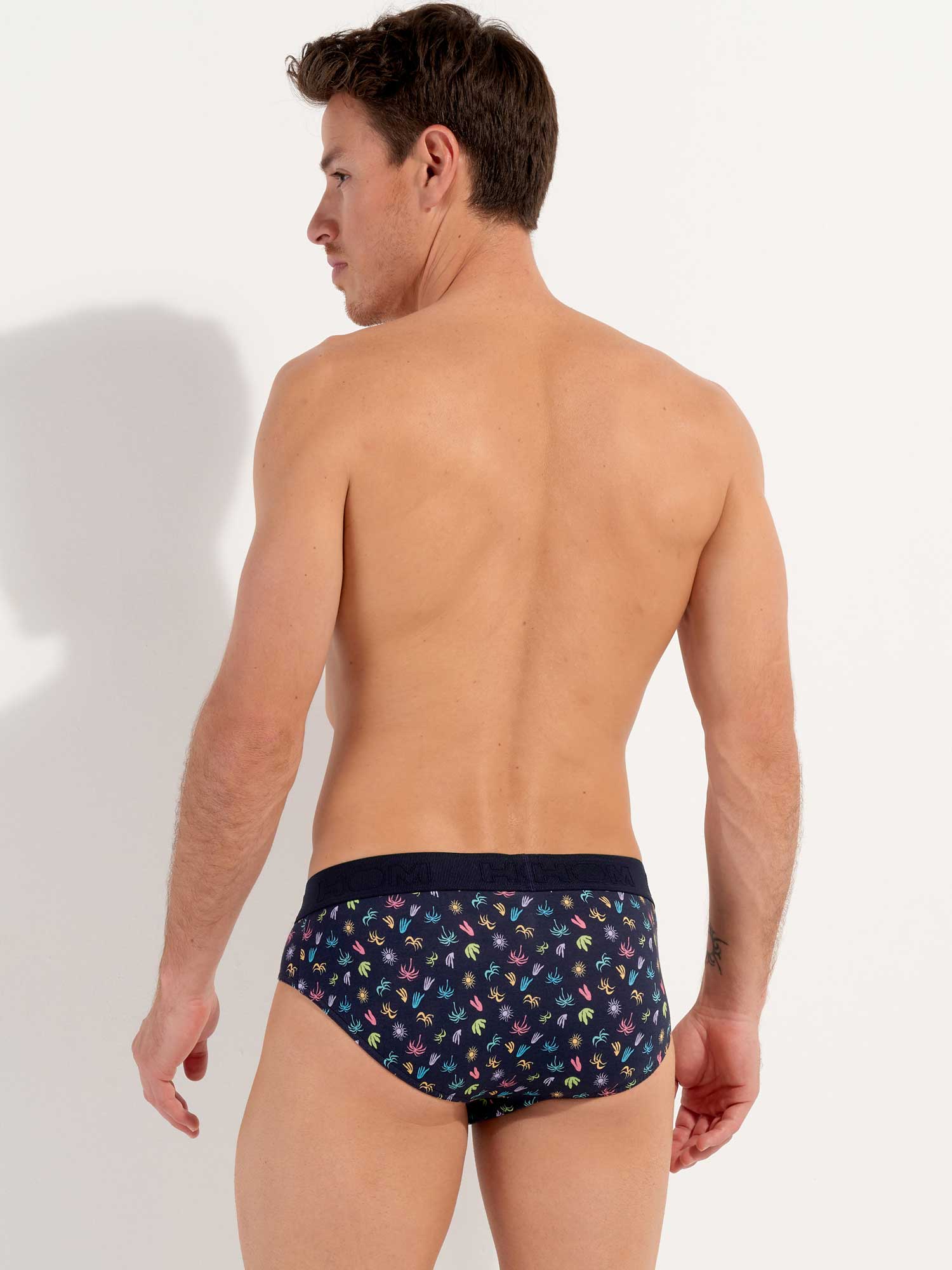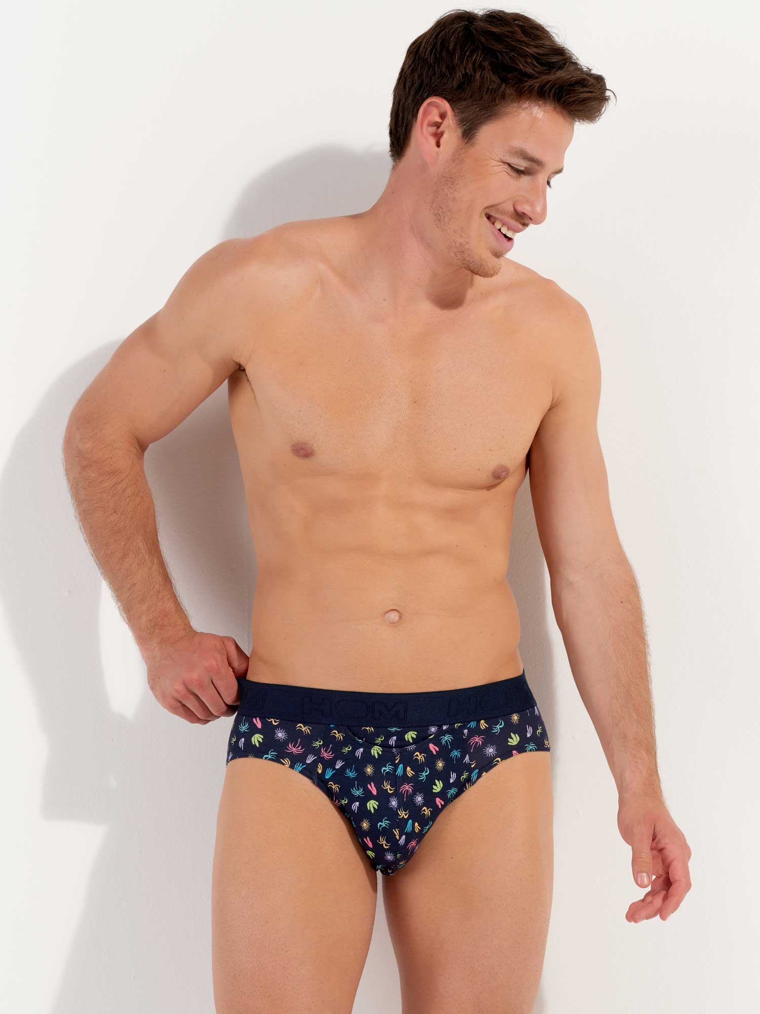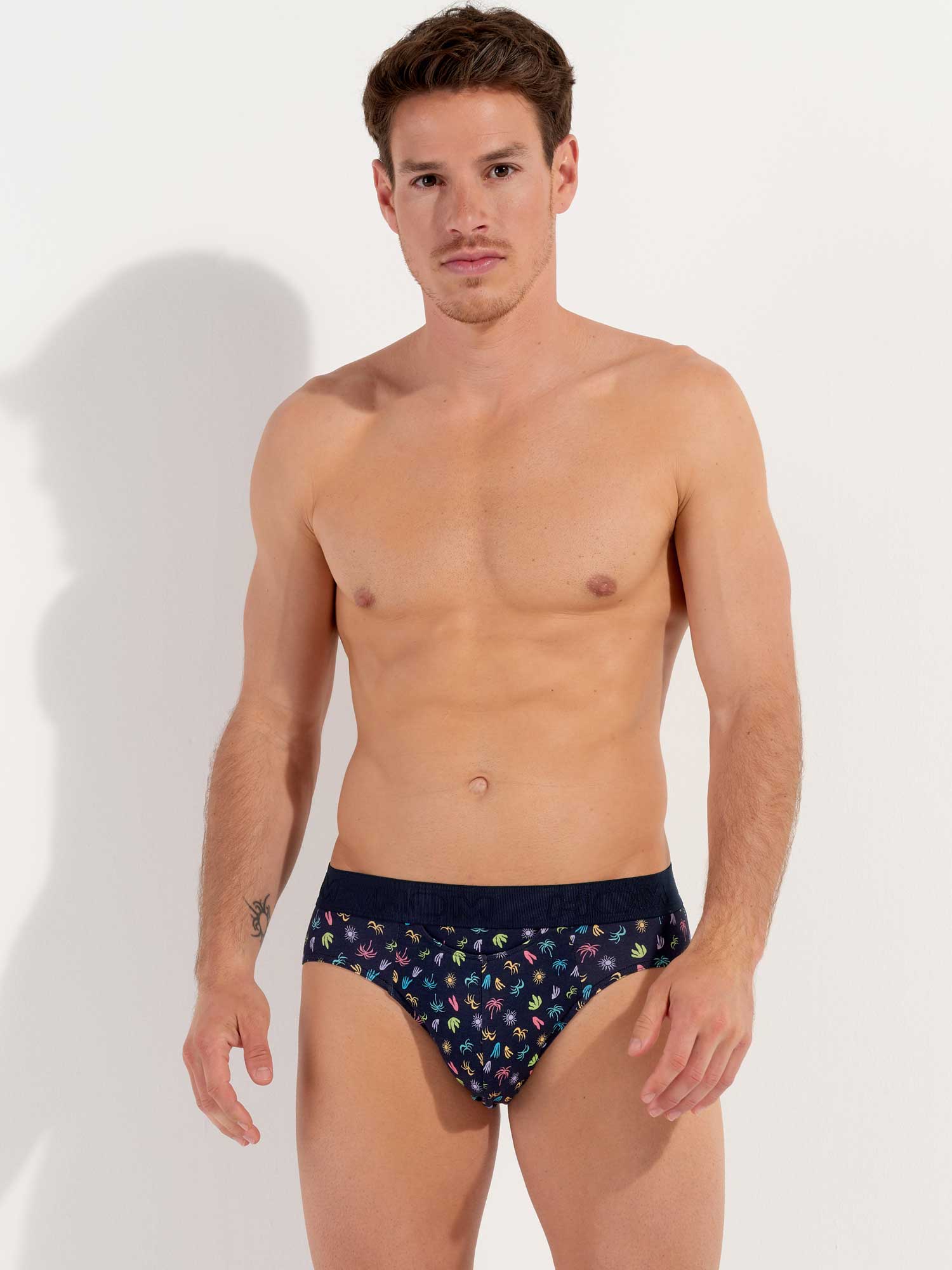 Il California - HO1 Mini Brief è realizzato in cotone-modal e presenta l'apertura orizzontale, il dettaglio caratteristico di HOM per maggiore praticità. Questo slip da uomo presenta una microstampa esotica multicolore che richiama la morbidezza di una vacanza californiana, con piccole palme e soli dai colori vivaci, in uno stile Coachella. Il California è dotato di una fascia elastica a coste con il logo HOM ricamato tono su tono.