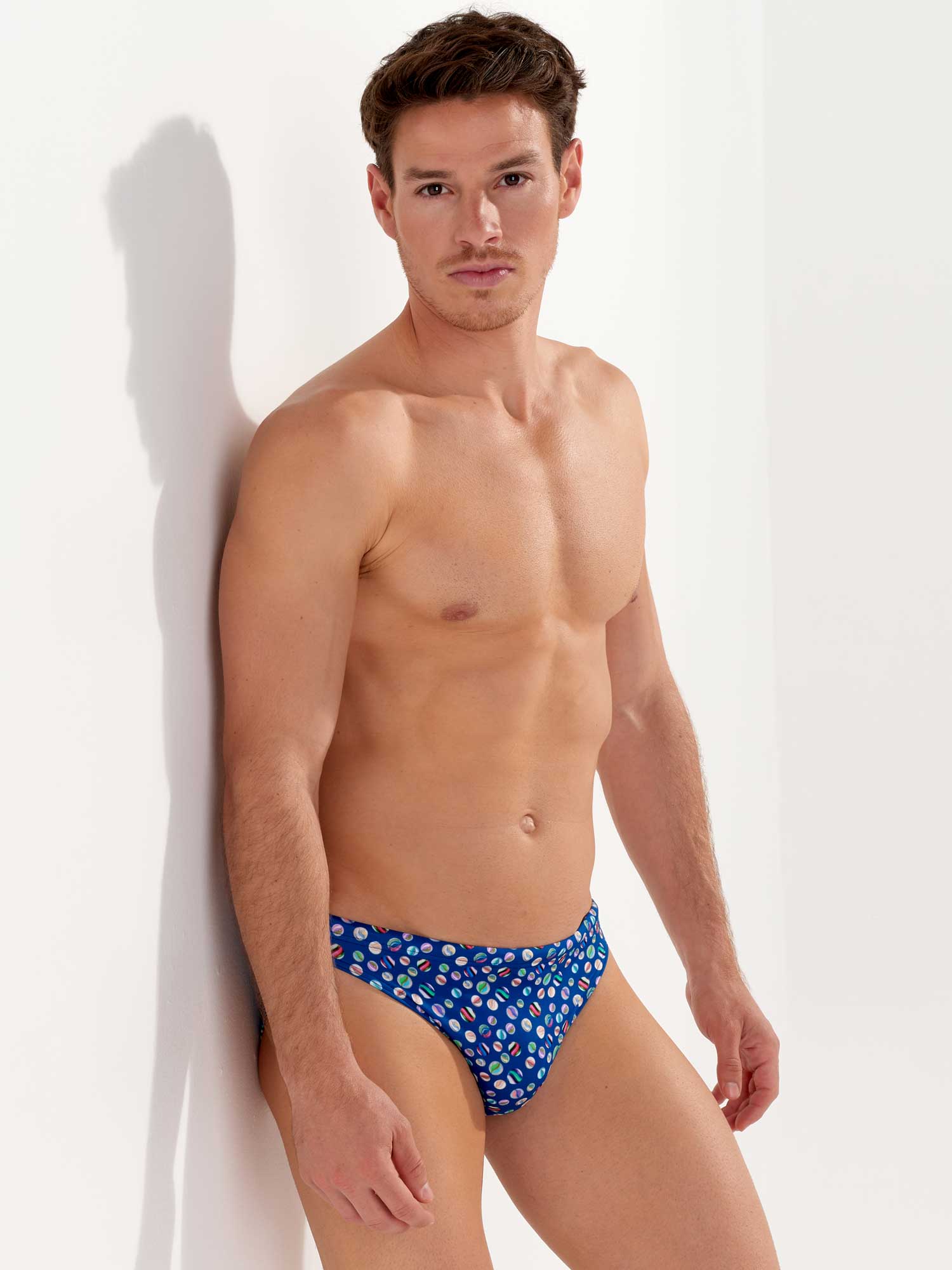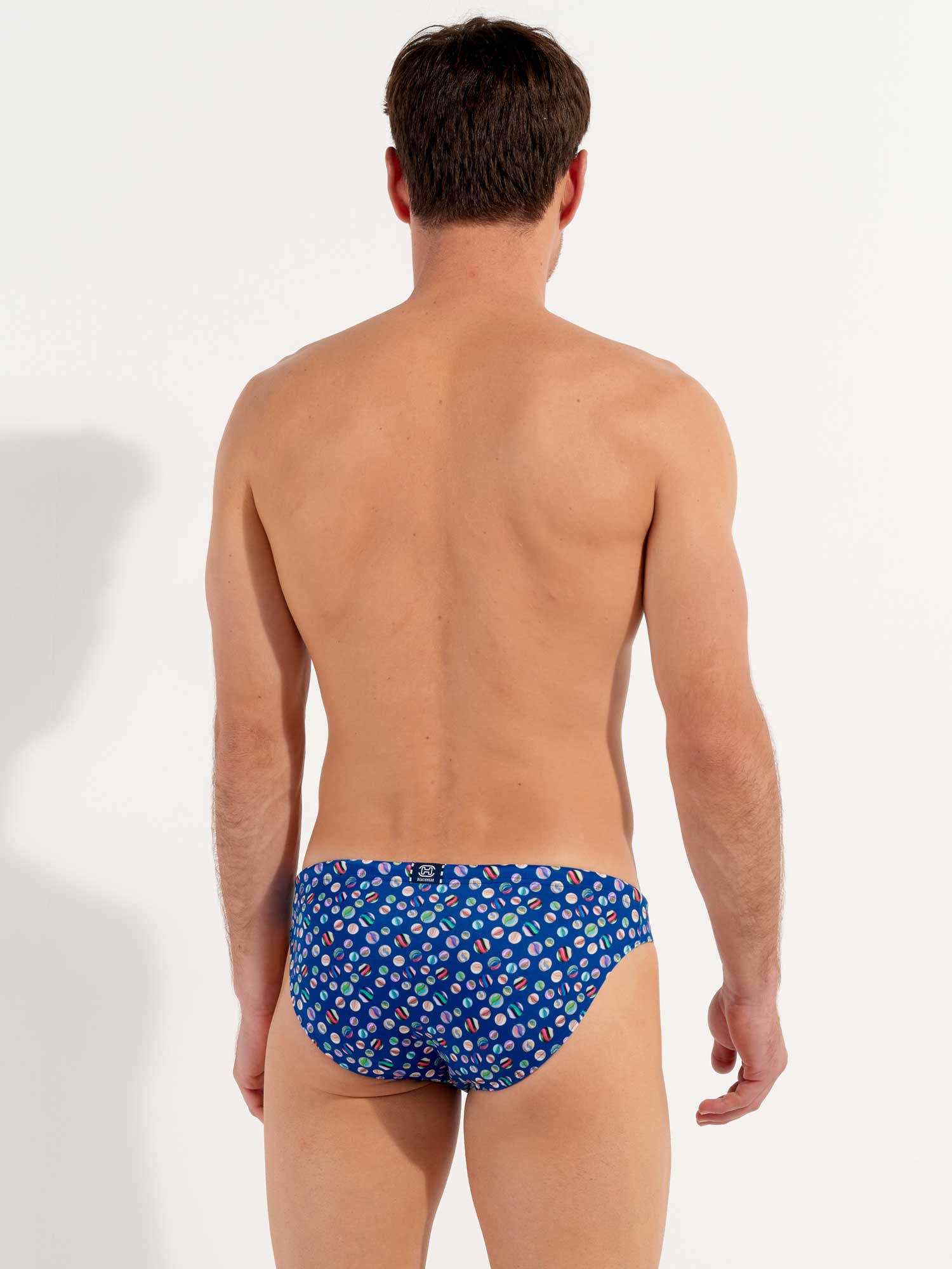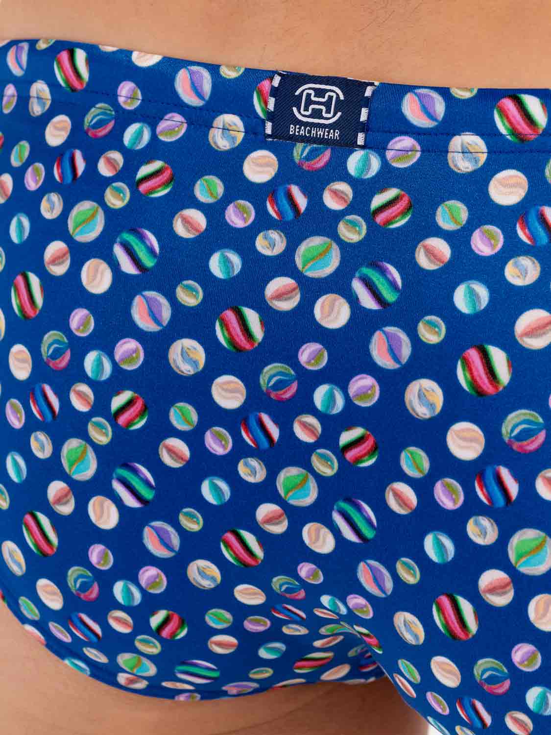 I Socoa - Swim Micro Briefs fanno parte della collezione estiva di costumi da bagno HOM. Disegno figurativo con biglie colorate su sfondo blu per uno stile giocoso e nostalgico. Il tessuto è elastico, aderisce bene alla pelle e non è trasparente. Il costume ha una morbida fodera interna in schiuma per un maggiore comfort. Essendo un modello micro brief, si indossa più in basso sui fianchi. Il laccetto in vita permette di regolarlo perfettamente alla tua misura per una vestibilità sicura e confortevole.