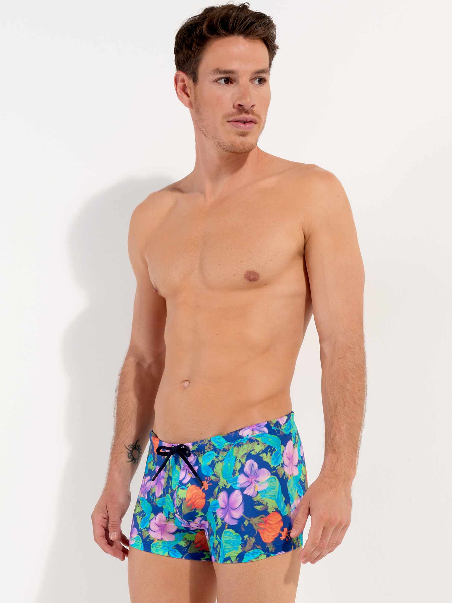I Balata - Swim Shorts presentano una stampa floreale colorata. I magnifici giardini botanici di Balata sono evocati in questo bellissimo motivo floreale nei toni del malva, arancione e verde chiaro su sfondo blu: un invito a viaggiare verso la splendida isola della Martinica. Il tessuto è elastico, aderisce bene alla pelle e non è trasparente. Il laccetto in vita permette di regolare perfettamente il costume alla tua misura per una vestibilità sicura. Con questo capo di moda, porta un tocco di allegria in spiaggia o in piscina.