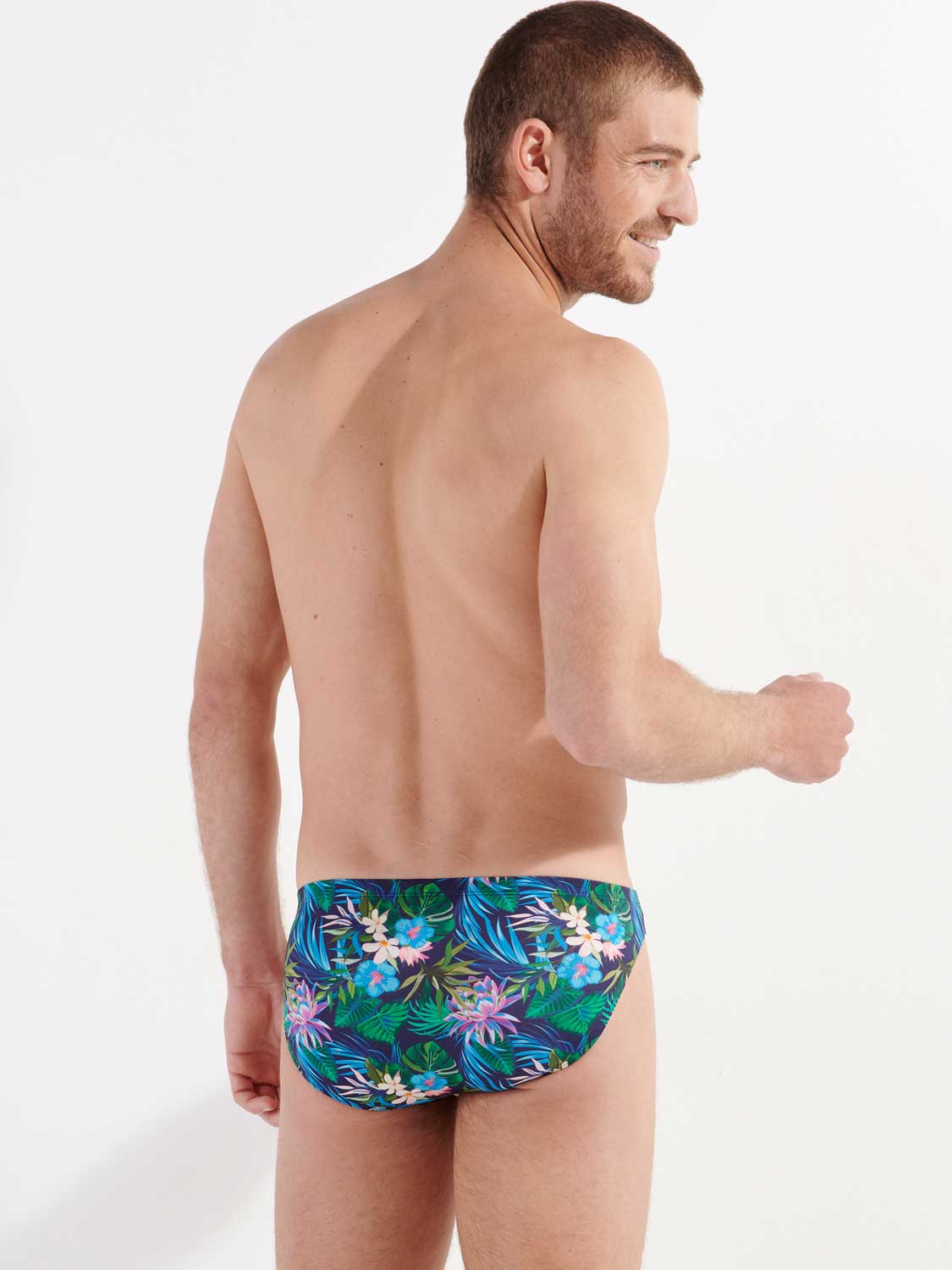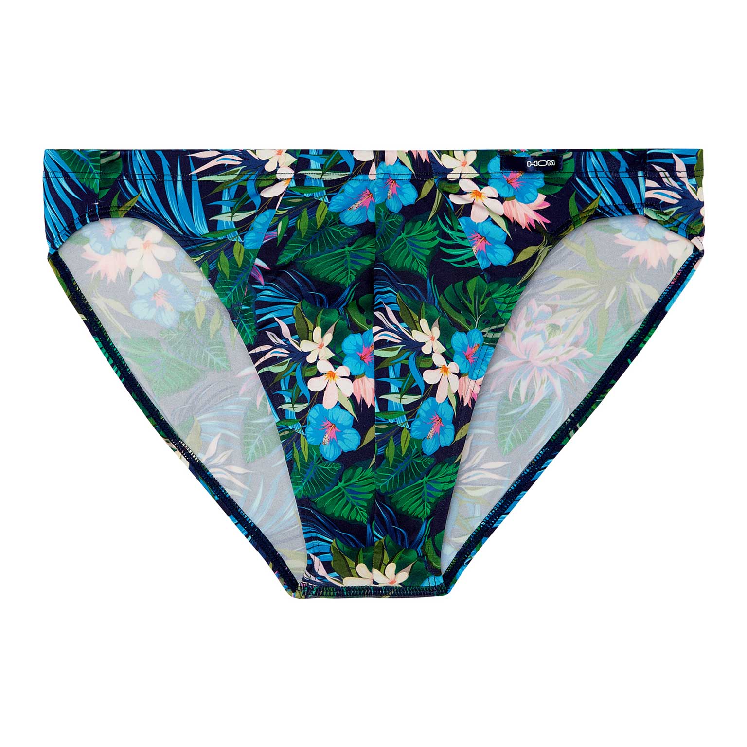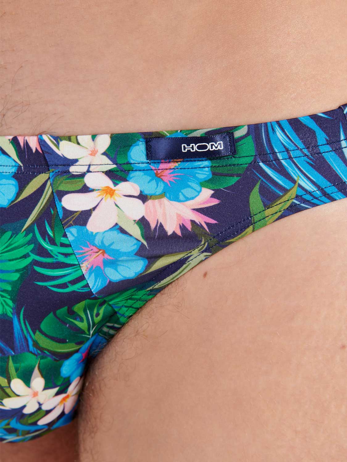 De Yoni - Comfort Micro Briefs is gemaakt van een comfortabele microfiber en uitgevoerd met een comfort heupband, waarbij de stof tot over de elastische band is getrokken, voor optimaal comfort. Deze heren slip is uitgevoerd met een exotische bloemenprint in de kleuren turquoise, fuchsia en groen op een donker blauwe achtergrond. Links voor op de comfortband is een klein labeltje geplaatst met het HOM logo.