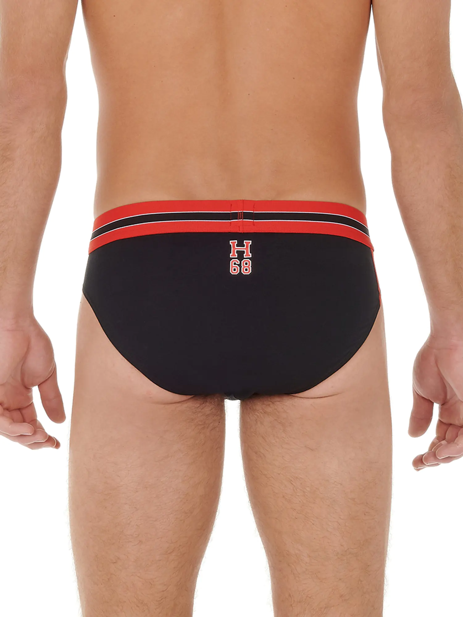 De HOMrun - Micro Brief is de heren sport slip voor dit seizoen, gemaakt van een nieuwe katoen stofsamenstelling wat de groei van bacteriën tegengaat voor een betere hygiëne. De HOMrun heeft een opvallende retro-look in felle kleuren met lijnen langs de pouch, langs de zijkant en over de elastische heupband. De Tie Break is een heren slip gemaakt om te dragen tijdens elke activiteit. Achter op de slip is een HOM-embleem geplaatst.
