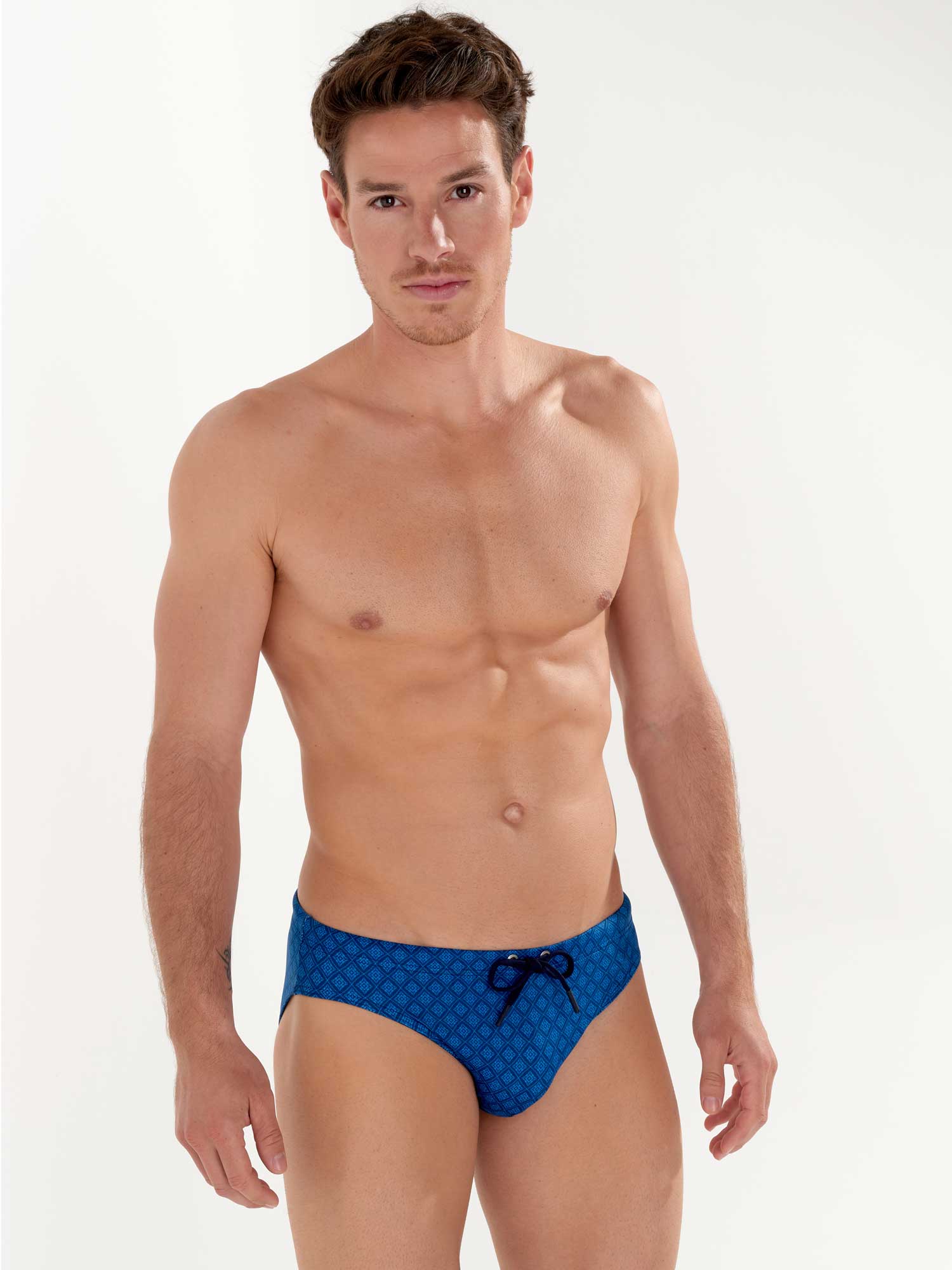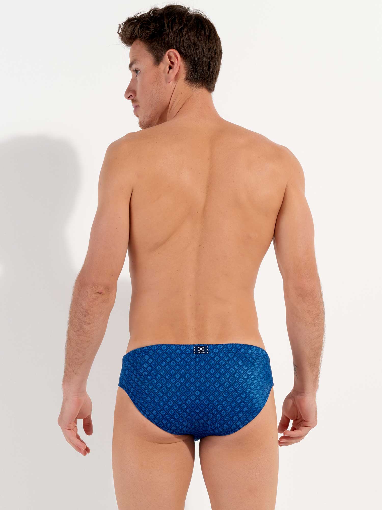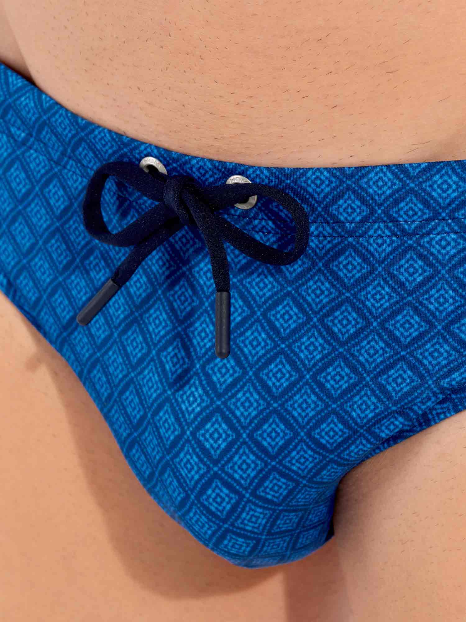 De Hendaya - Swim Mini Briefs maken deel uit van de zomercollectie zwemkleding van HOM. Elegant dassen motief met lichtblauwe ruiten op een marineblauwe achtergrond. De stof is elastisch, sluit mooi aan op de huid en is niet doorschijnend. Omdat dit een mini-slip is valt de zwembroek hoger op de heupen. Het trekkoord in de tailleband maakt het mogelijk om de zwembroekjes perfect af te stellen op jouw maat voor een stevige en comfortabele pasvorm.