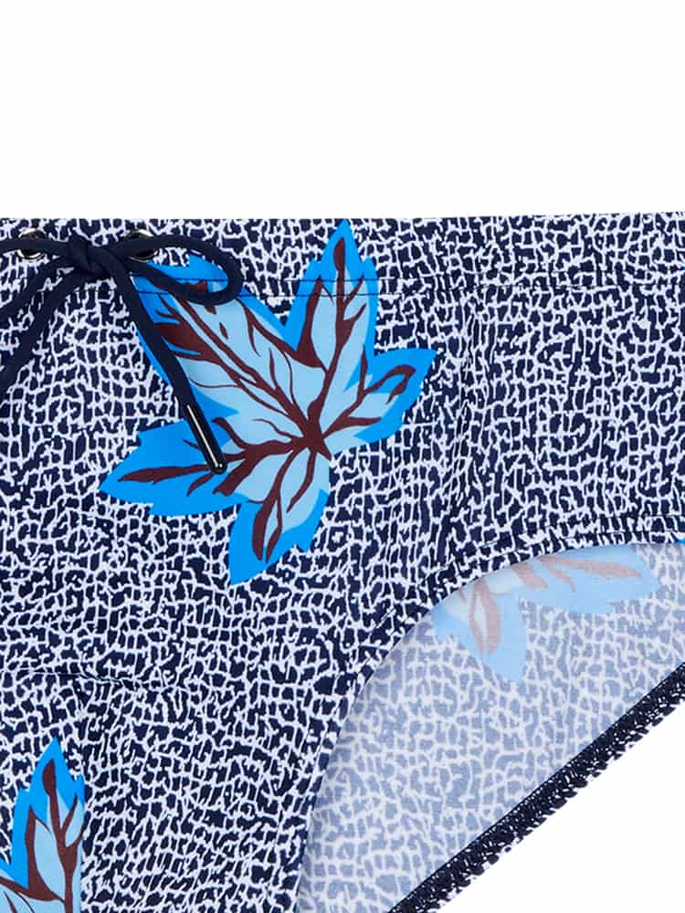 De Sekou Swim Mini Brief is uitgevoerd met een sierlijke leafprint op een marine blauwe achtergrond. De zwembroek heeft een trekkoord aan de buitenzijde verwerkt in de heupband waarmee je deze perfect op maat kunt brengen voor een comfortabele fit.