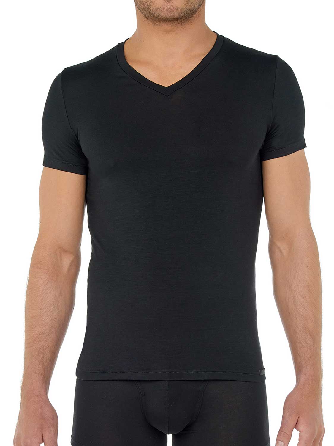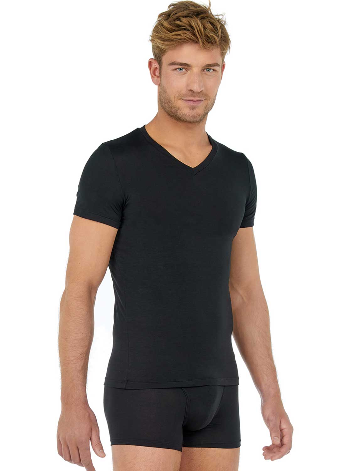 Het TENCEL SOFT T-Shirt is gemaakt van Lyocell, uitgevoerd met een V-hals en een rechte cut die langs het lichaam valt. Het shirt is een basic van zeer hoge kwaliteit met optimaal draagcomfort. De stof Lyocell wordt gewonnen uit houtpulp en absorbeert 4x meer vocht dan katoen. Het productieproces vereist weinig water en beperkt daarmee de milieu-impact. Lyocell kreukt niet en voelt zacht en comfortabel aan. De stof is daardoor uitermate geschikt voor de man die graag natuurlijke stoffen draagt.