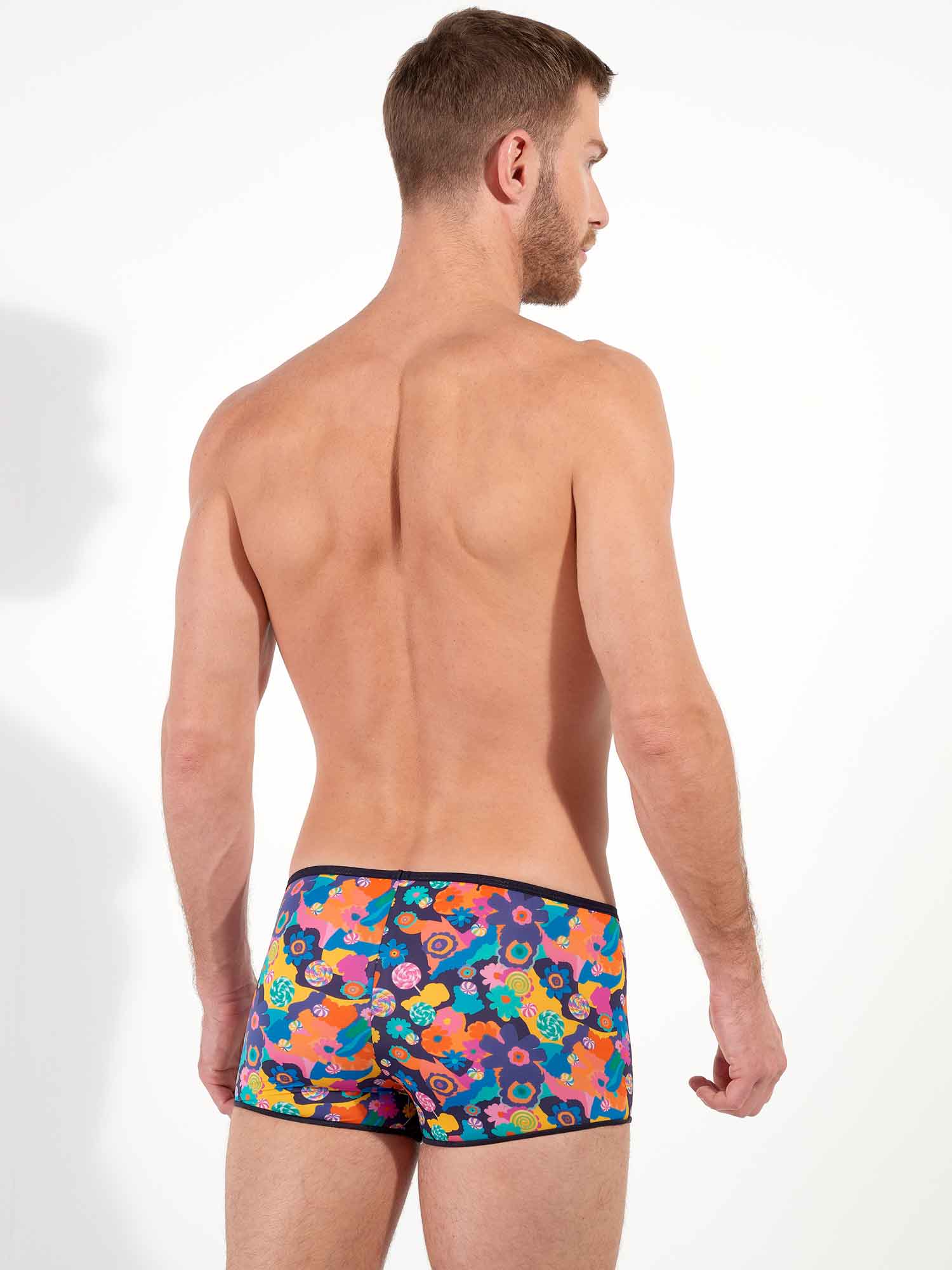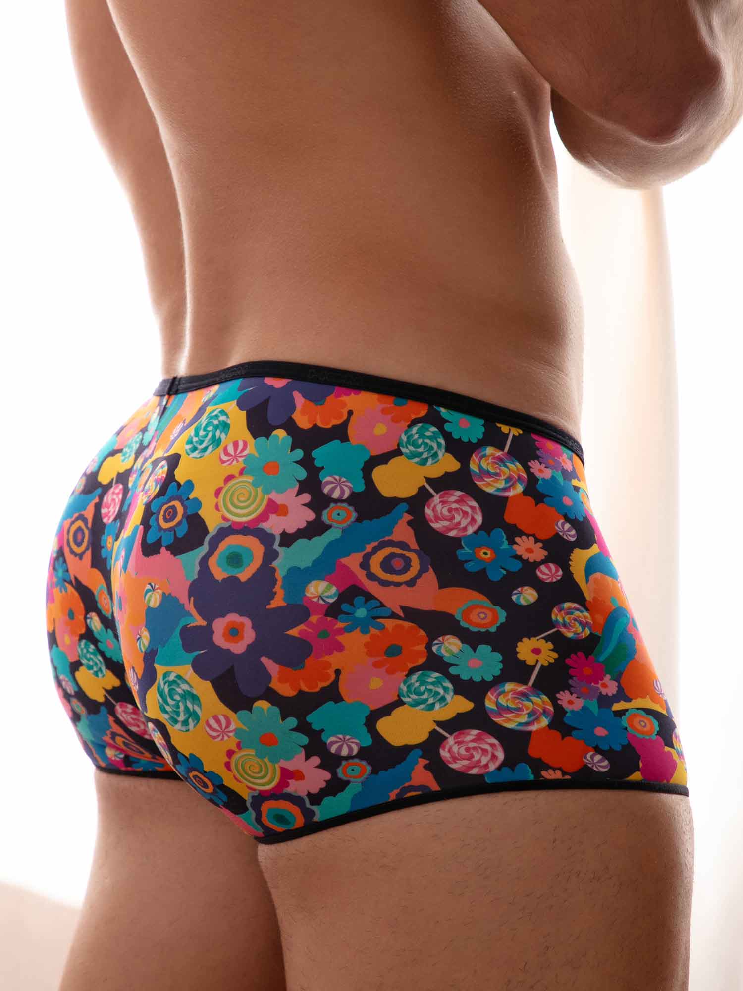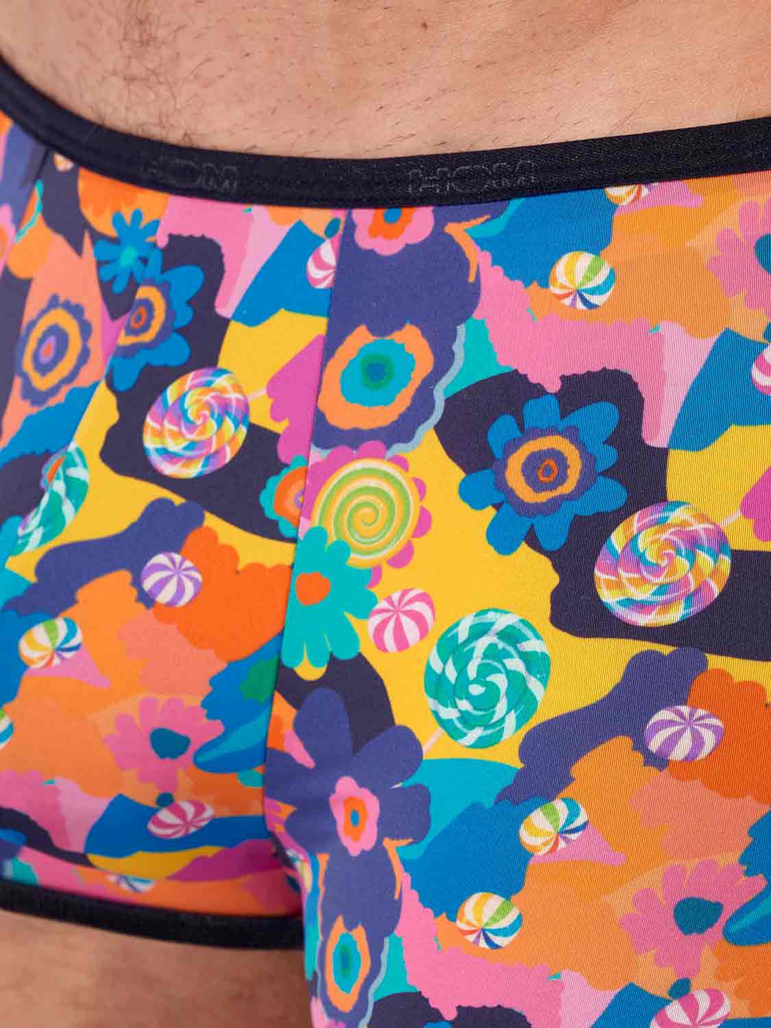 Trunk Wonka z kolekcji HOM Temptation to coś więcej niż zwykła bielizna. Wykonany z kultowego materiału Plume marki HOM, ultralekki mikrowłókno doskonale przylega do ciała i porusza się niczym druga skóra. Wzór łączy kolorowe cukierki z halucynogennymi kwiatami, tworząc zabawny, ale uwodzicielski wygląd. Model dla pewnych siebie mężczyzn, którzy wyznaczają własne zasady.