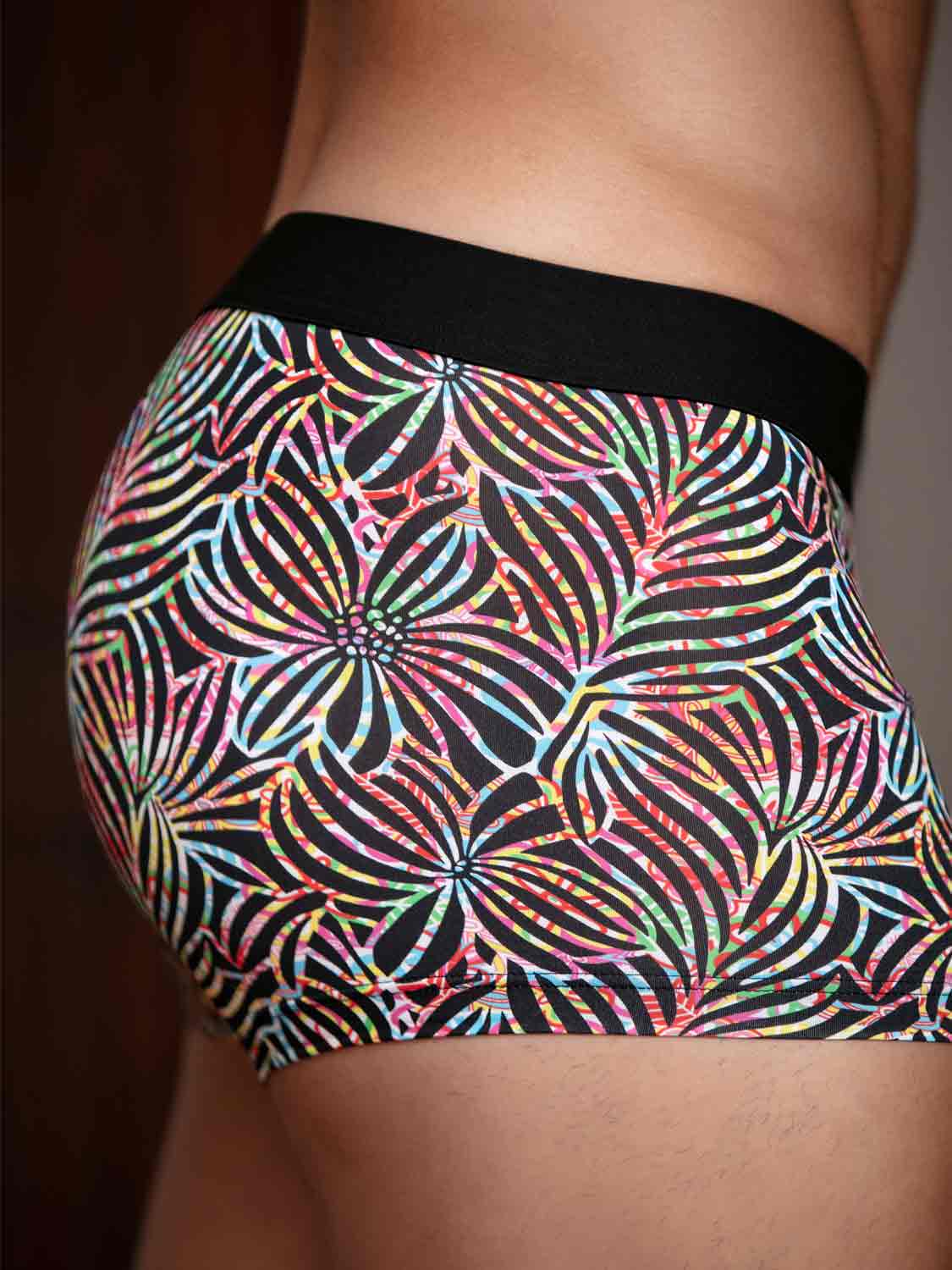 Roald – boxer briefs to nowoczesna interpretacja stylu geometrycznego. Ciemnogranatowe tło z turkusowymi liniami tworzy futurystyczny i wyrazisty wygląd. Wysokiej jakości mikrofibra idealnie przylega do ciała, zapewnia oddychalność i szybkie schnięcie – idealna na co dzień.