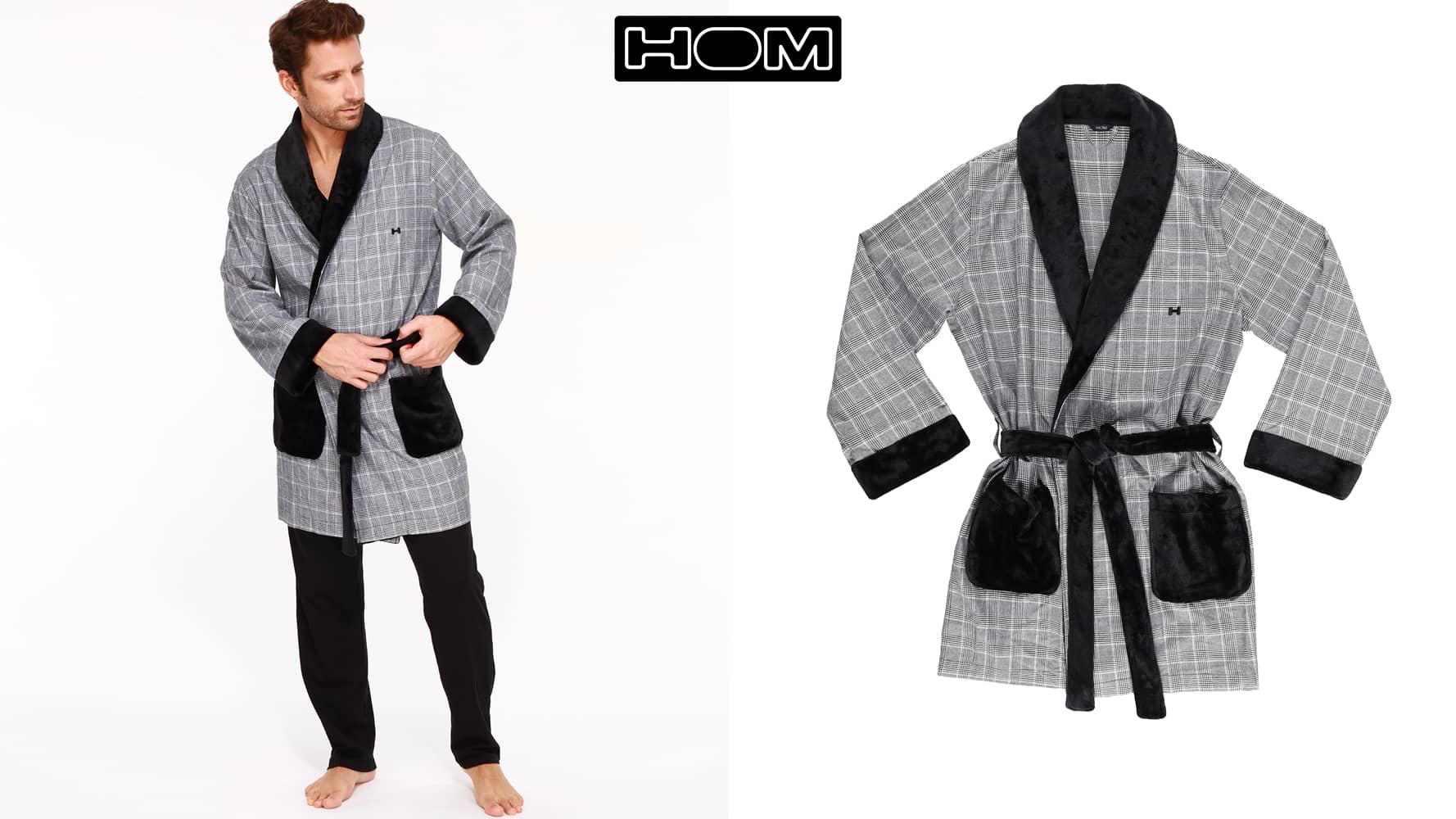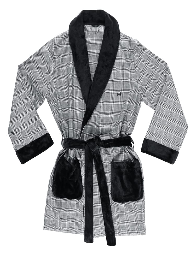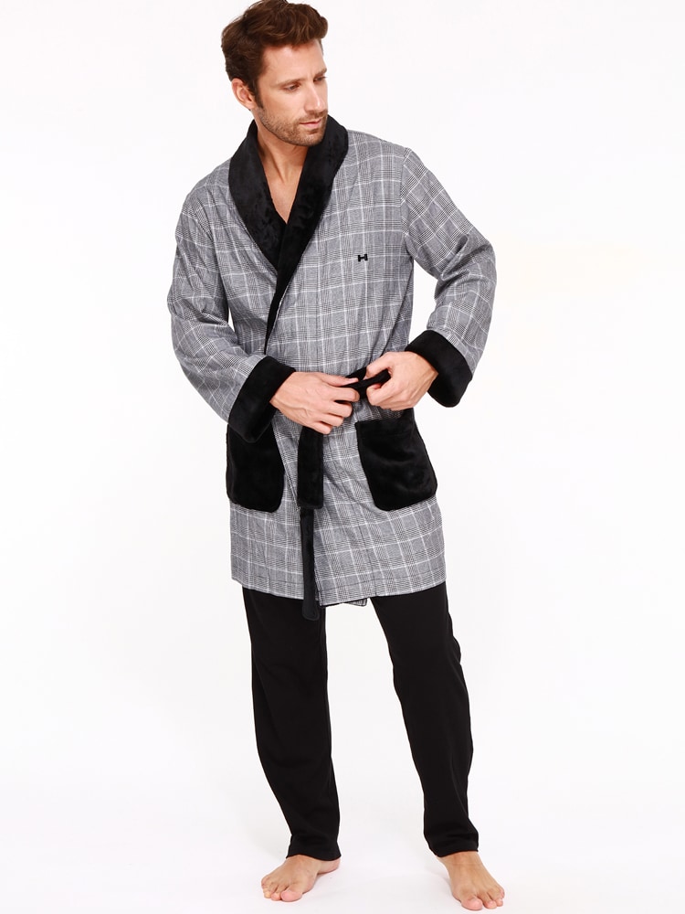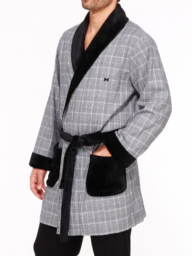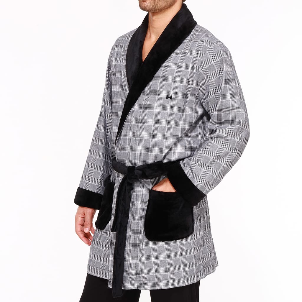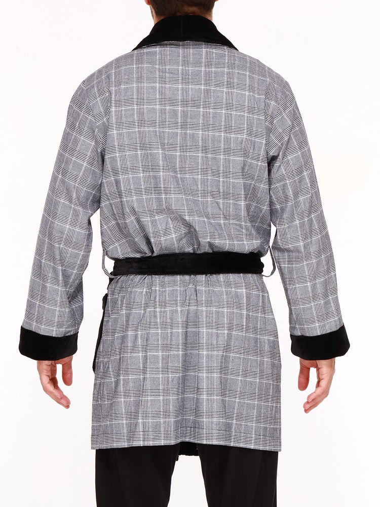 De Benjamin-kamerjas is gemaakt van een dunne stof van 100% katoen, afgewerkt met zacht zwart fleece van polyester. De kamerjas is kort uitgevoerd en valt tot aan de knieën. De katoenen stof heeft een zwart wit ruit patroon en de kamerjas sluit je af met de zwarte zachte polyester heupband. Het materiaal van deze katoenen kamerjas heeft uitstekende temperatuurregeling. Daarnaast is katoen comfortabel, ademend en gemakkelijk te reinigen.