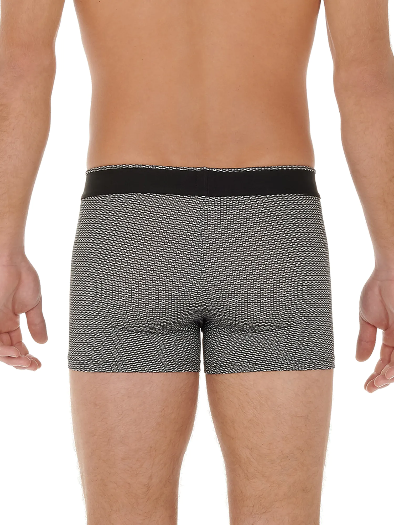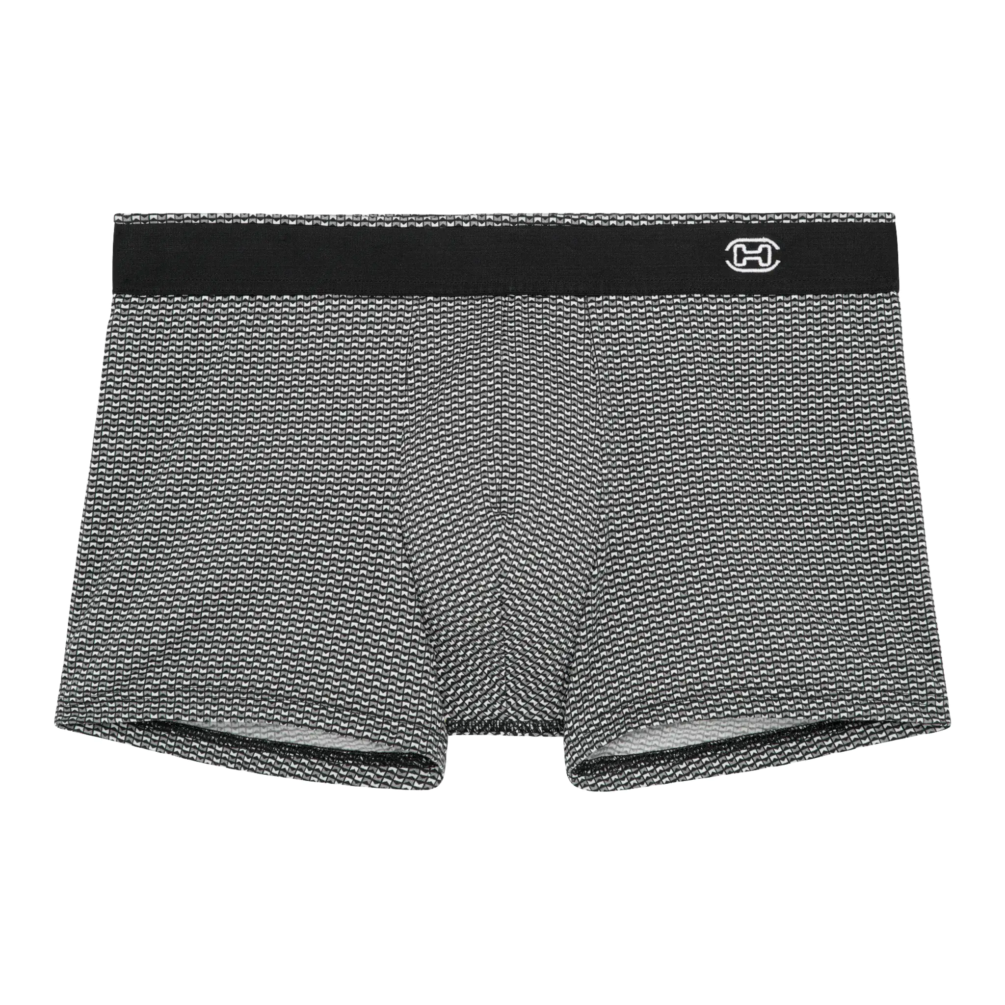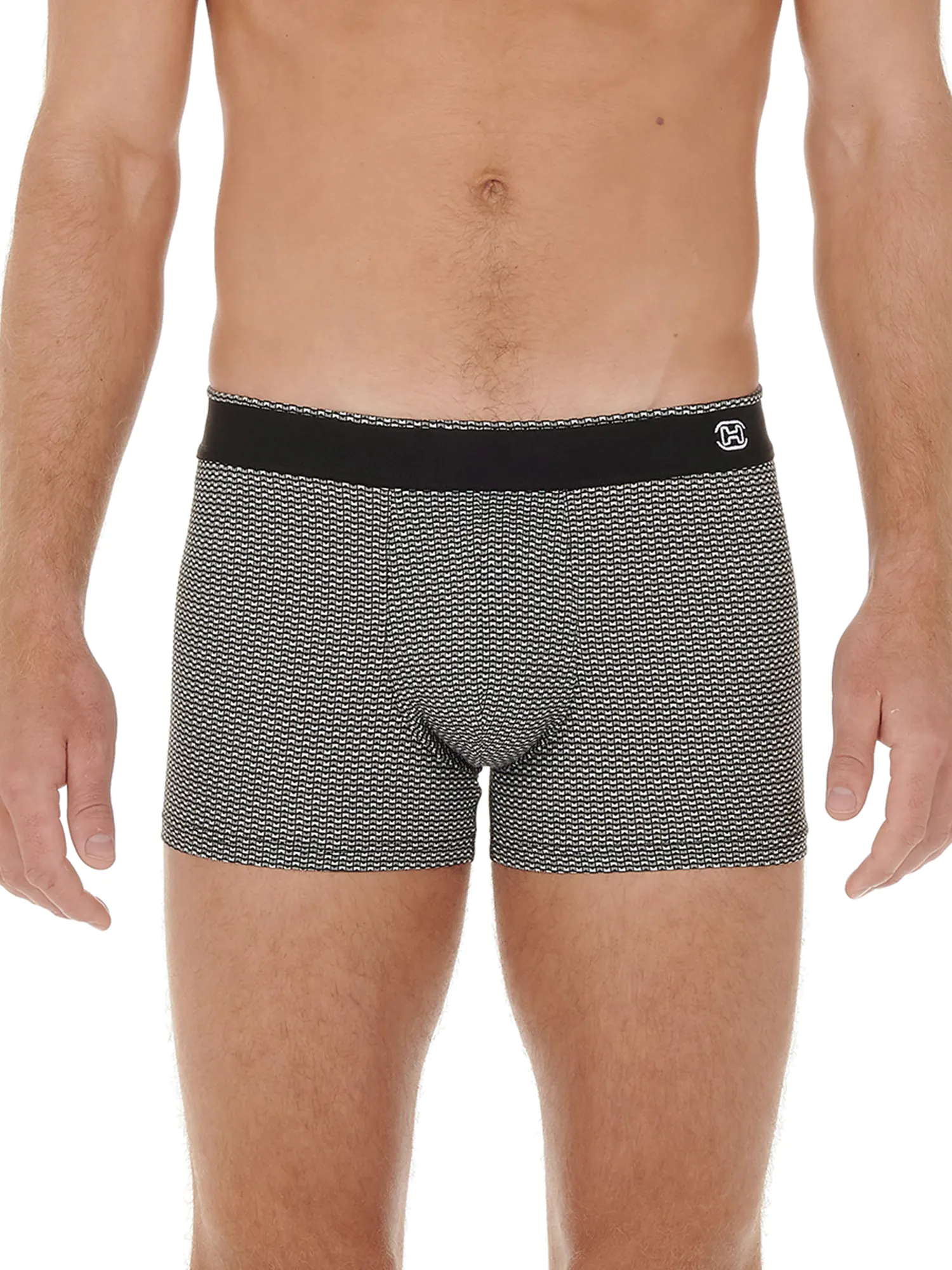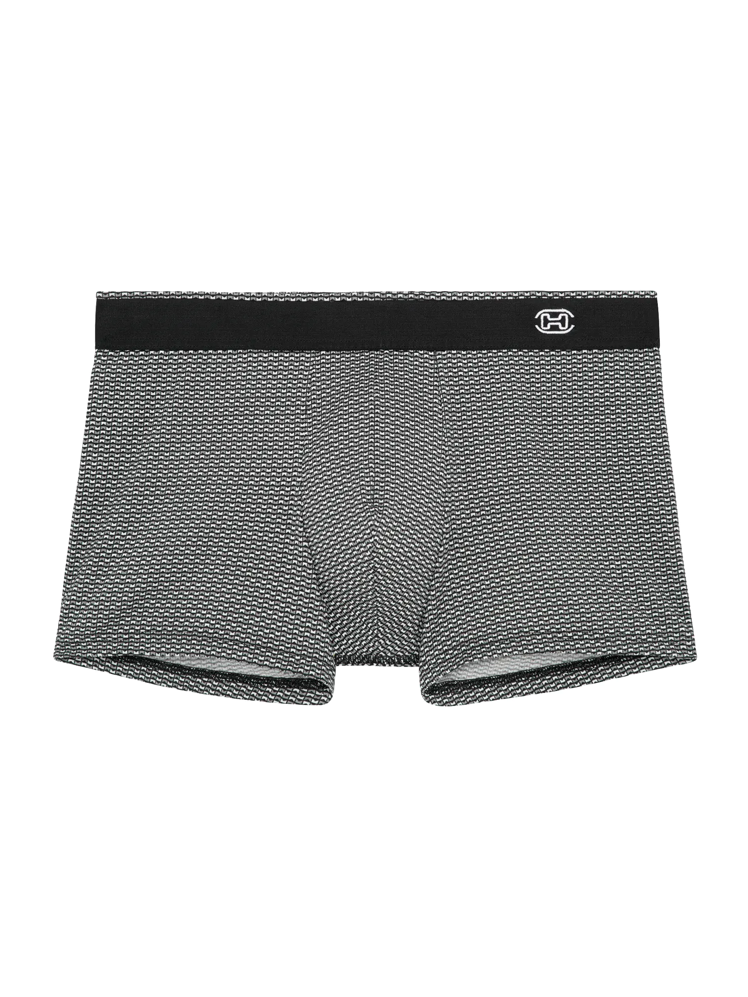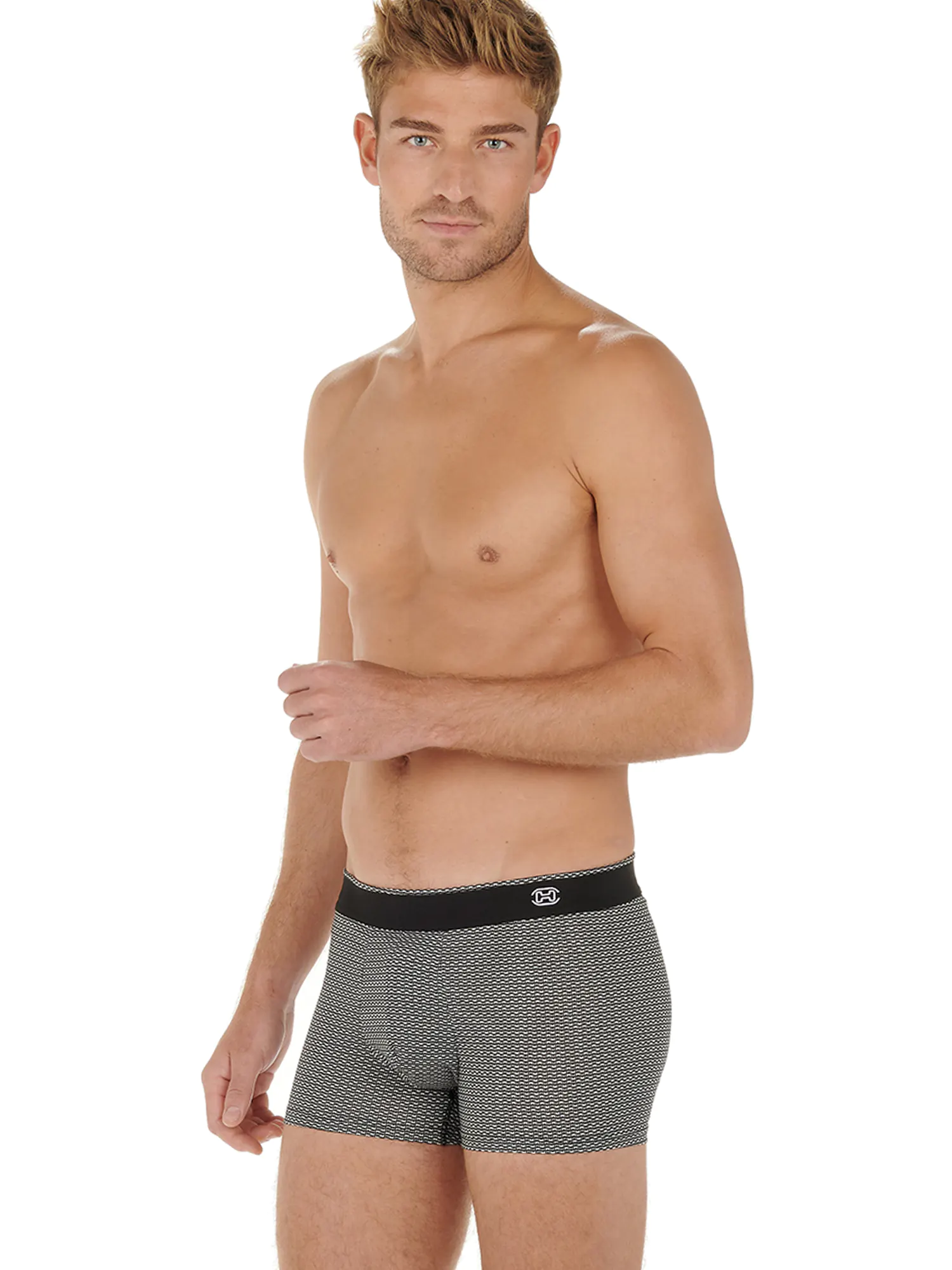 Sylvester Comfort Boxer Brief är tillverkad av en bekväm bomull-modalblandning och har en komfortmidja. Sylvester har ett vackert geometriskt svartvitt mönster, vilket ger dessa boxershorts ett elegant utseende. Bomull-modalblandningen känns mjuk och säkerställer en passform som sitter nära kroppen. Dessutom har bomull-modal utmärkta absorberande och andningsbara egenskaper, så det är mycket mindre sannolikt att du får varma, fuktiga fläckar i dina underkläder. Eftersom både bomull och modal har ett naturligt ursprung, är Sylvester lämplig för alla män som gillar att bära naturmaterial. Vid normal användning är tyget motståndskraftigt mot krympning och nötning. Boxershortsen har en komfortmidja där tyget är vikt över det elastiska, vilket gör det bekvämt mot huden. HOM-logotypen är placerad på vänster framsida av komfortmidjan.