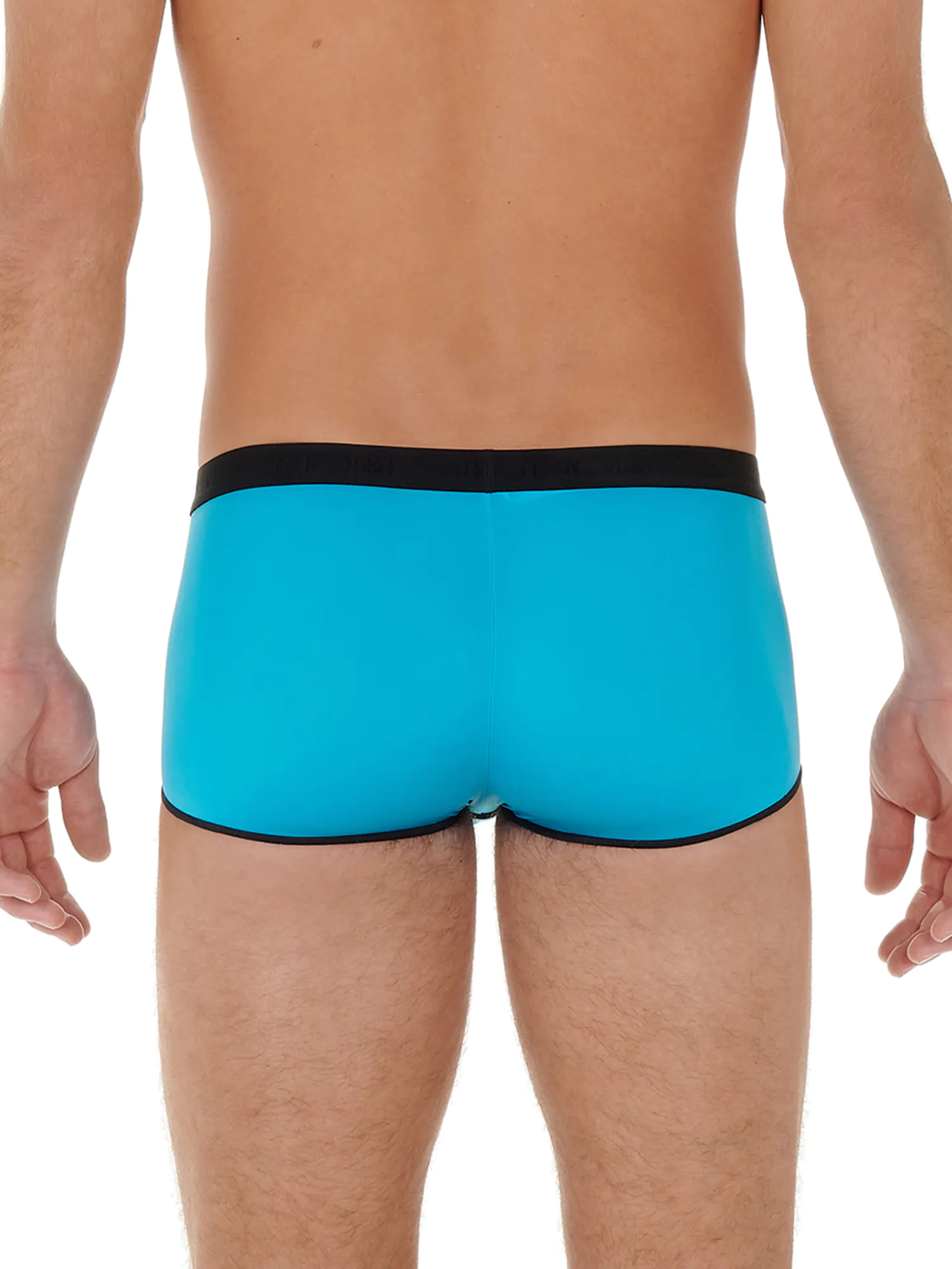 Trunk HO1 - Plume Up är en plumes trunk med horisontell öppning! Plumes är tillverkad av mjuk och lätt mikrofiber för ultimat bärkomfort. Denna unika version finns tillgänglig tillfälligt i enfärgade blå, röda, svarta och orangea färger. Shortsen har smala linjer i en kontrastfärg som ger dem ett modernt retoutseende. Förutom den horisontella gylfen har dessa trunks också en "push-up" ficka framtill som förbättrar stödet för extra komfort och subtilt framhäver den manliga anatomin. Det elastiska midjebandet är bredare än vanliga plumes och har HOM-logotypen på bandet.