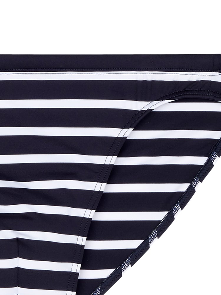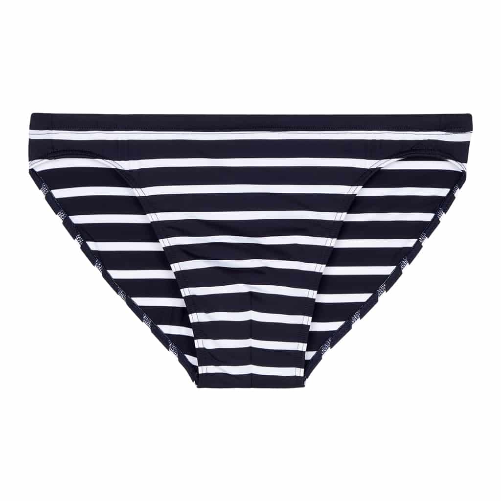 De Matias uitgevoerd in het micro model. De Matias is een degelijke zwembroek met horizontale lijnen afwisselend in wit en donkerblauw. De zwembroek heeft in de heupband aan de binnenzijde een trekkoord om deze perfect op maat te brengen. Met deze modieuze zwemslip kun je niet mis gaan.