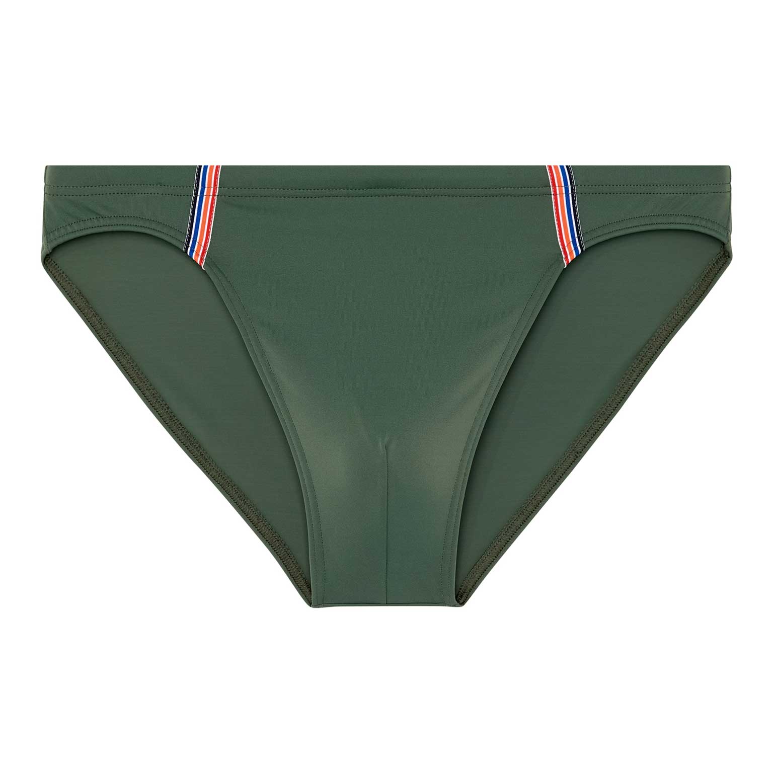 De Nautical Cup- Swim Micro Briefs verkrijgbaar in 3 verschillende unikleuren, marine blauw, oranje en khaki, met een stijlvolle verticale lijnen rondom de pouch voor een stijlvolle en sportieve look. De stof van de zwembroek is elastisch, sluit mooi aan op de huid en schijnt niet door. Het betreft hier een micro briefs model, waardoor je de zwembroek laag op de heupen draagt. Met het trekkoord aan de binnenzijde in de heupband breng je de zwembroek perfect op maat. Met deze sportieve zwembroek race je door het water.