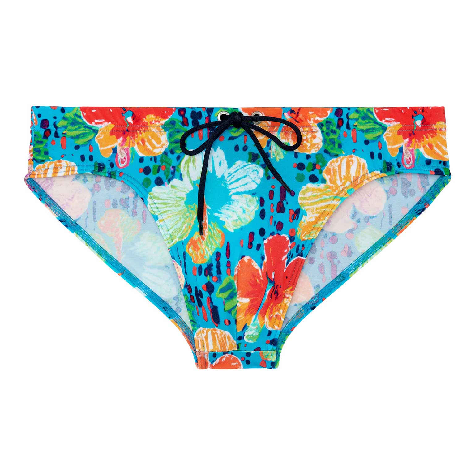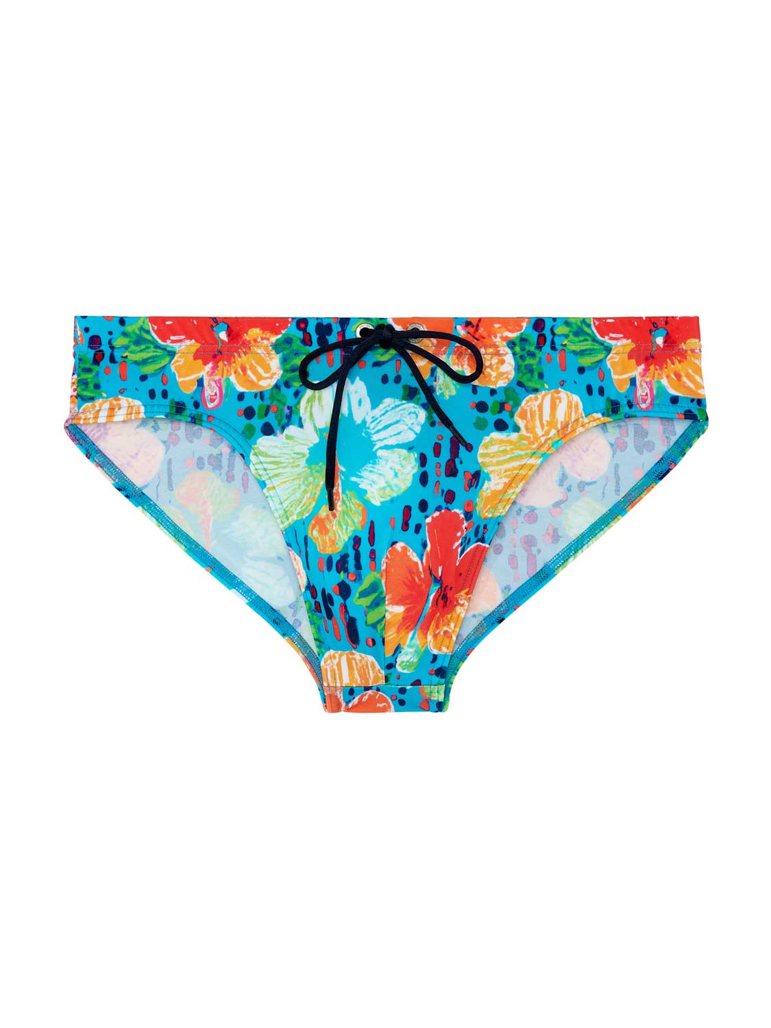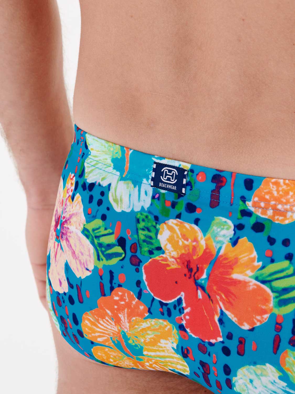De Dino - Swim Mini Briefs heeft een zomerse kleurrijke look, met zijn opvallende bloemen print op een turquoise achtergrond. De stof is elastisch, sluit mooi aan op de huid en schijnt niet door. Het betreft een Mini Briefs, dus je draagt deze zwembroek hoger op de heupen. Met het trekkoord in de heupband breng je de zwembroek perfect op maat. Met dit mode-item breng je een stukje vrolijkheid naar het strand of het zwembad.