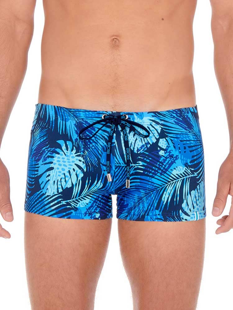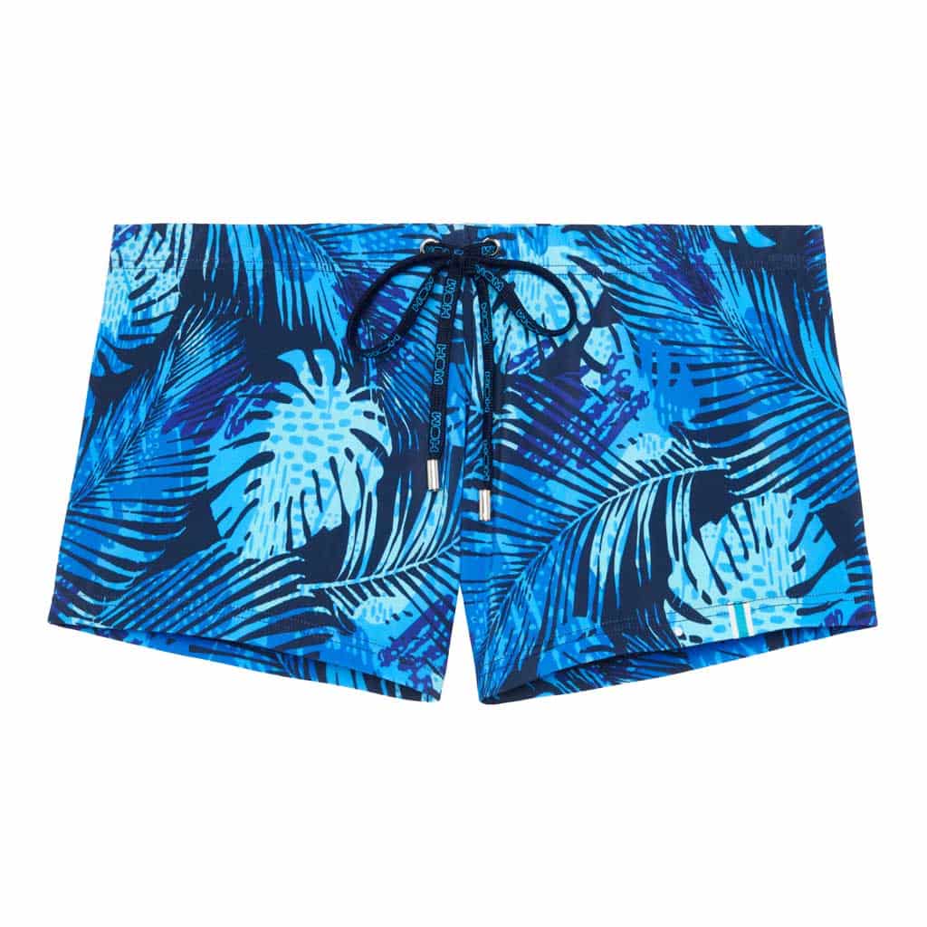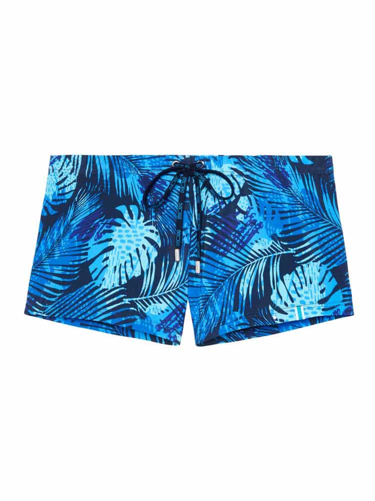 Het Mourillon - Swim Short is uitgevoerd met een prachtige palm all-over print met als basiskleur blauw. De zwemboxer heeft een comfortabele fit met een trekkoordje in de heupband om de zwembroek perfect op maat te brengen.