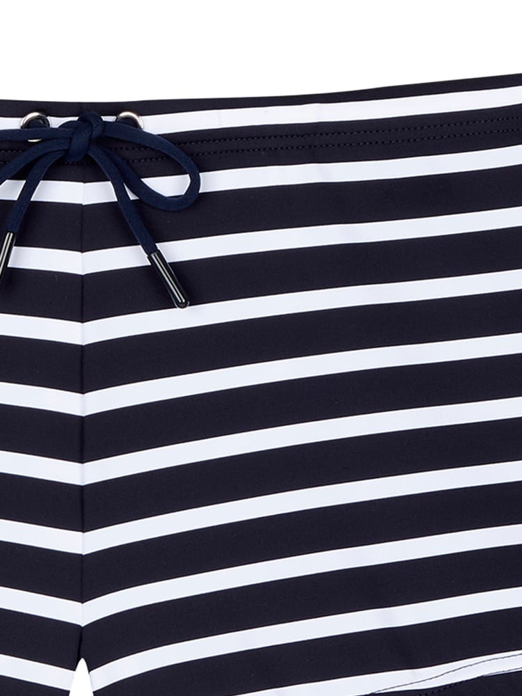 De Matias zwemboxer kenmerkt zich door de horizontale lijnen afwisselend in wit en donkerblauw. Met het trekkoordje in de heupband kun je deze perfect op maat brengen voor een comfortabele fit. Met deze modieuze zwemboxer kun je niet mis gaan in het zwembad of op het strand.