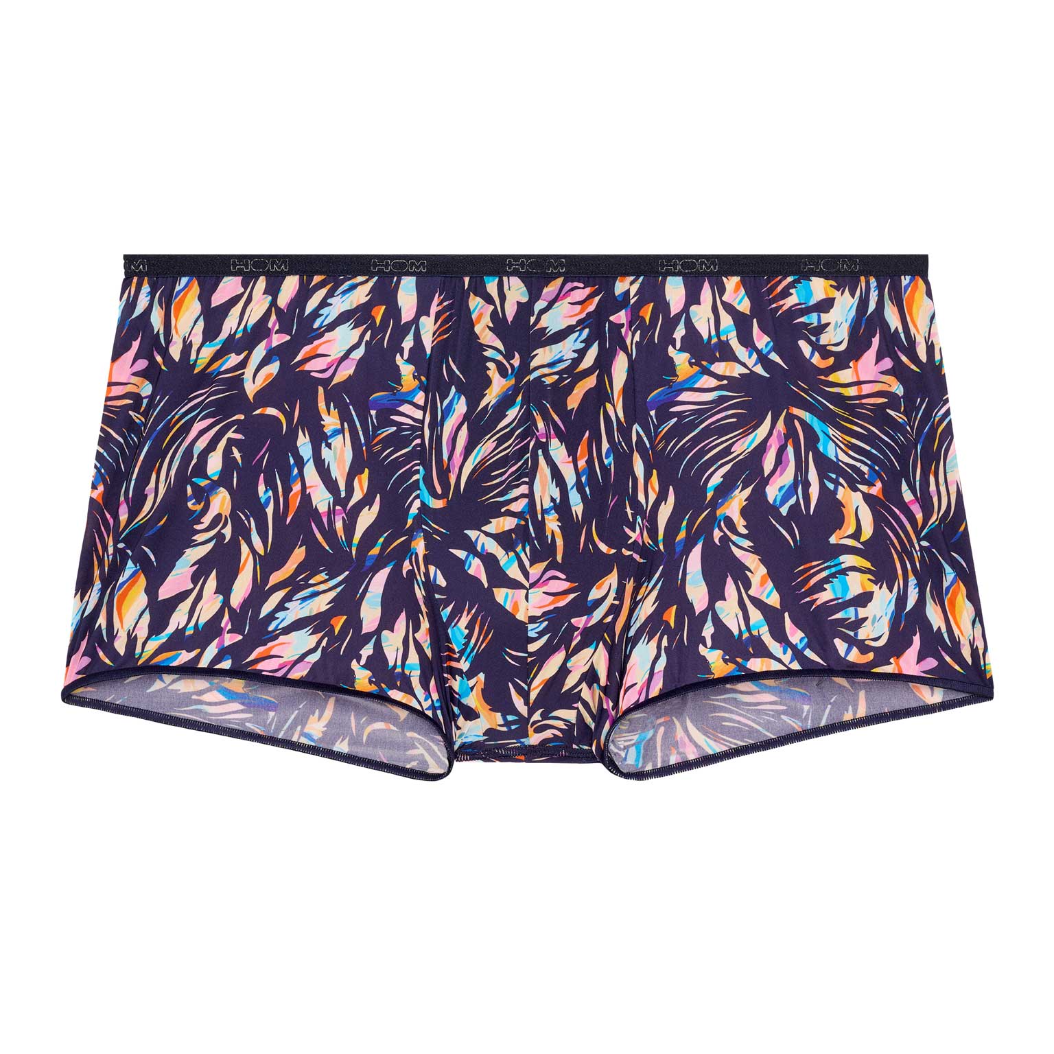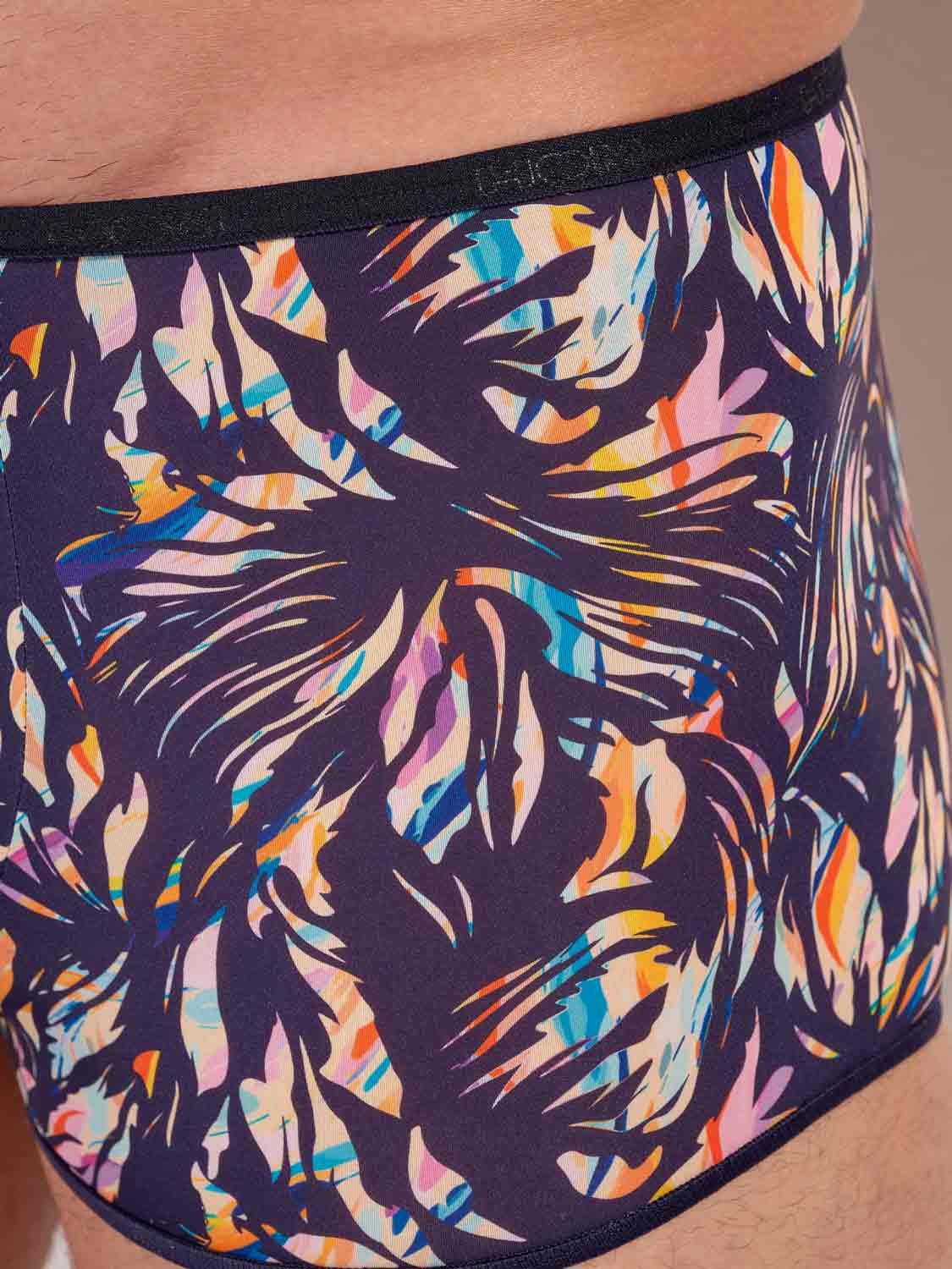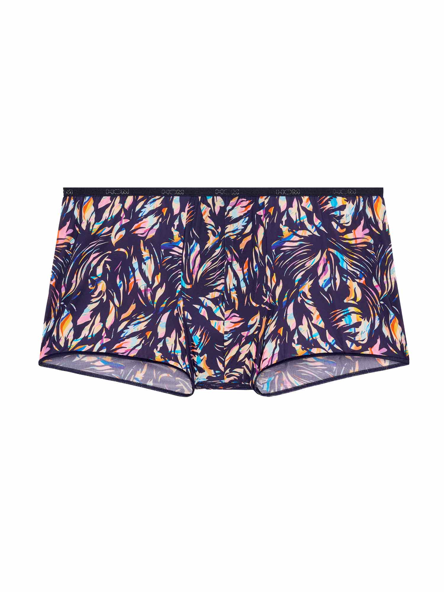 De HOM Viscaye trunk combineert verfijnde Temptation elegantie met een bijna onzichtbaar draaggevoel. Een harmonieus bloemenfresco in zachte pasteltinten ligt op een rijke navy basis en creëert een delicate, exotische look die moeiteloos mannelijk blijft. Dankzij de ultradunne microfiber sluit de trunk aan als een second skin en blijft hij extra comfortabel door de zachte elastische randen. Het resultaat is een trunk die bijna onzichtbaar is onder aansluitende kleding, net als de iconische Plumes serie, met als finishing touch een tailleband met ingelegd HOM-logo.